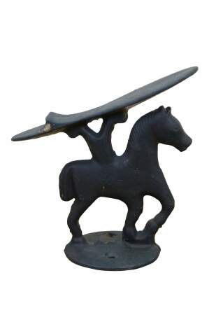 Antique cast iron equestrian horse shoe shine boot scrape foot rest.