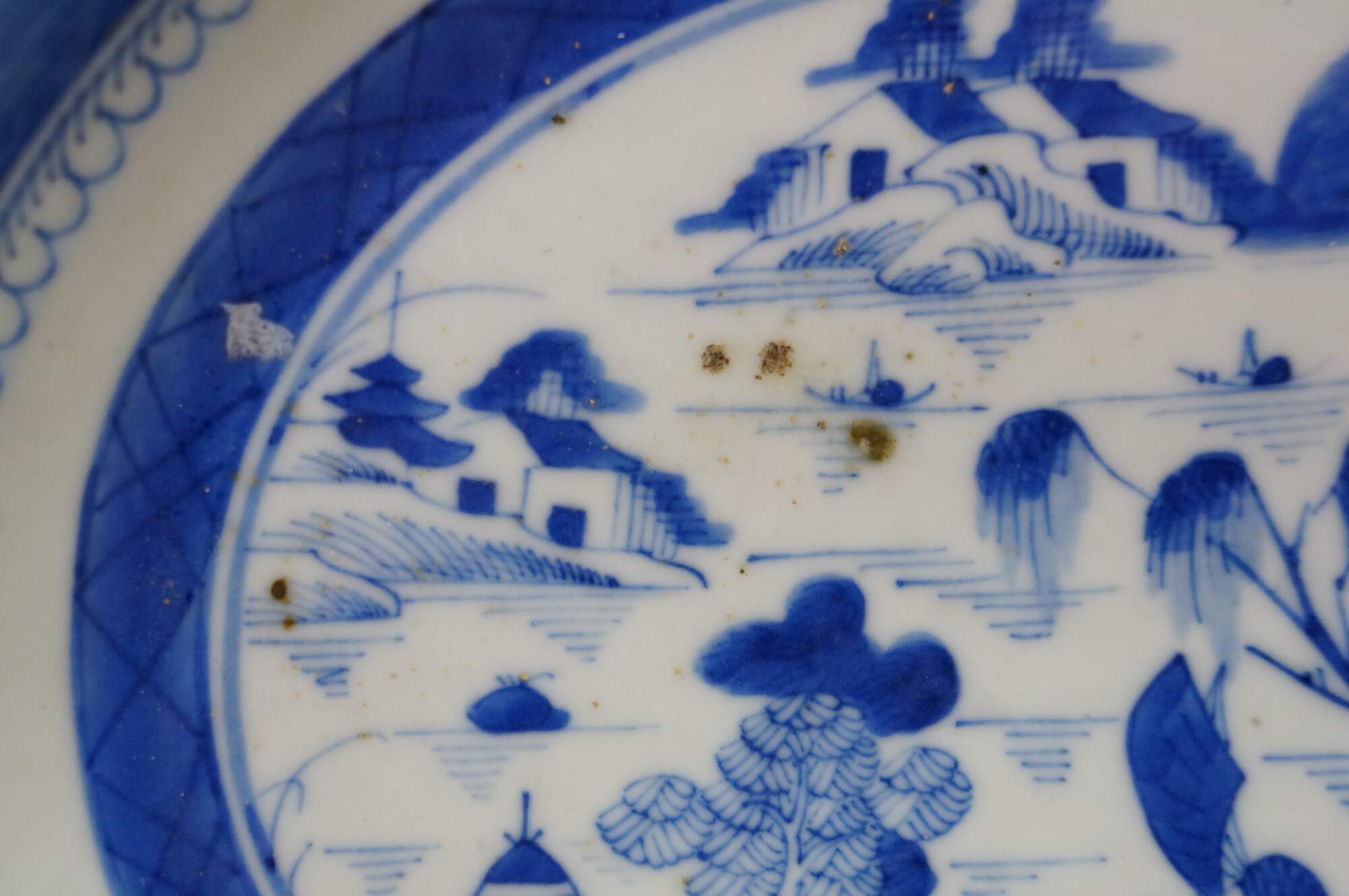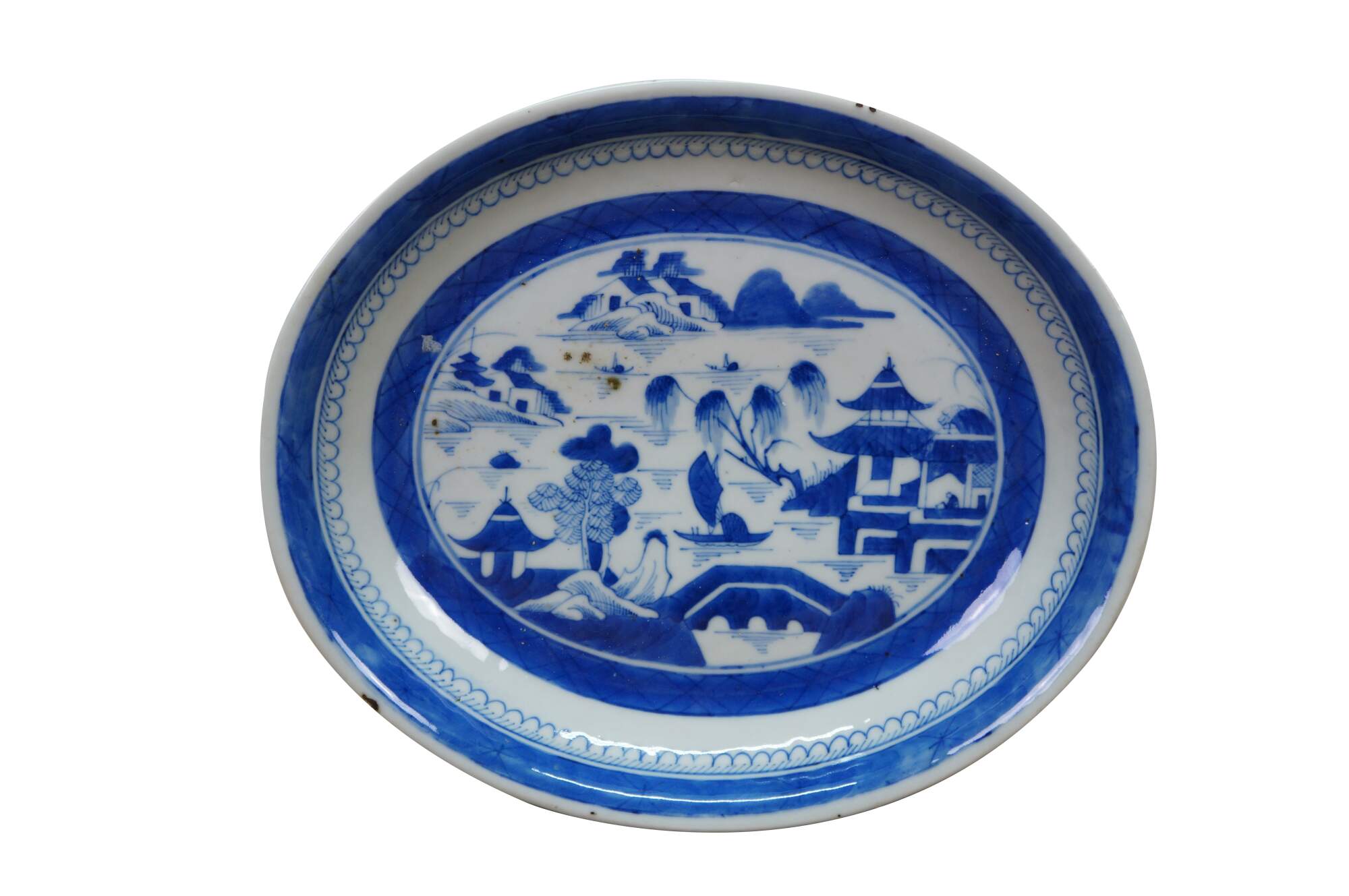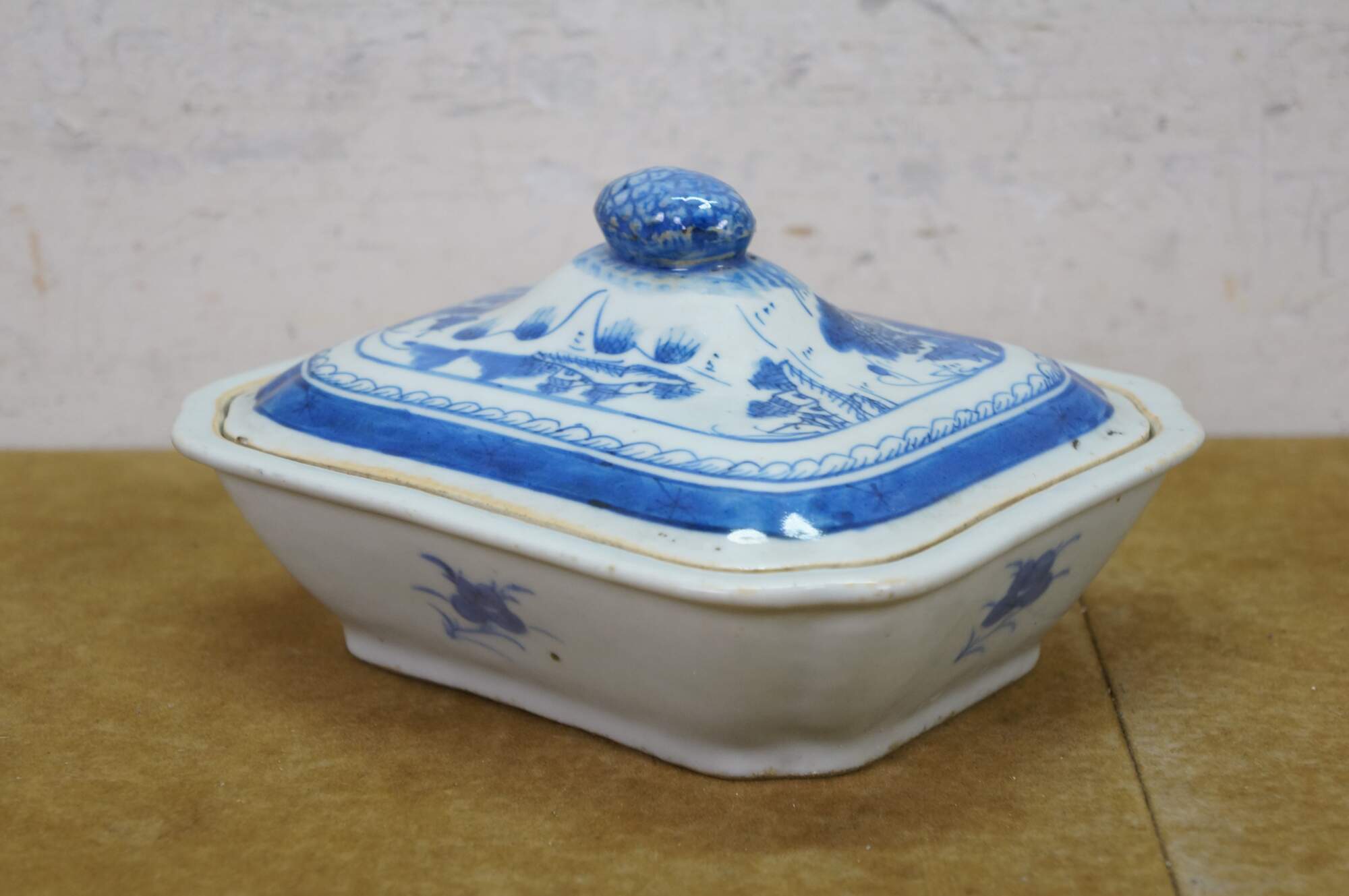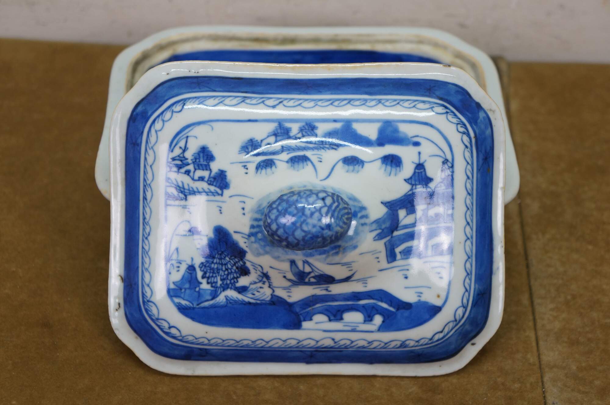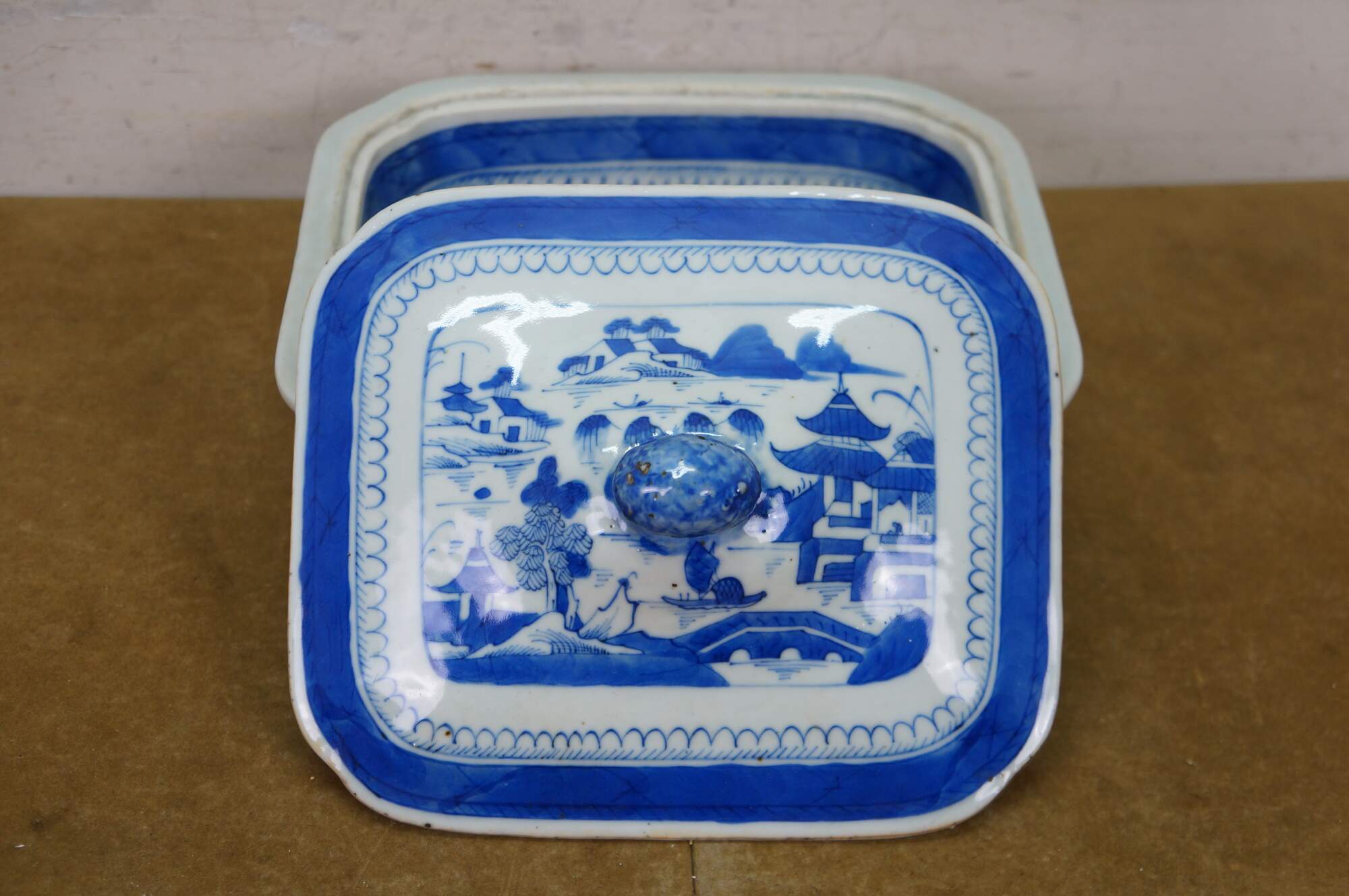 Antique Chinese Export Canton Blue White Serving Platter & Vegetable Tureens