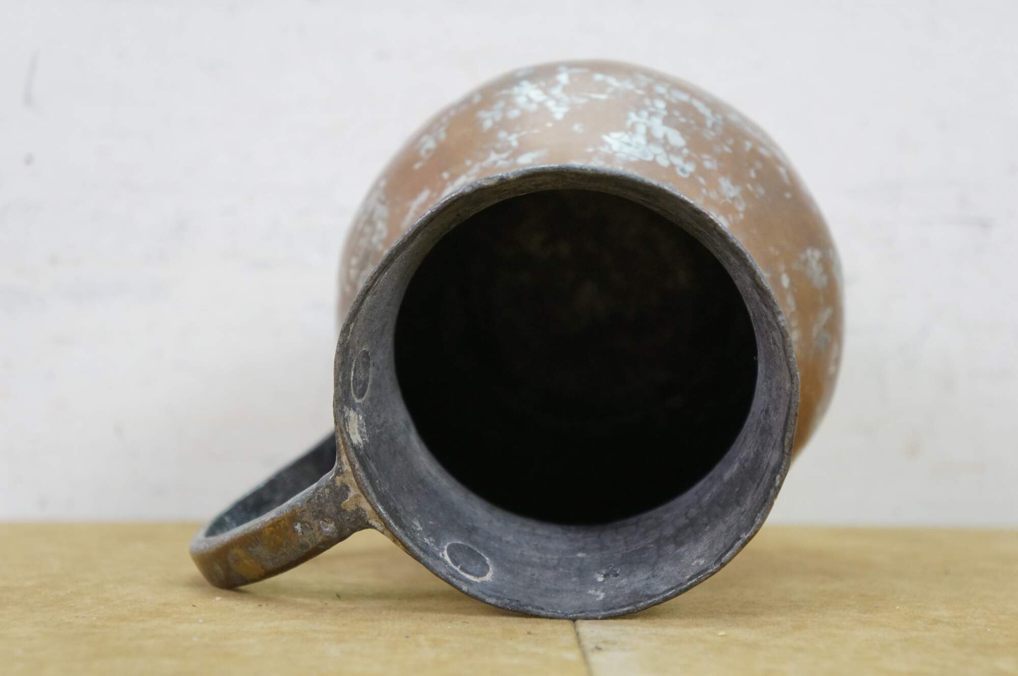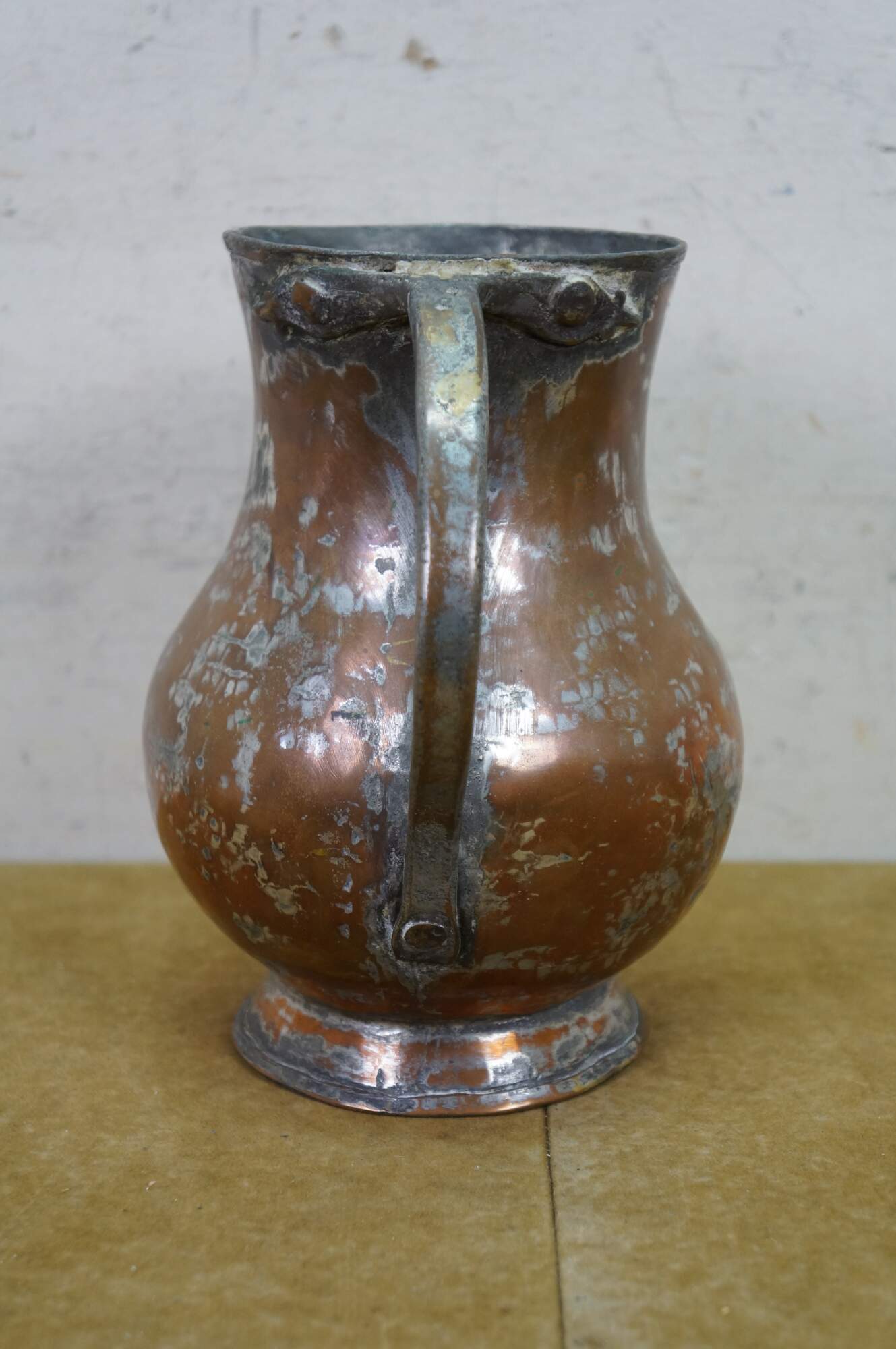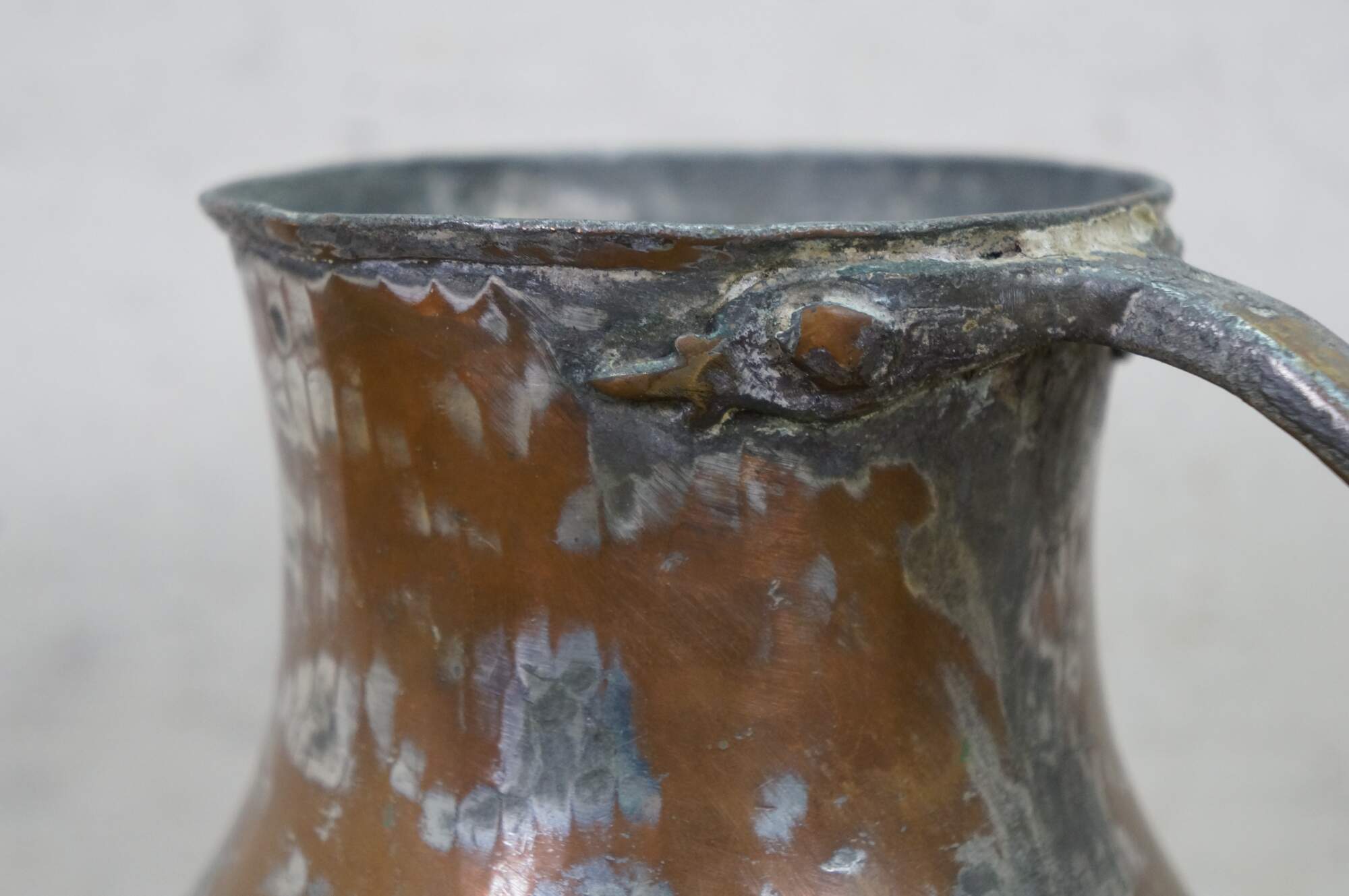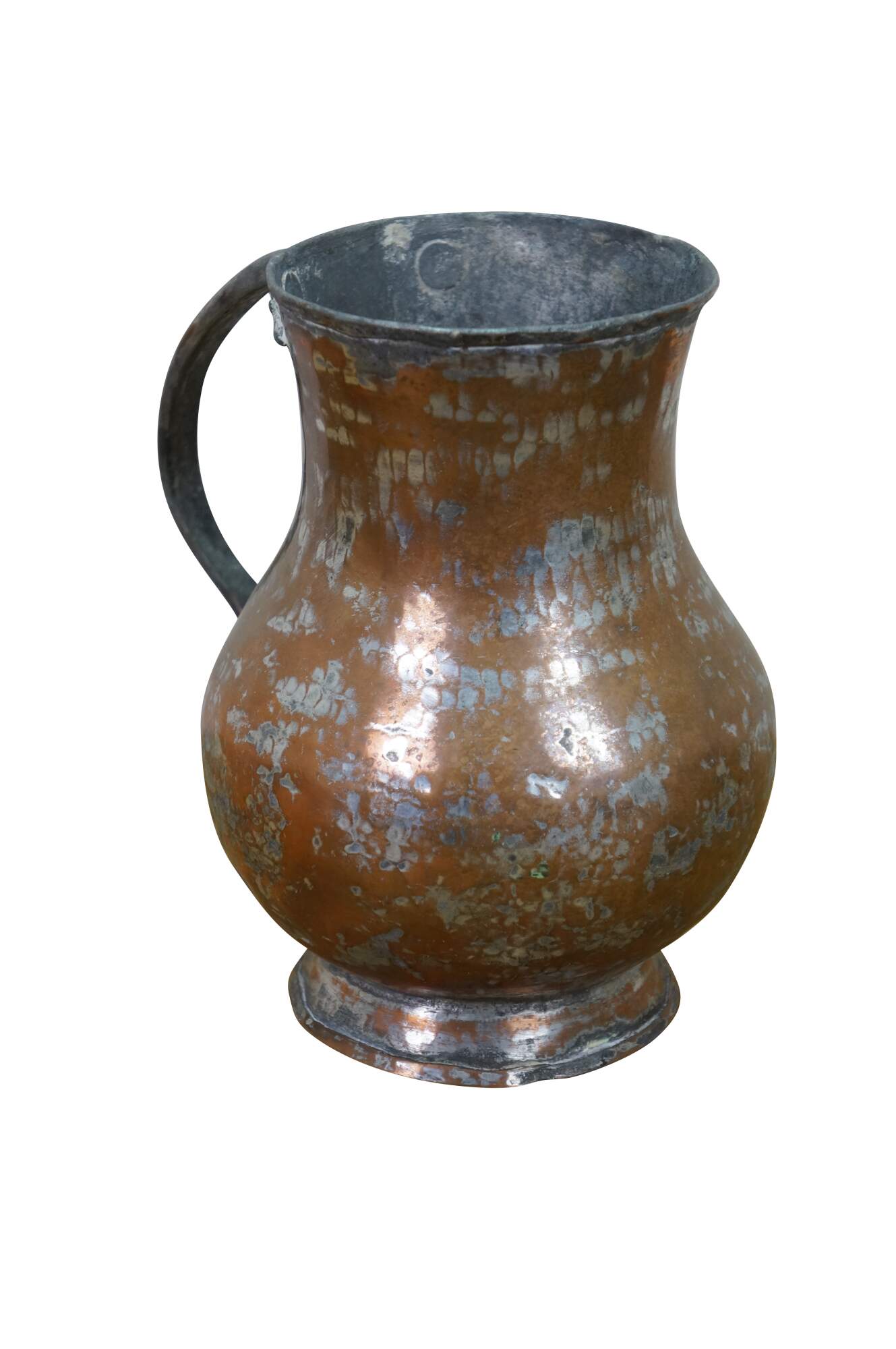Antique copper and tin-lined pitcher / water jug / ewer originating from Turkey or the Middle East.� Material: Hand-hammered copper with a tinned interior.