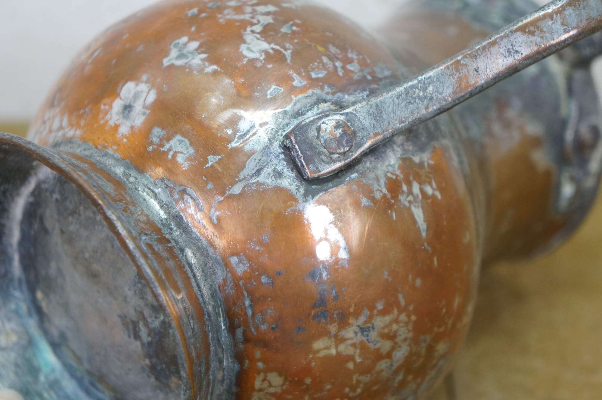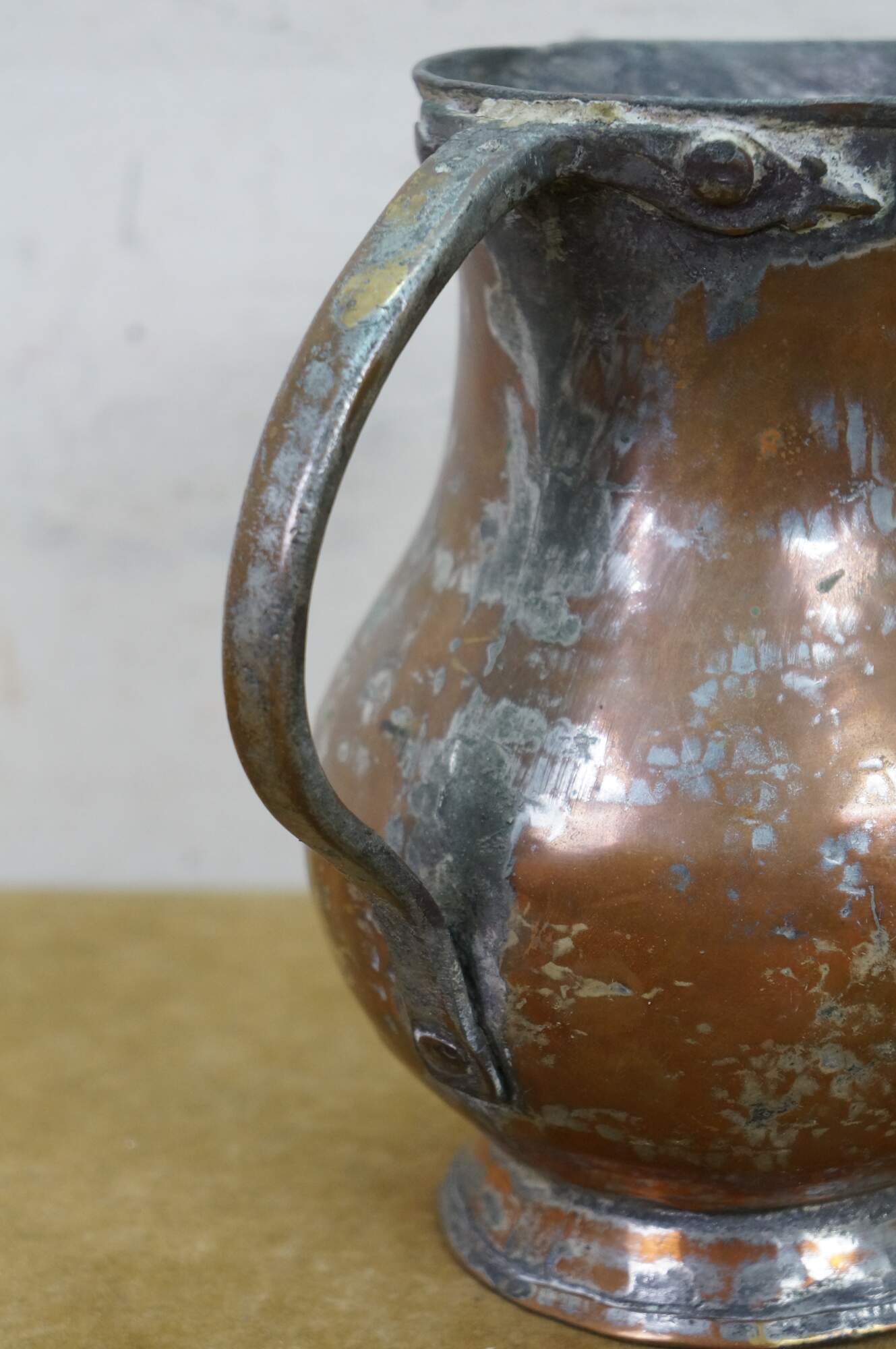 some dents, significant patina and wear.