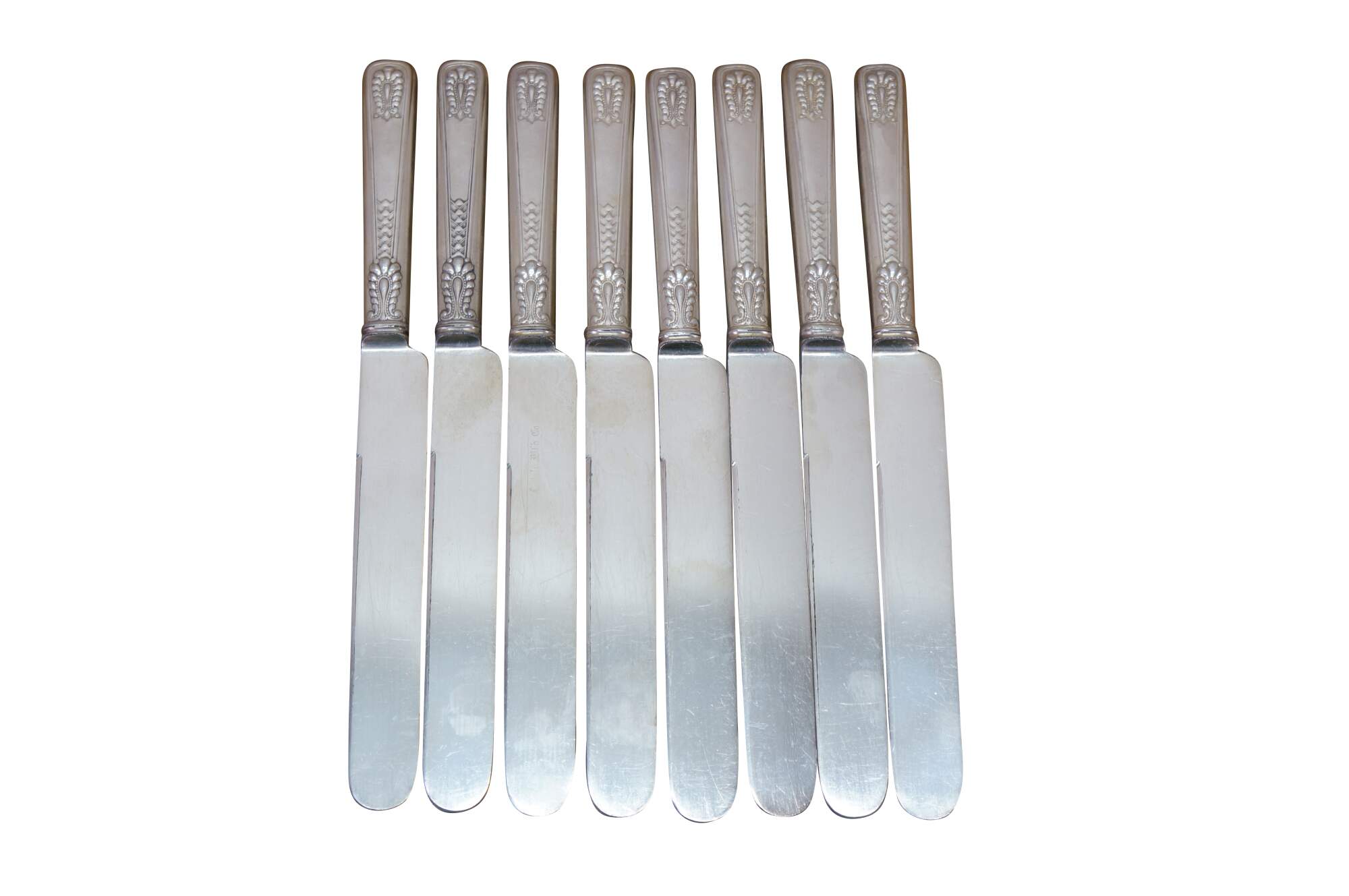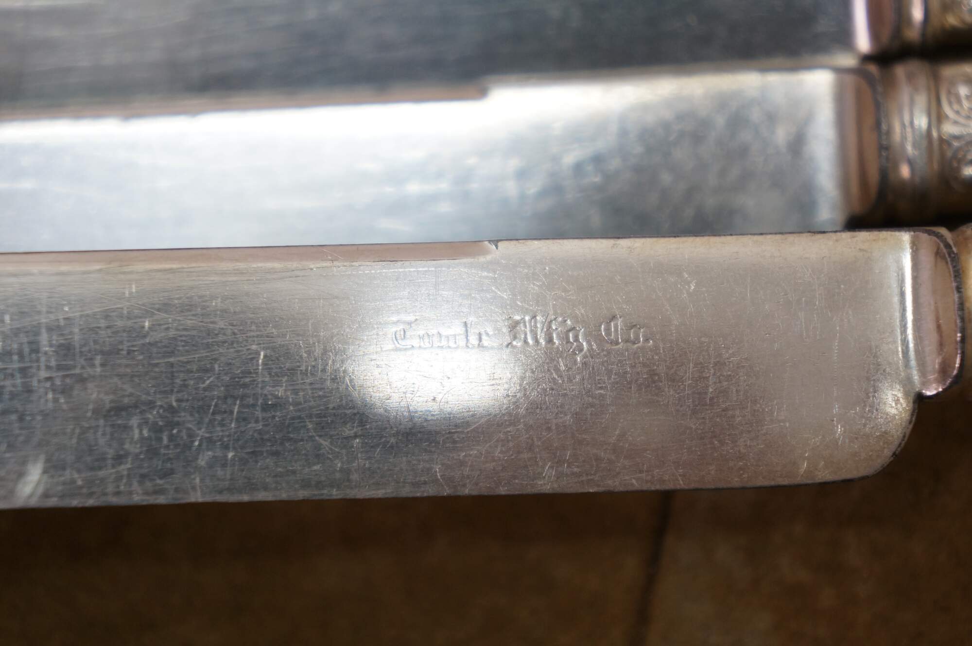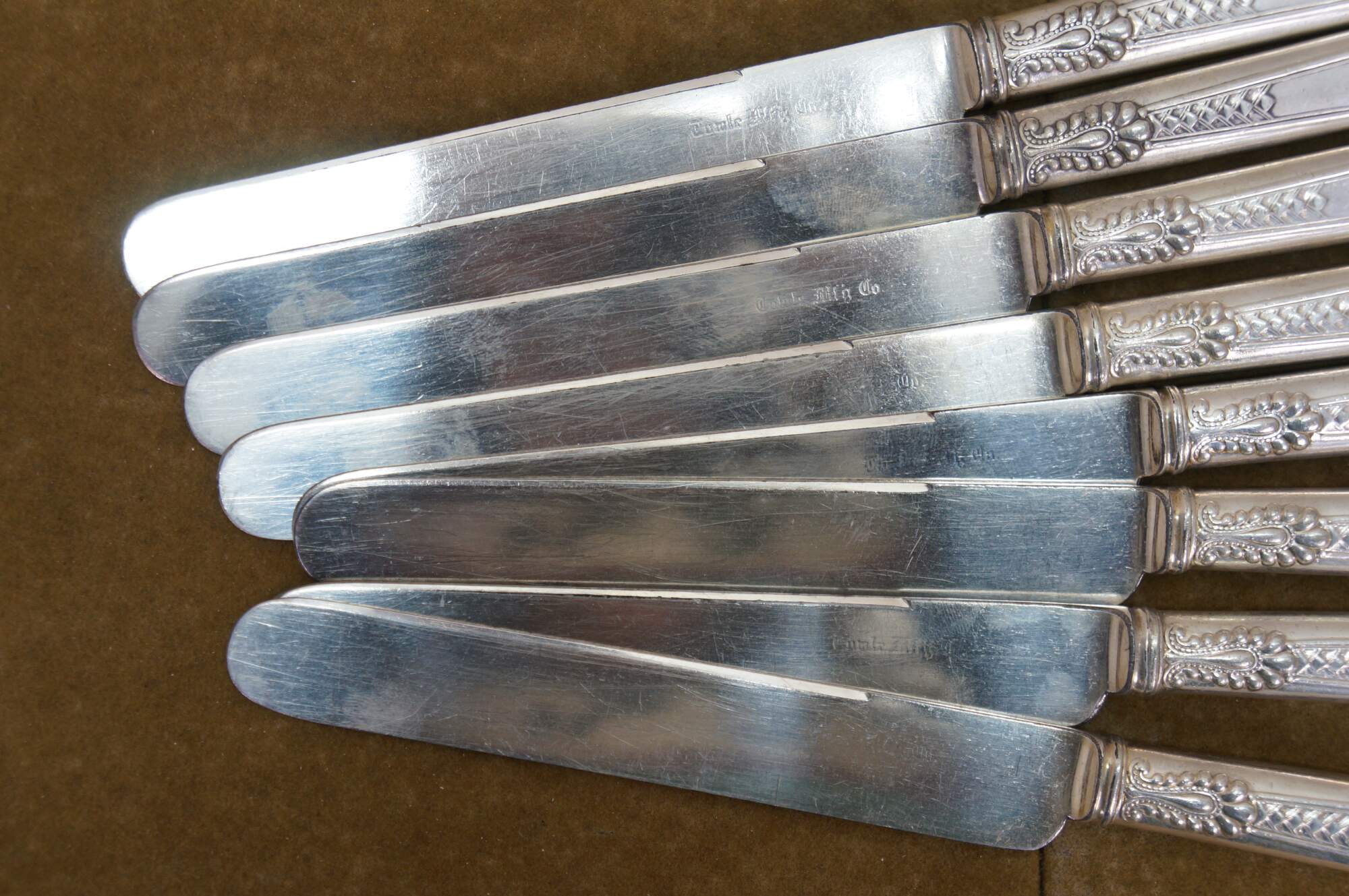Eight antique Towle Silver plated dinner knives in the Norwood pattern. Discontinued circa 1884. TWSNOR.