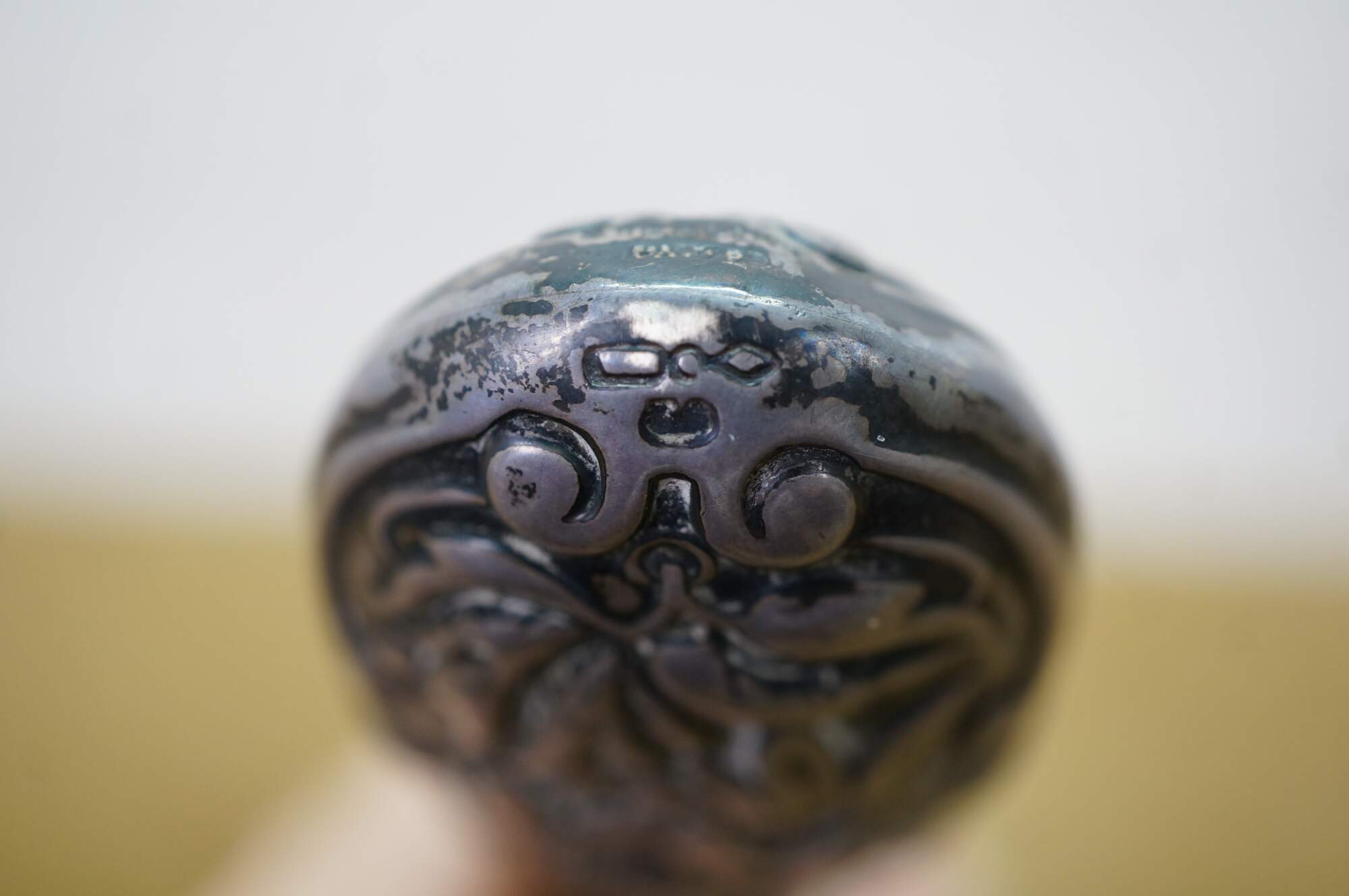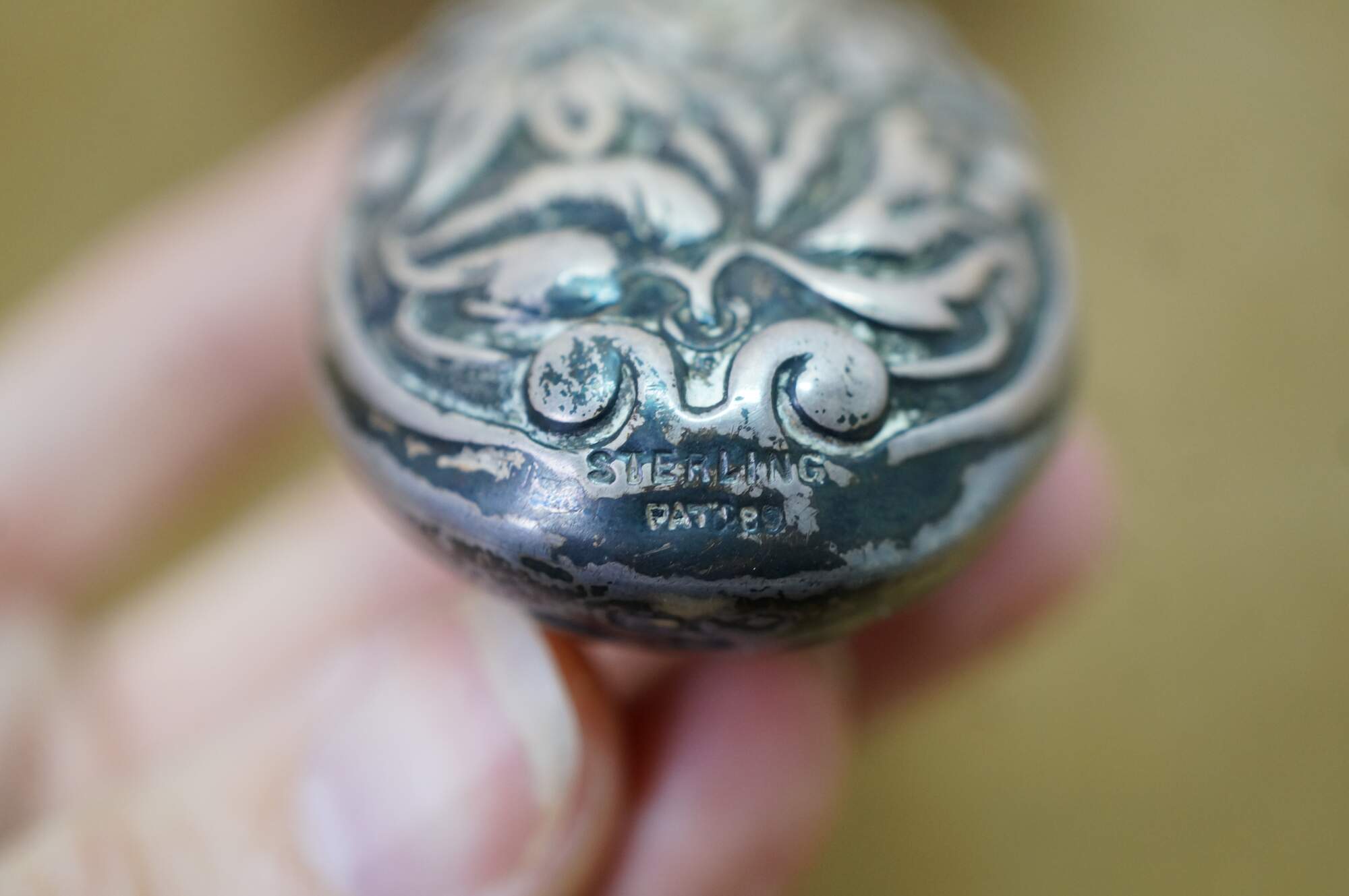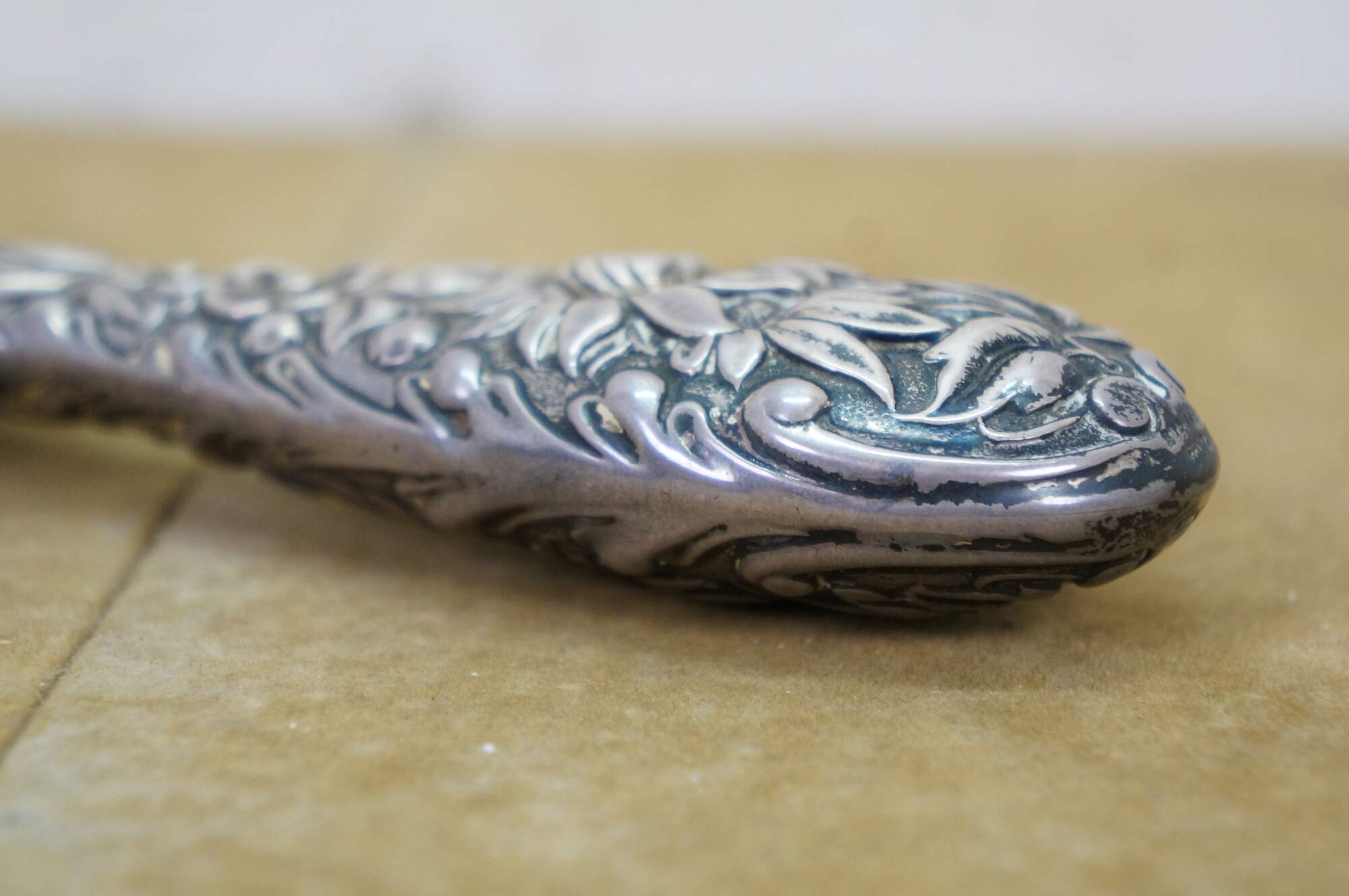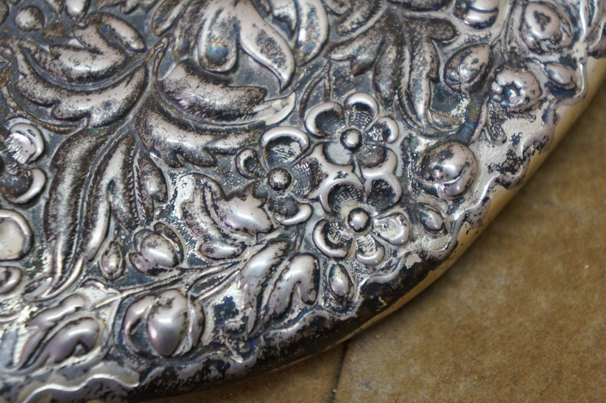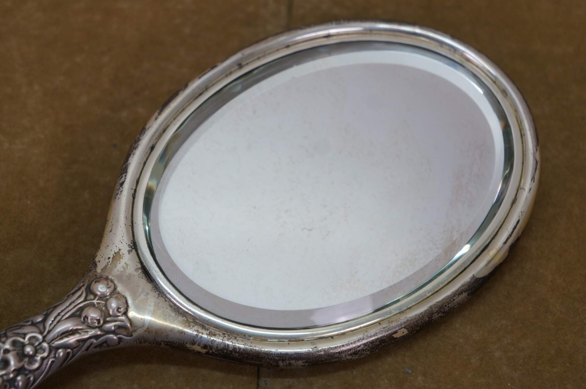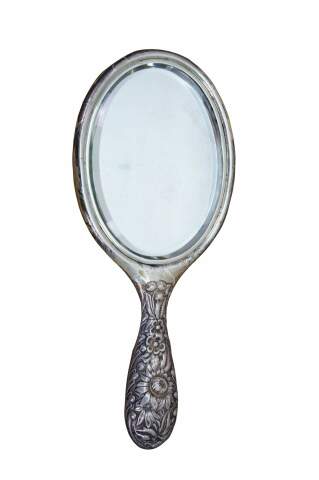 Antique Dominick & Haff Repousse Sterling Silver Beveled Hand Vanity Mirror 11"