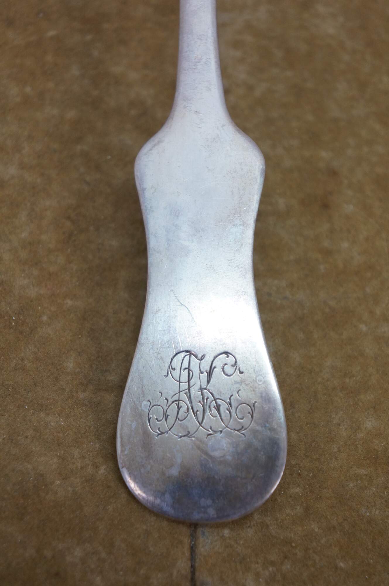 Rare antique Josef Zemen Austria / Hungary .800 silver soup / gravy / sauce serving ladle with fiddle shaped handle. Circa 1903 to 1922.