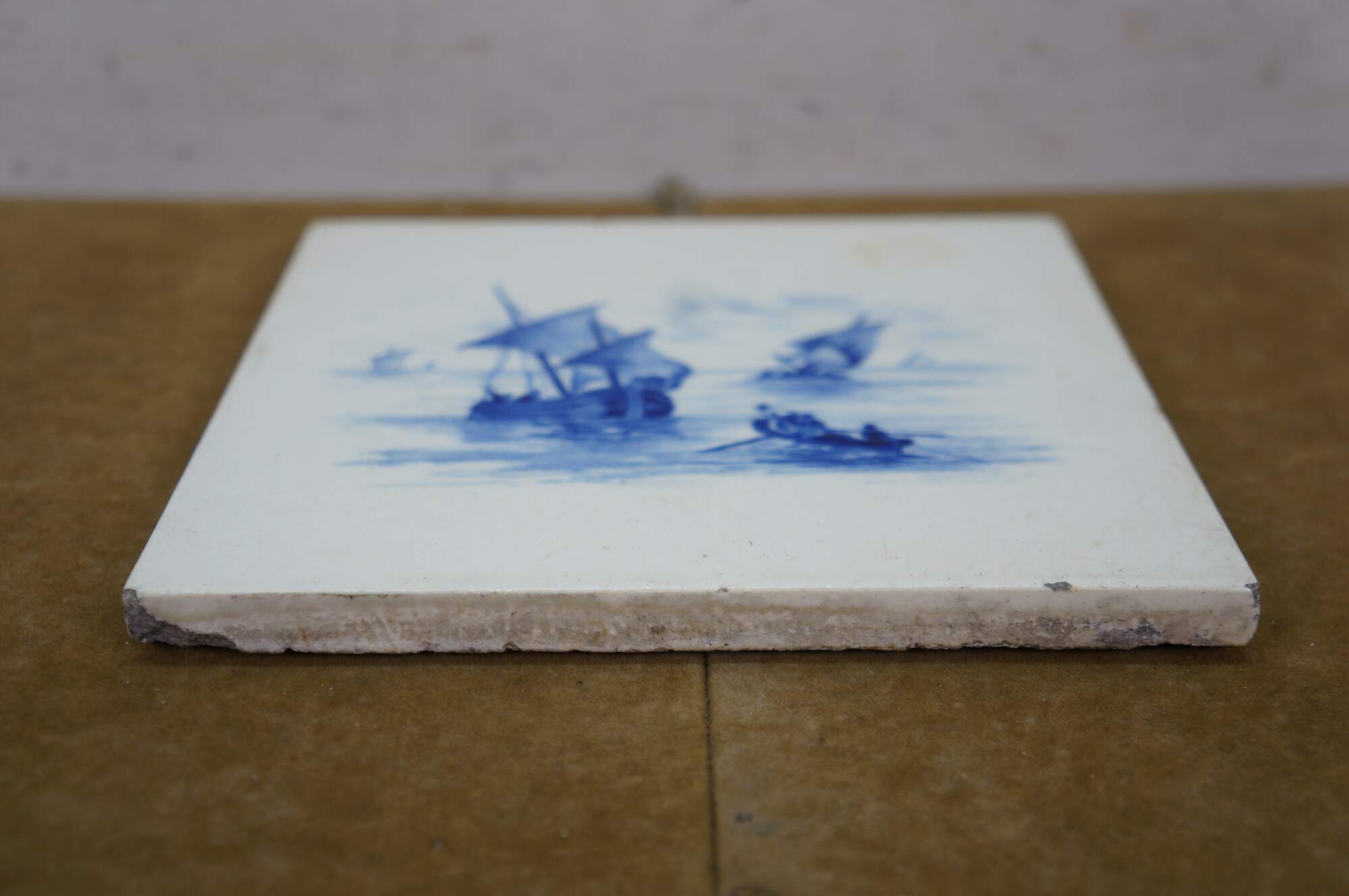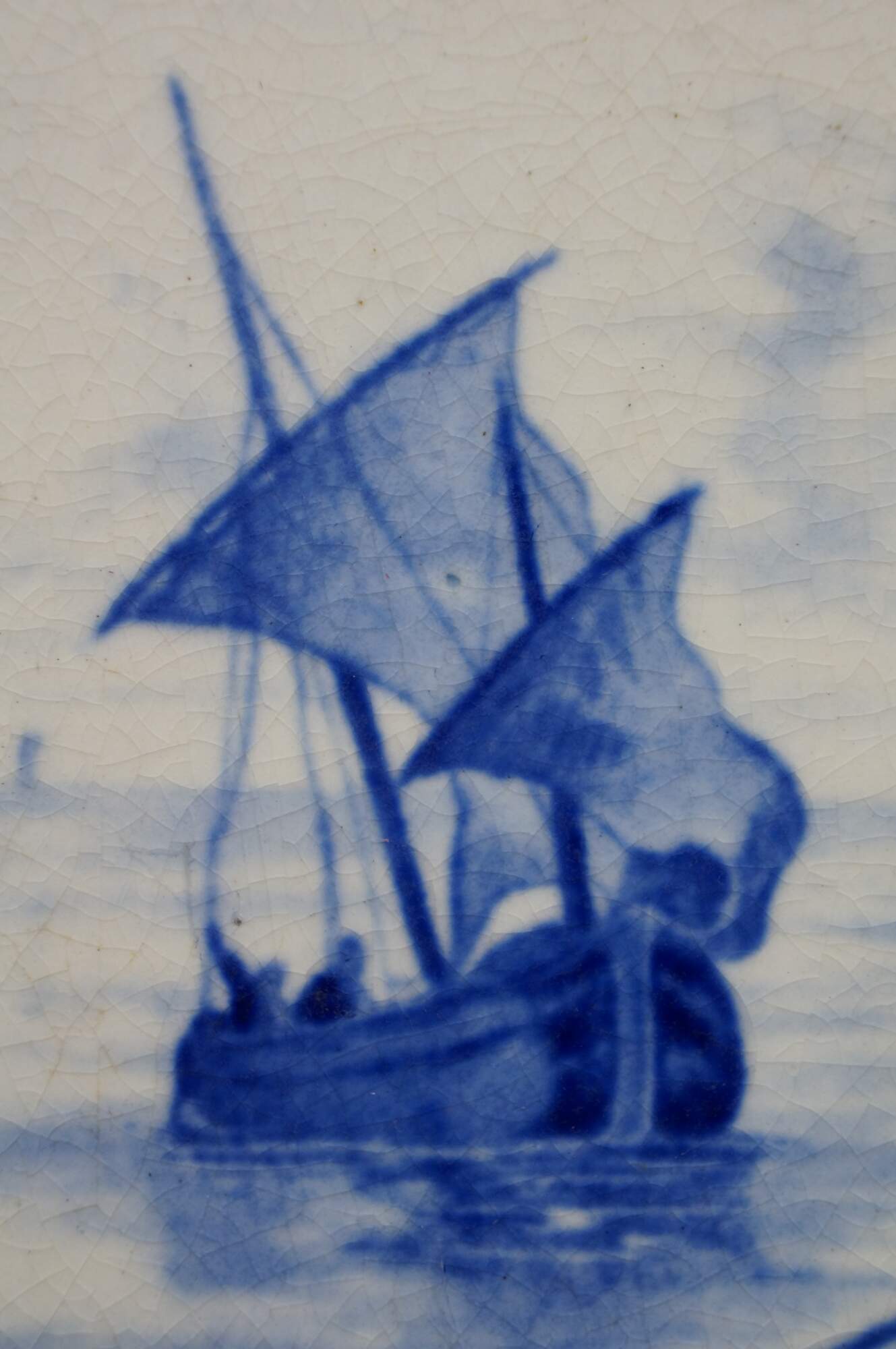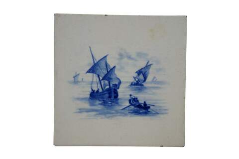 Antique Dutch Delft Cobalt Blue Nautical Maritime Rowboat Sailboats Ship Tile 6"