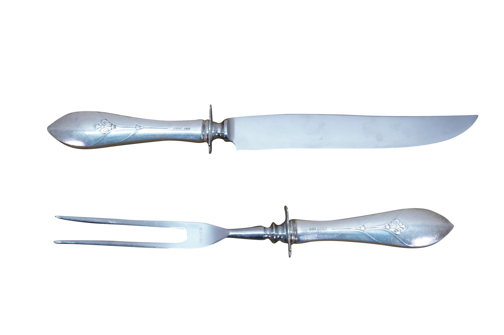 Antique GH French & Company Sterling Silver Carving Fork Knife Set 10"