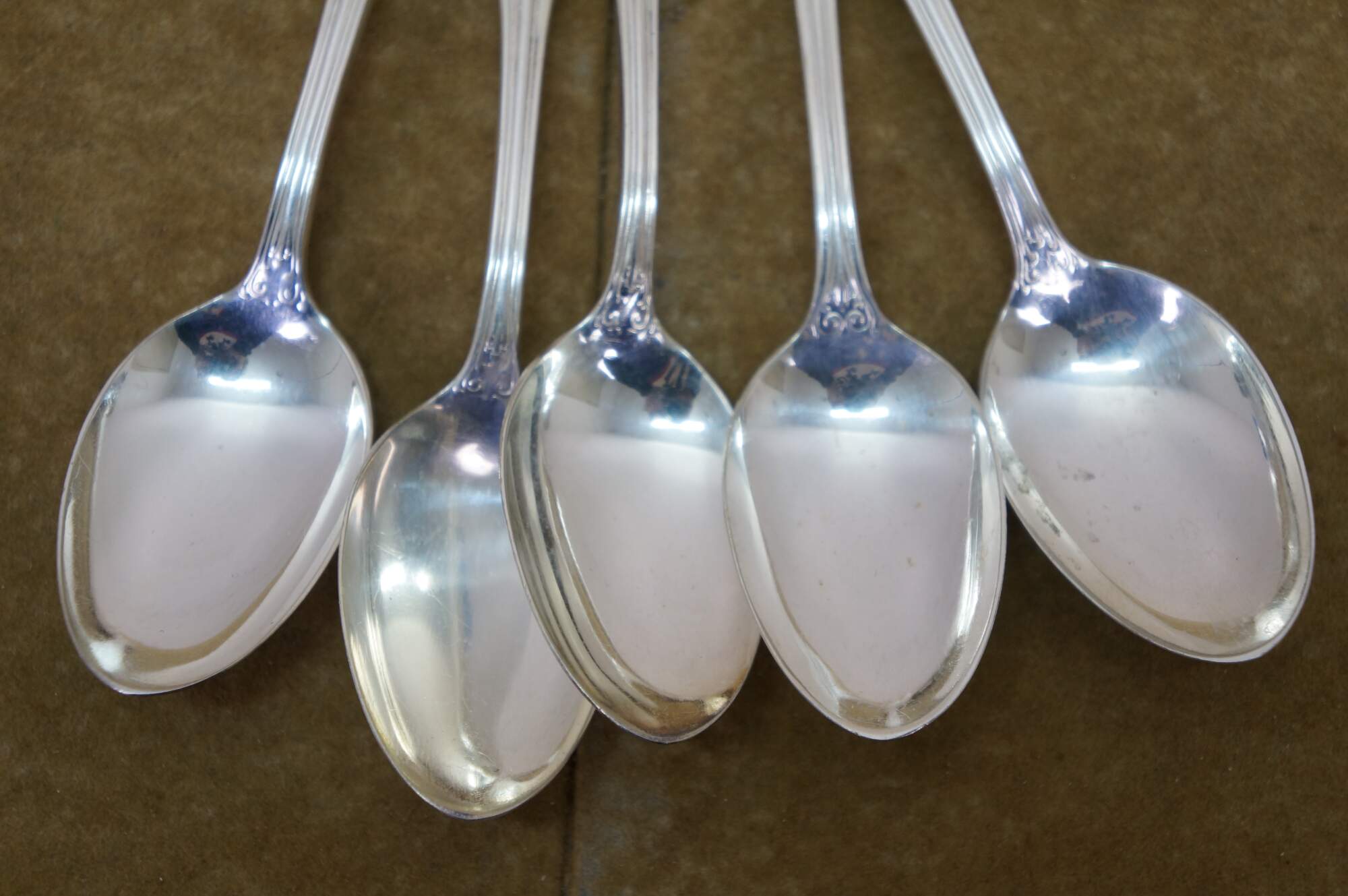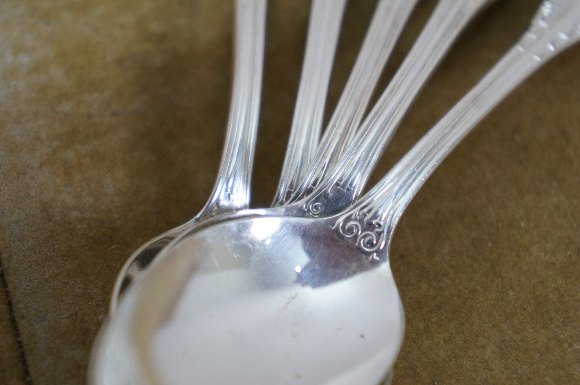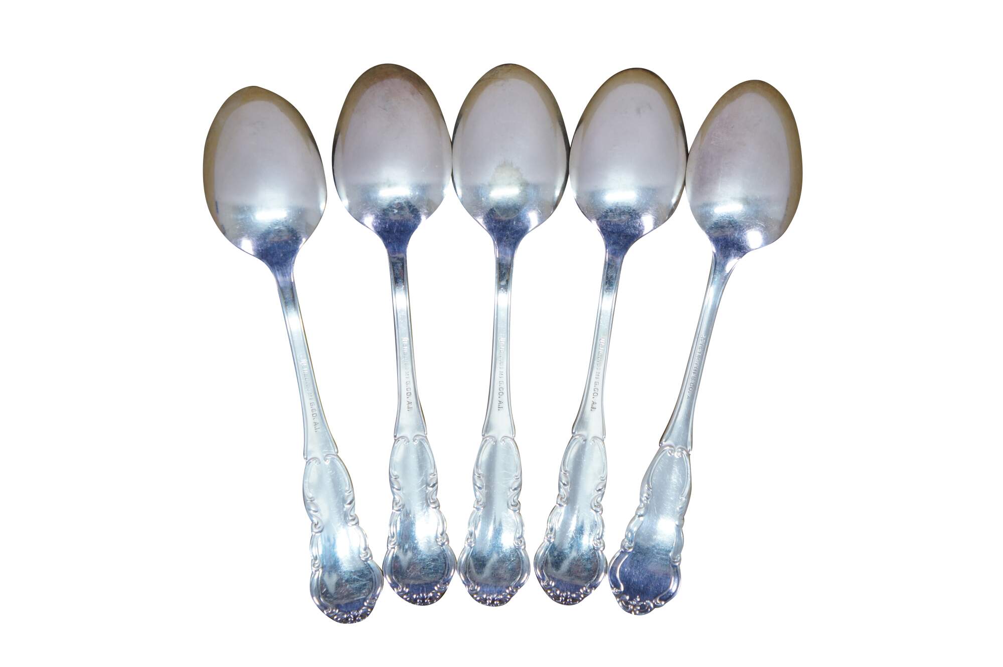 Five antique mid to early century Benedict Mfg Co high quality A1 silver plate flatware spoons. Benedict Mfg. Co., East Syracuse, New York 1894-1953.