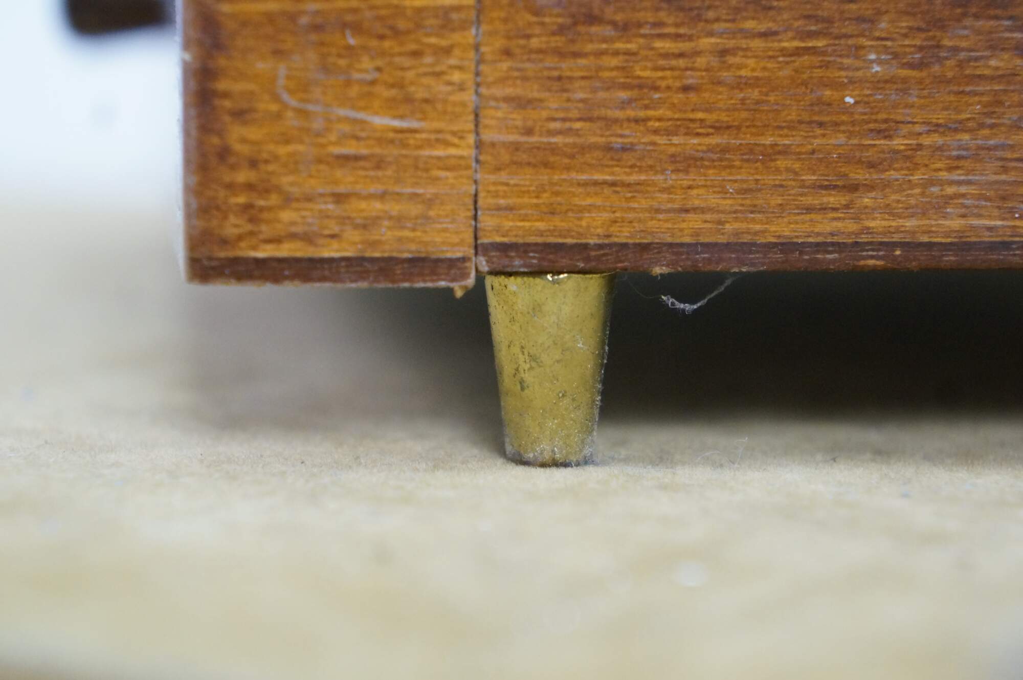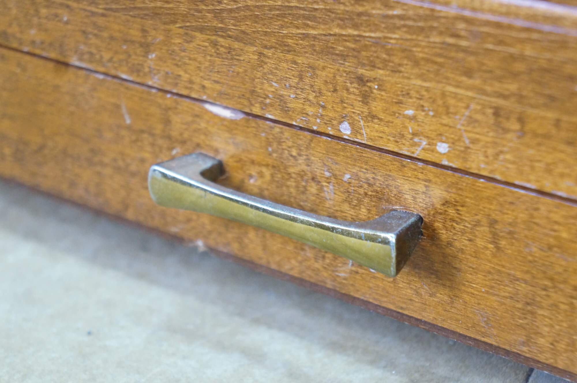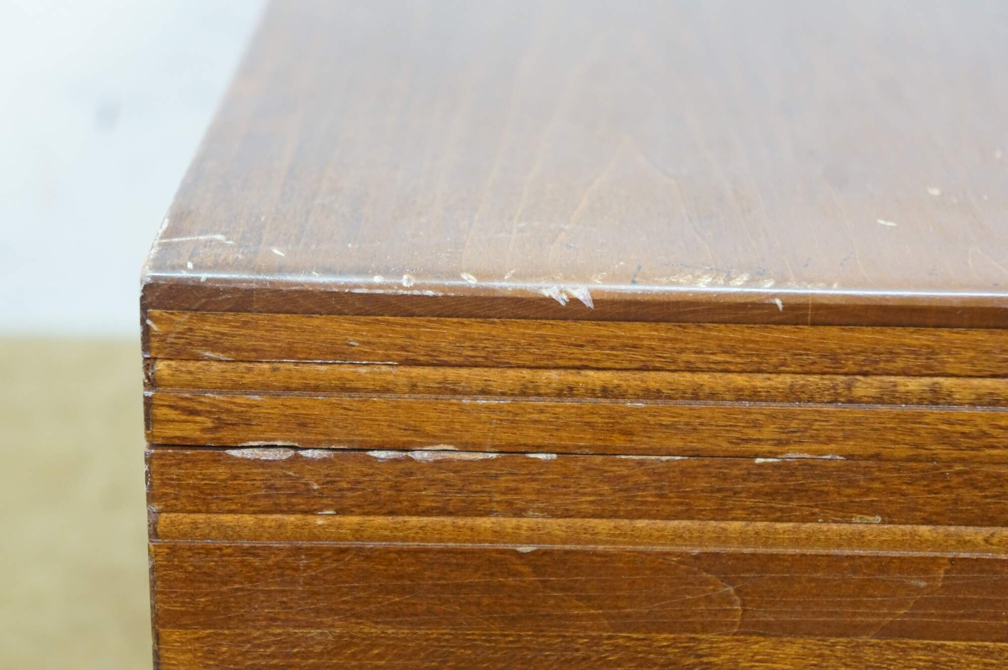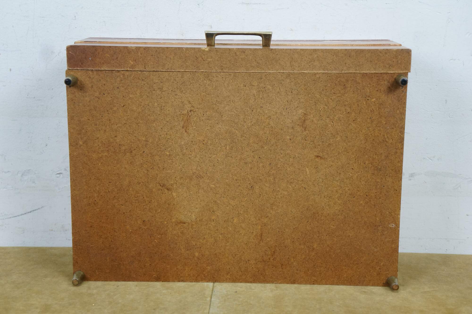 Mid century maple Oneida LTD Heirloom silver flatware cutlery storage box featuring a teal blue lining with upper divided storage area and lower drawer for larger pieces. Originally housed a collection of Sterling Silver in the Heirloom collection.