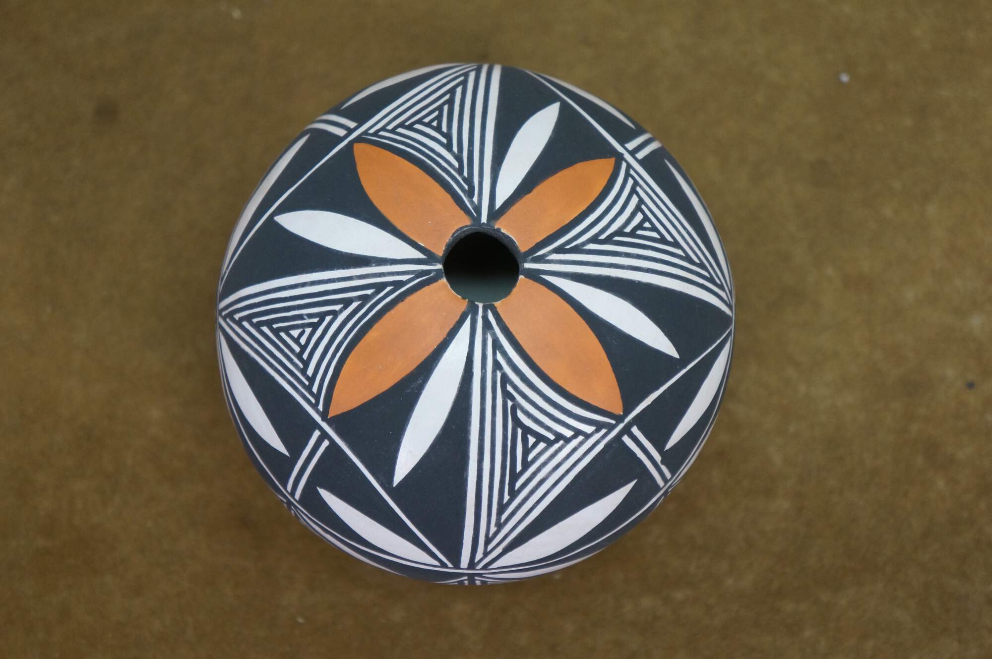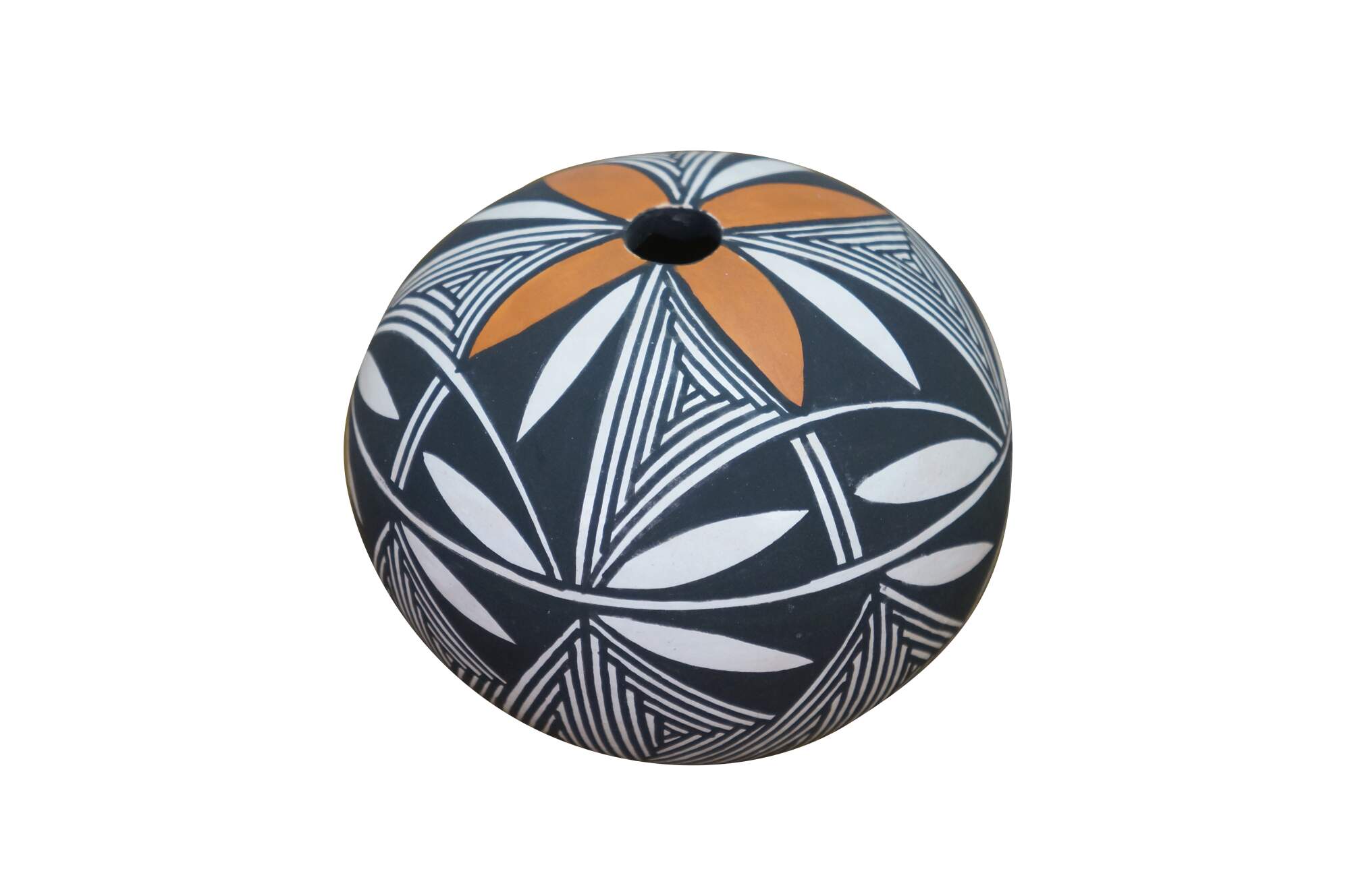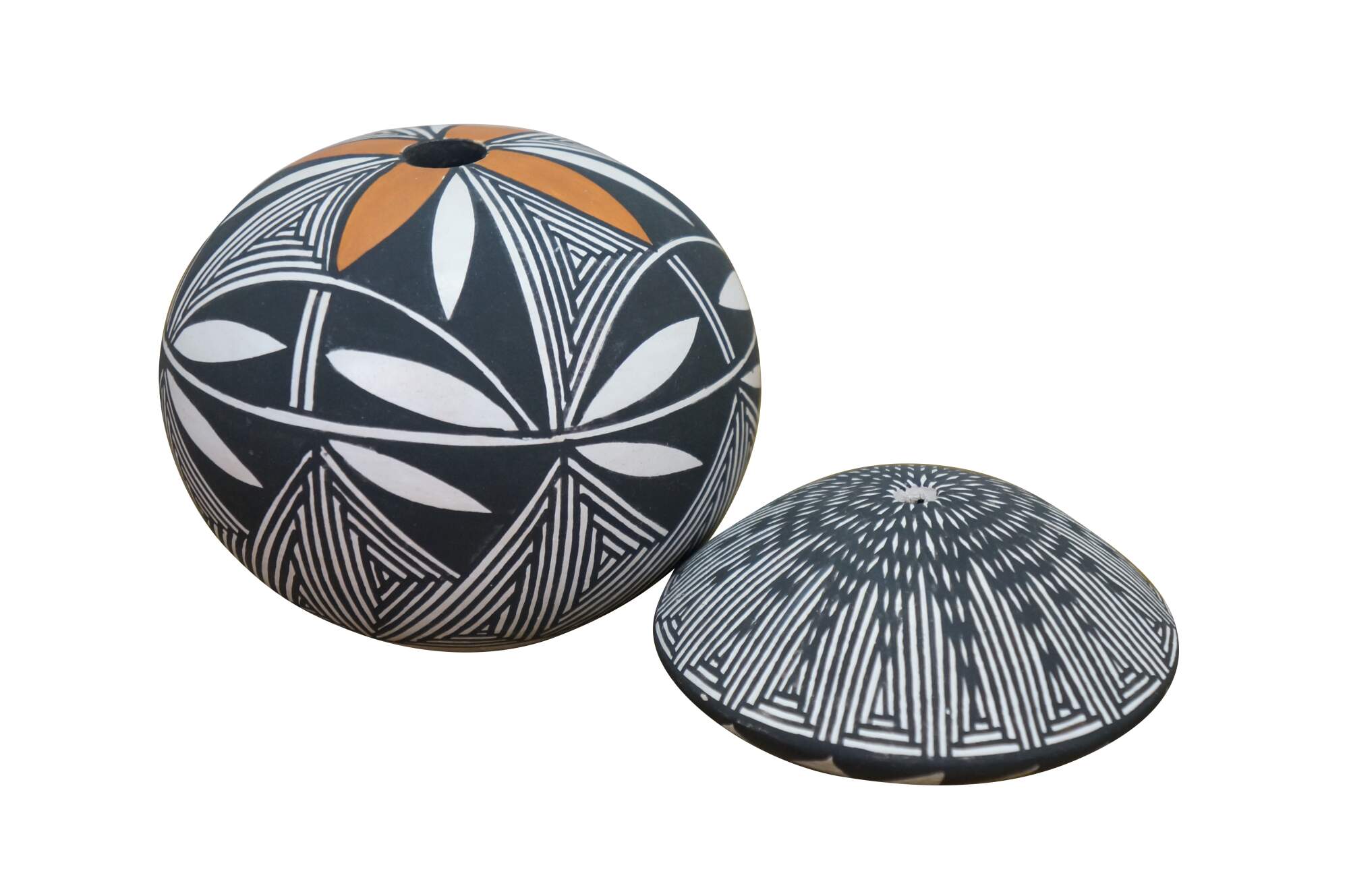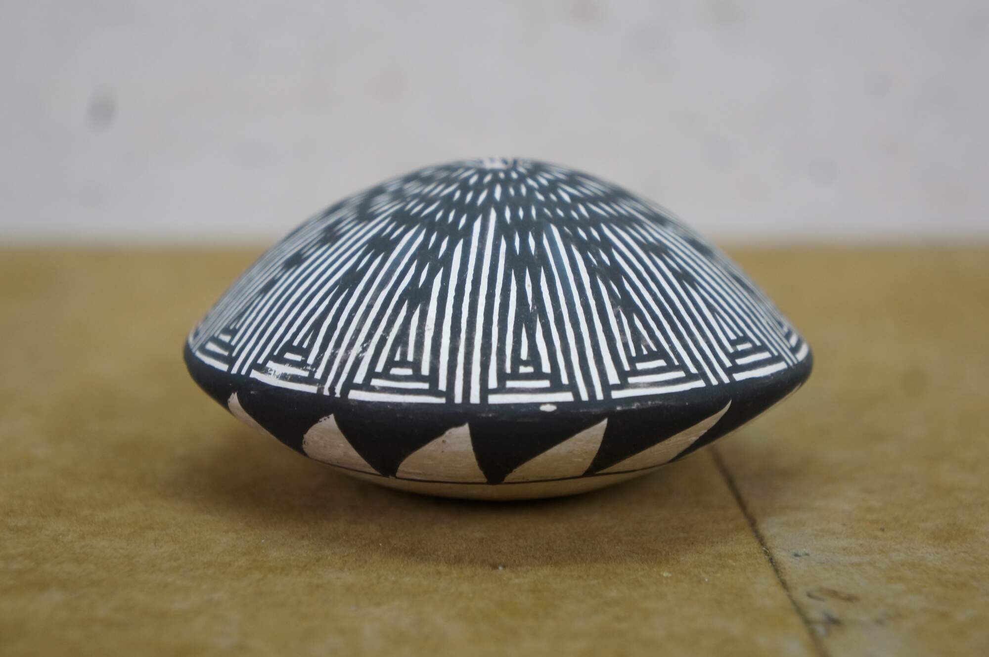 Two vintage D. Patricio signed Acoma New Mexico / Southwestern / Native American / Pueblo polychrome seed pots / pottery bud vases.