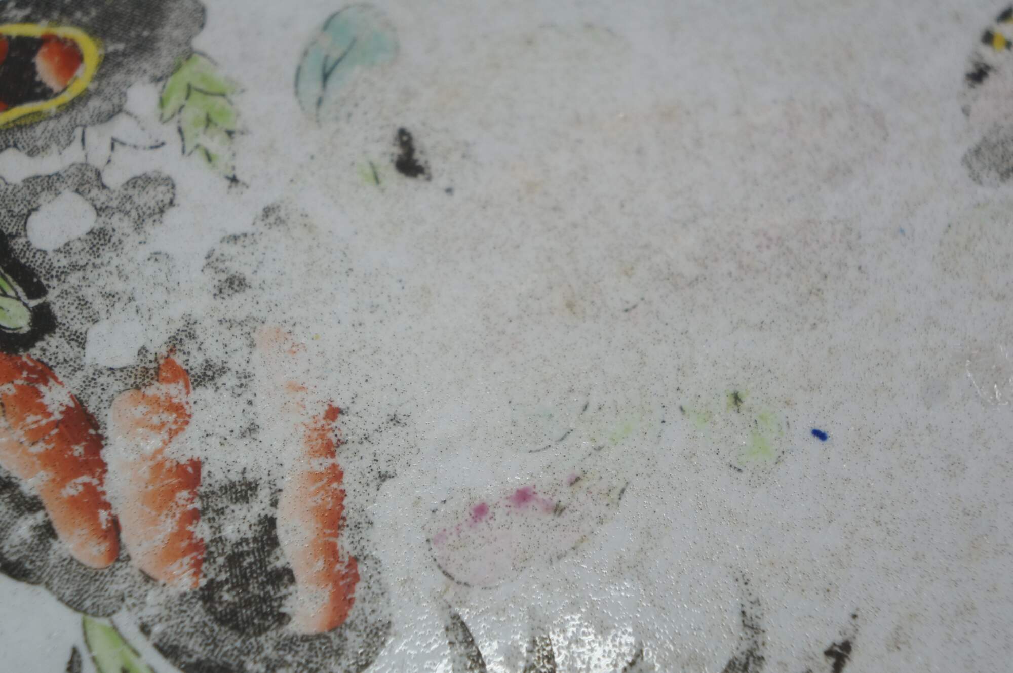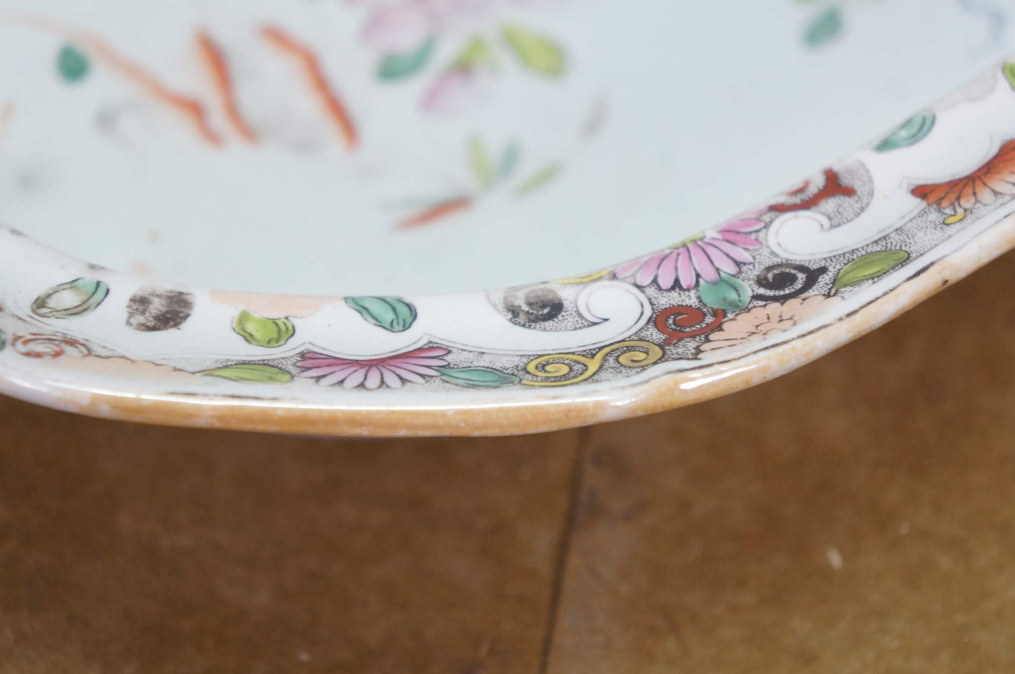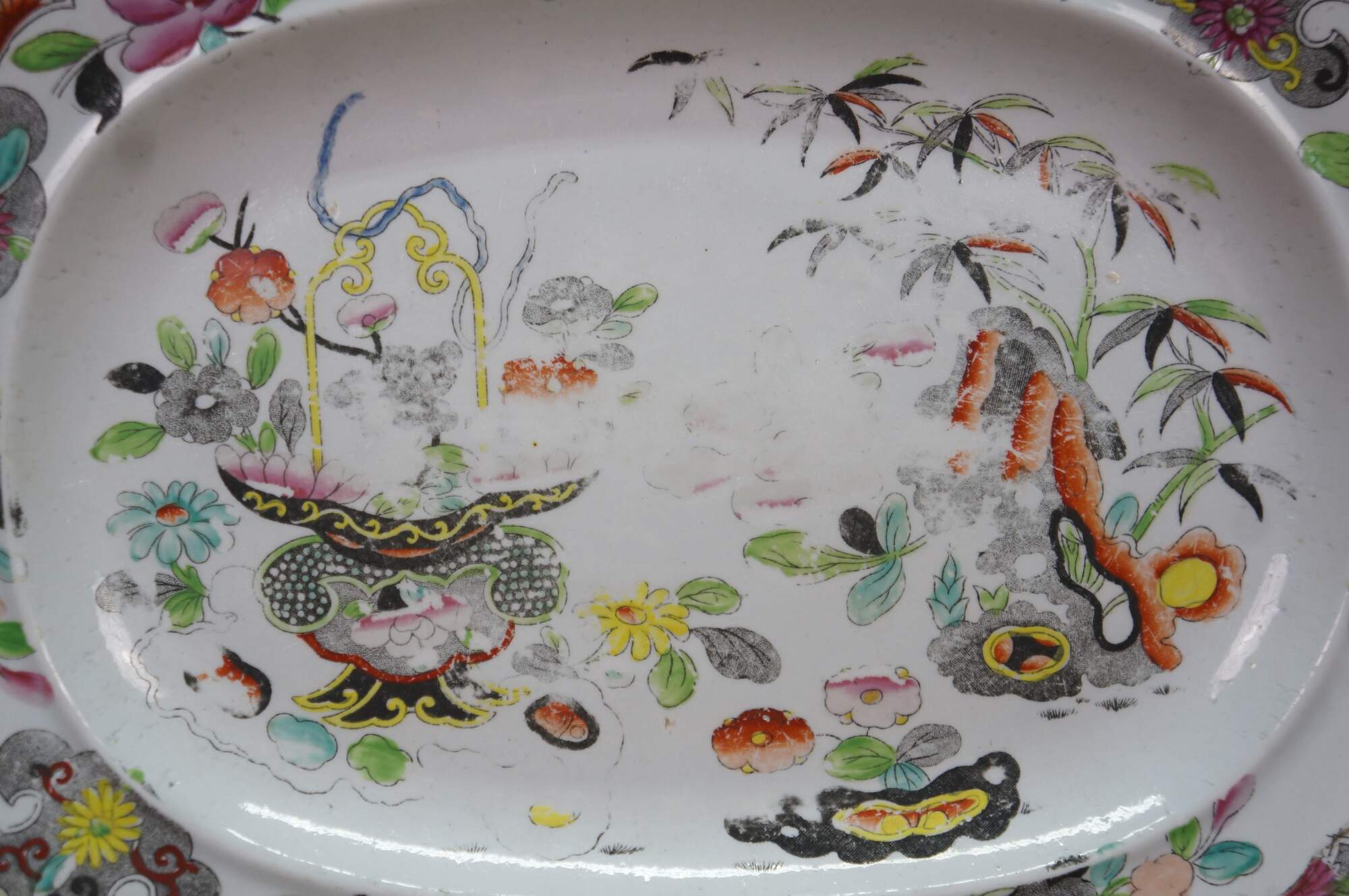 Good Overall; Discoloration and fading. Wear to decorations; a few chips to underside