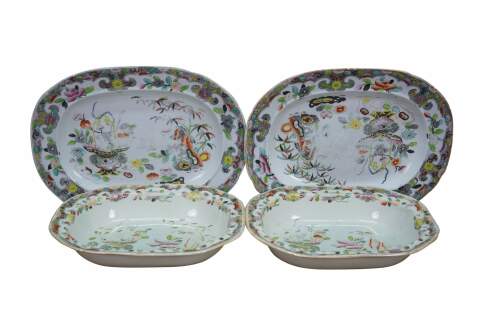 4 piece lot of English Stephen Folch & Mason's Ironstone Chinoiserie Serving platters or trays in the Imari Ironstone style Bamboo & Basket pattern. Circa 1810-1825