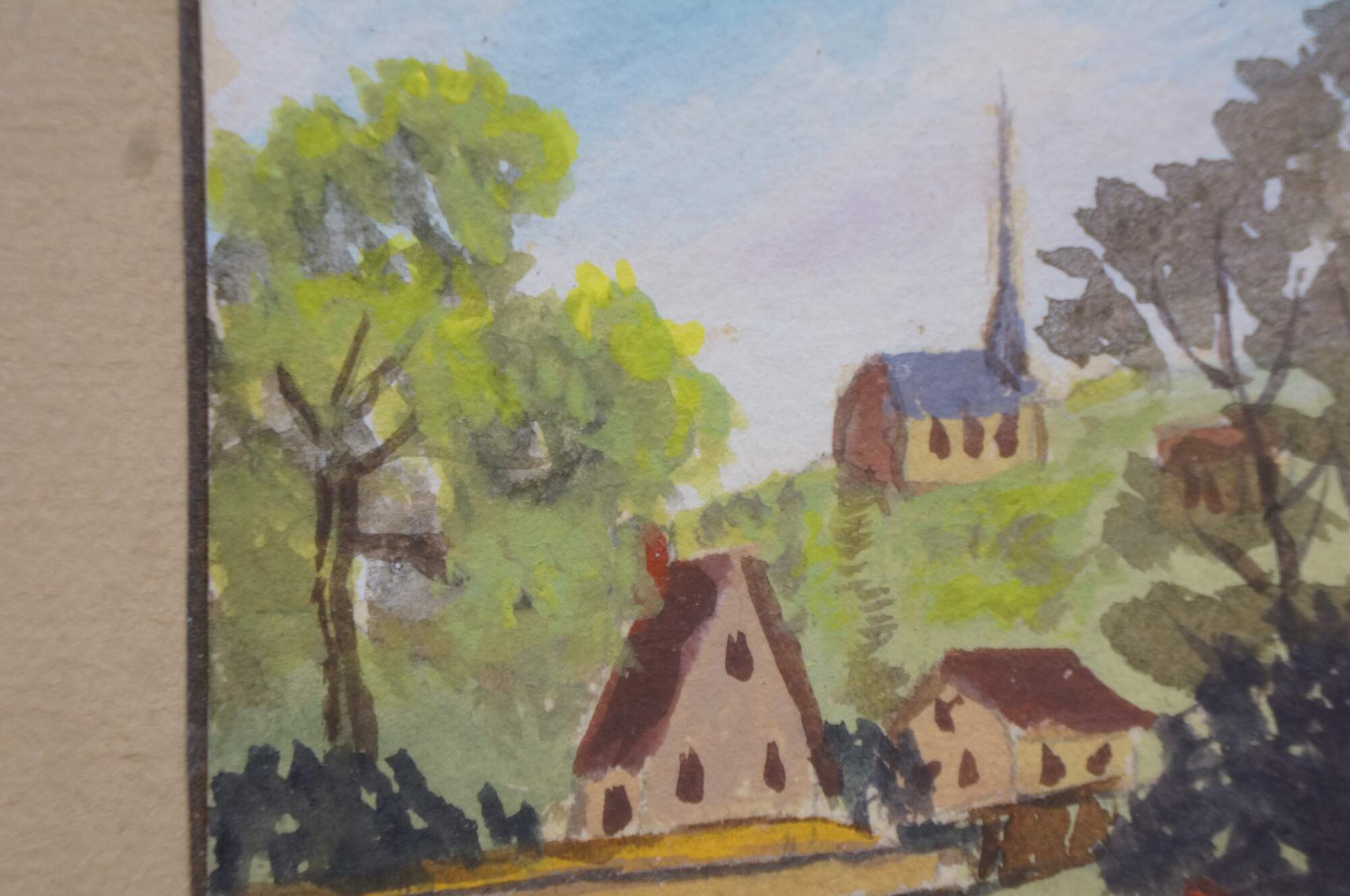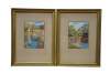 2 Mid Century Helen McRae Architectural Watercolor City Landscape Paintings 9"