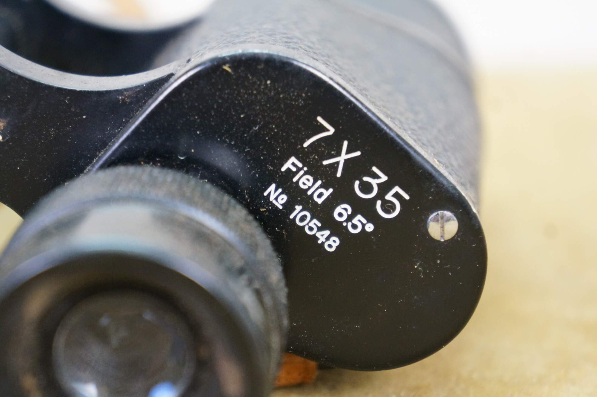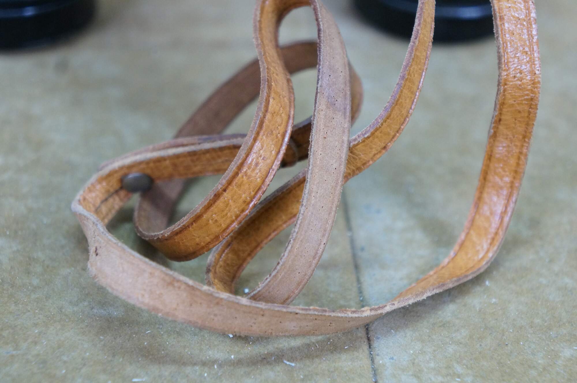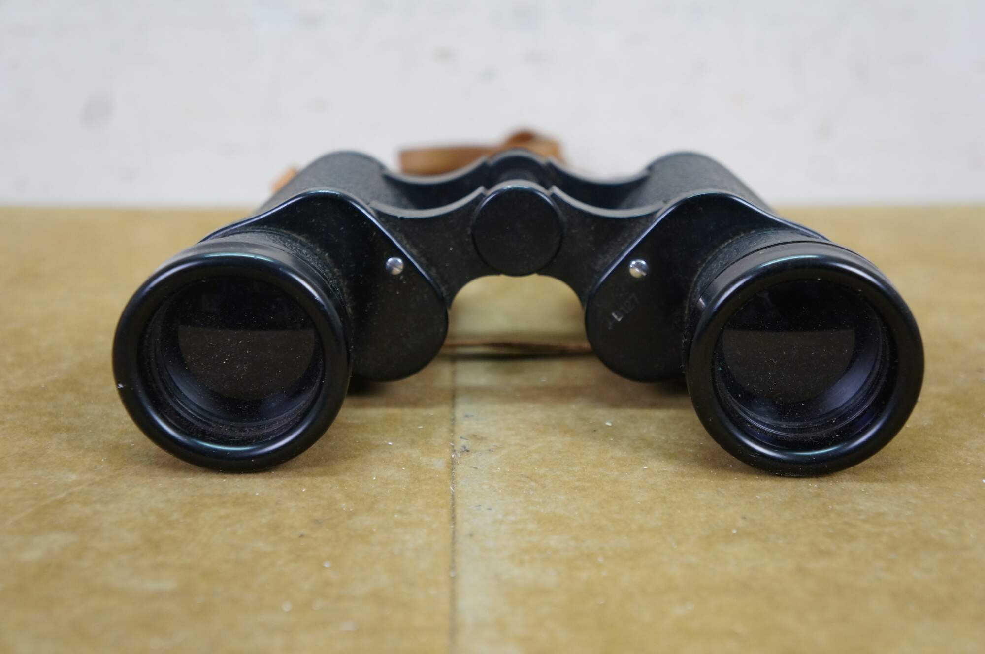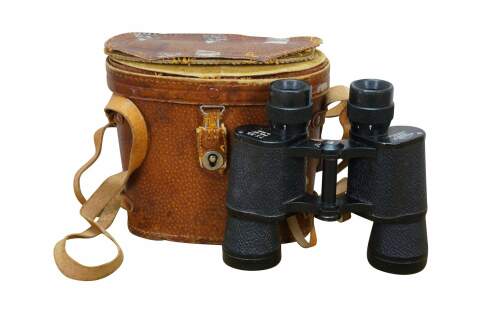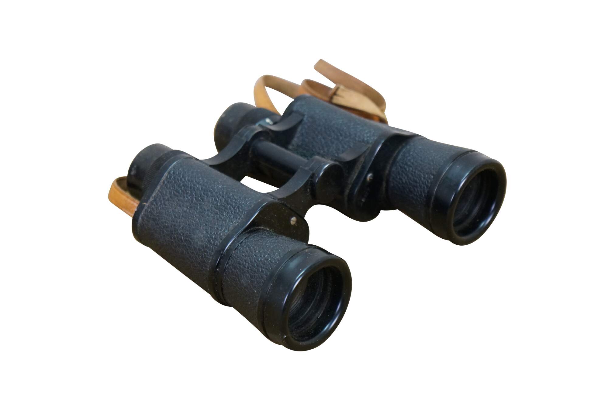 Vintage pair of wide-angle binoculars made in Japan, featuring coated optics and sturdy construction with Hoya glass components. Includes leather case.