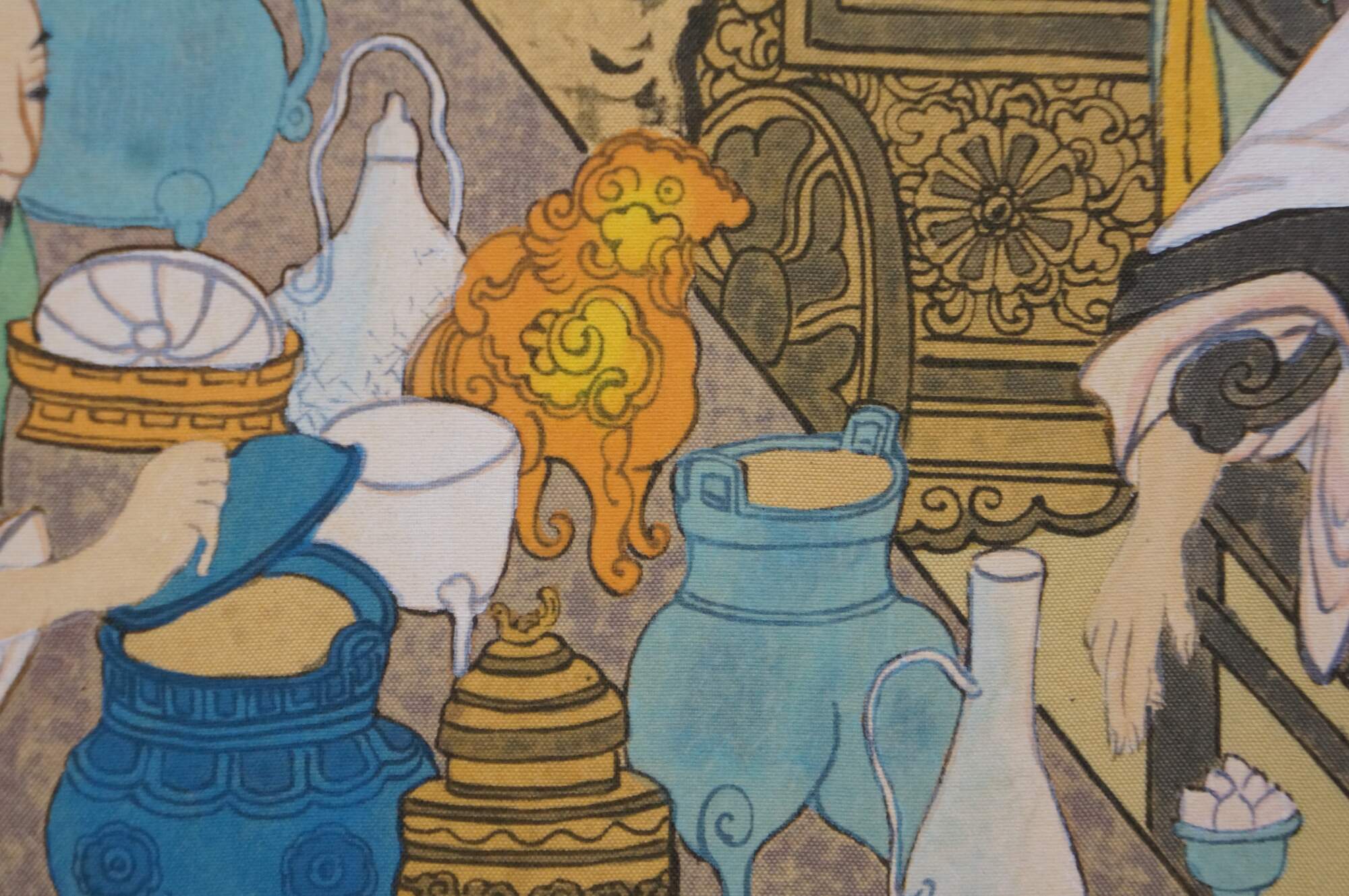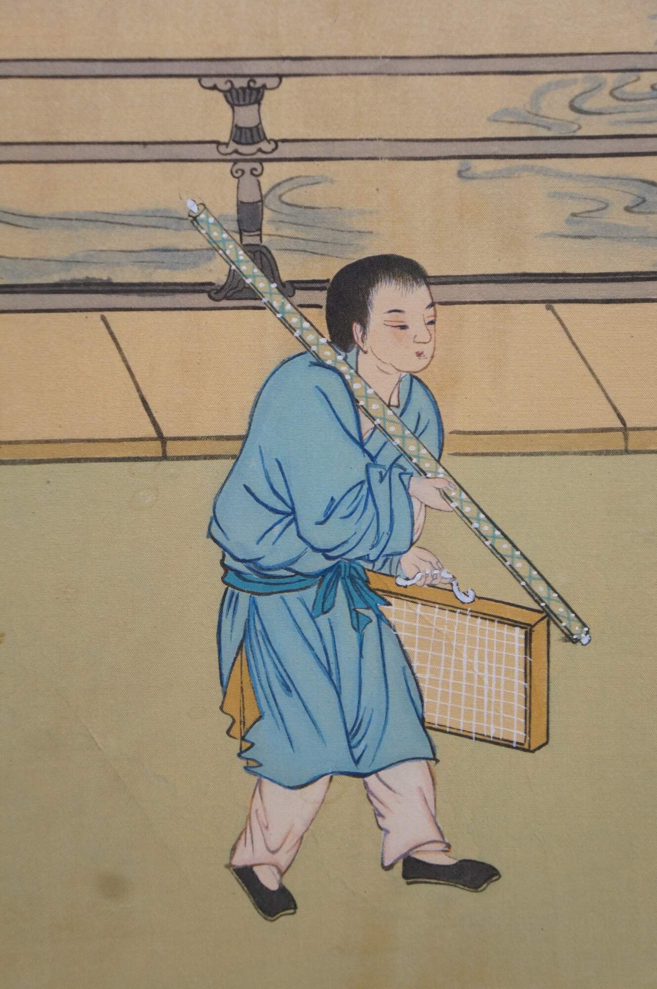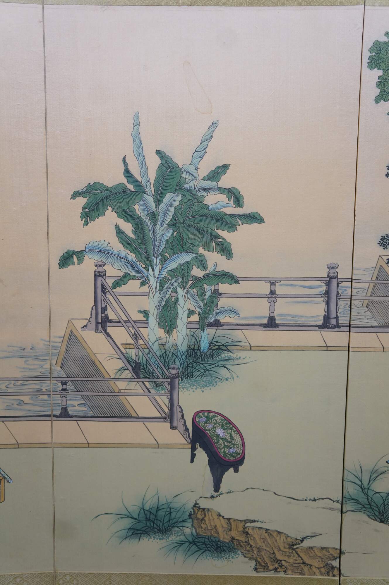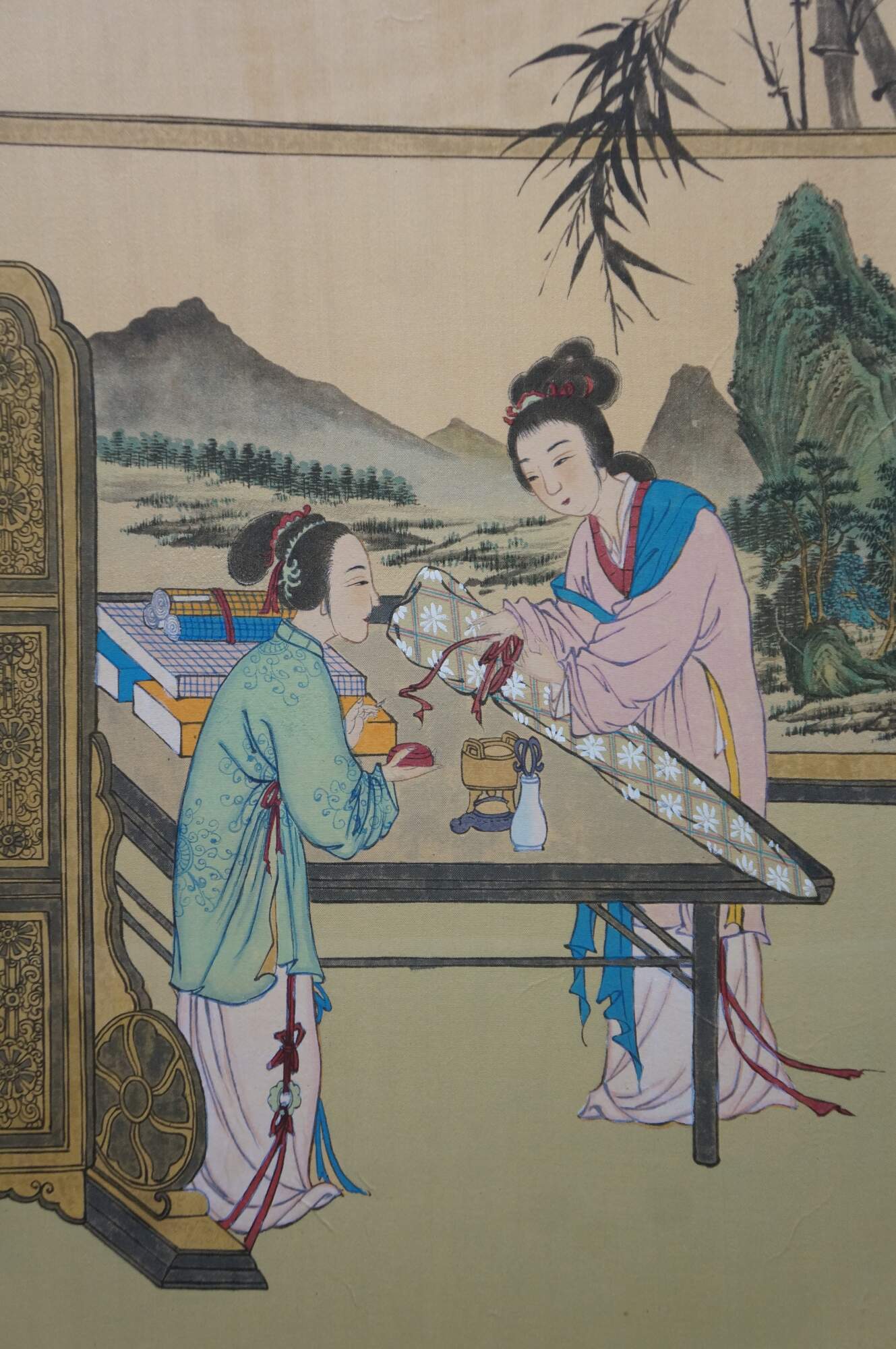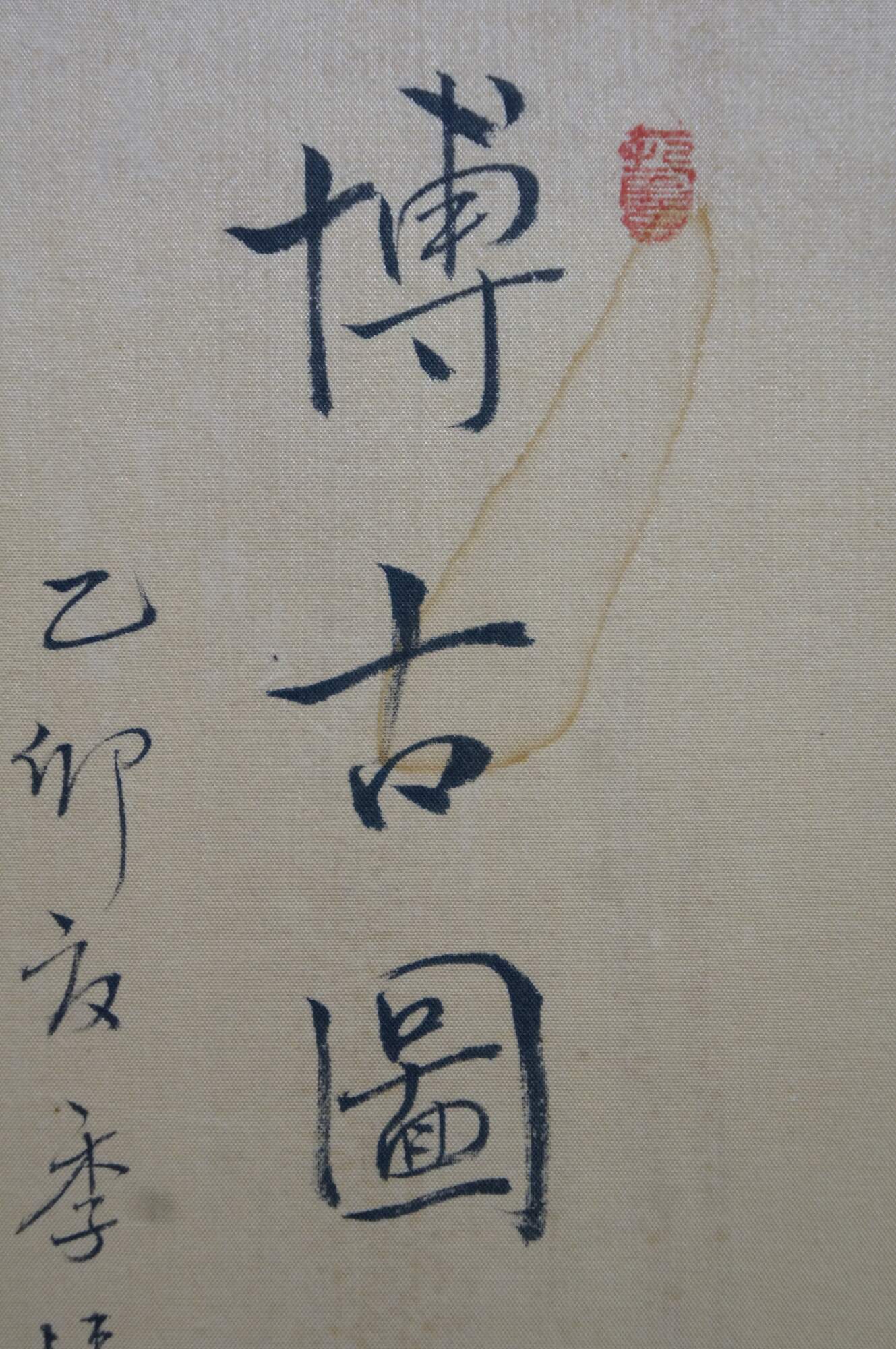 Chinese Hand Painted Silk 4 Panel Folding Screen Scholars Landscape Bógǔ tú 59"