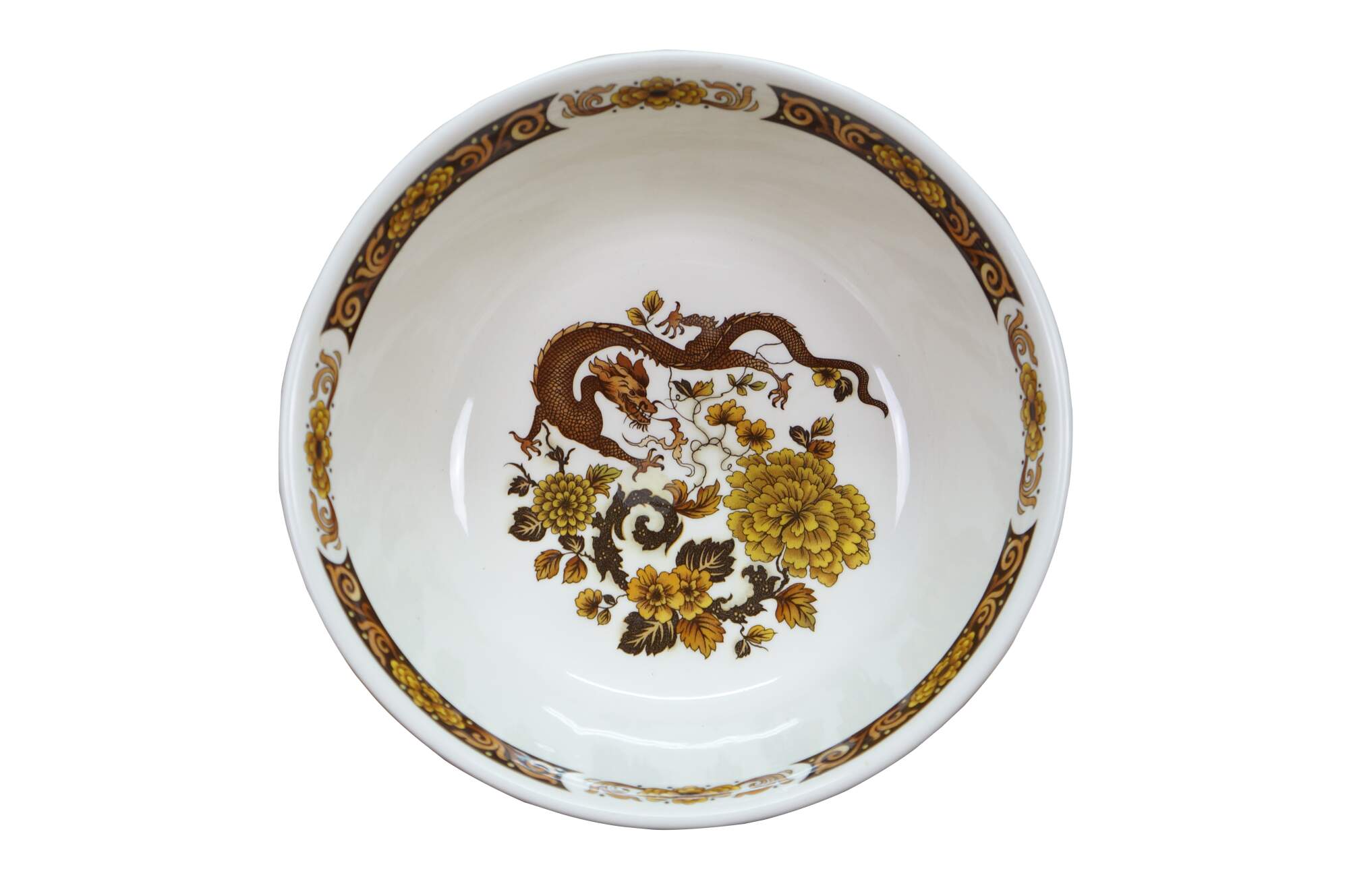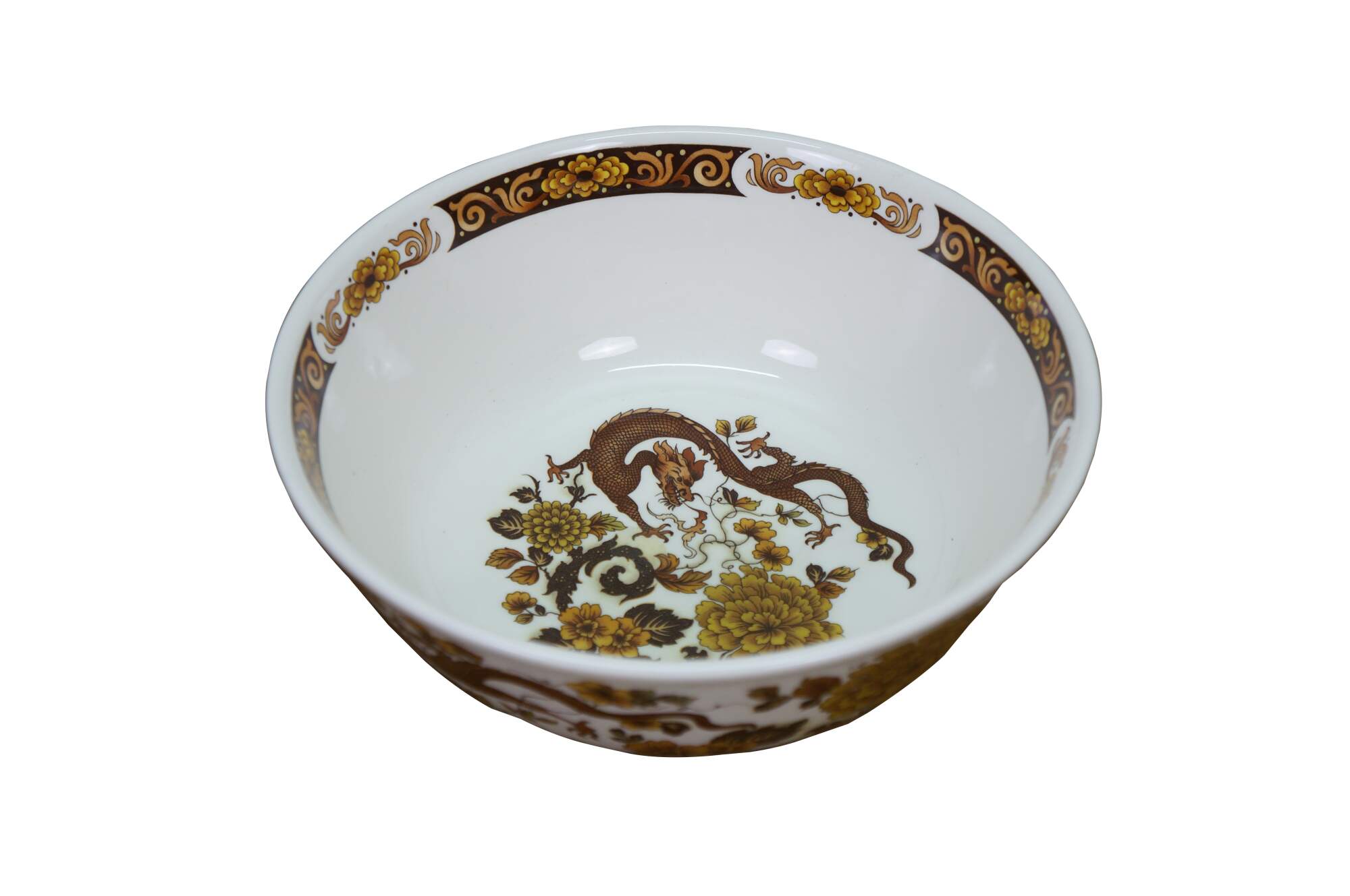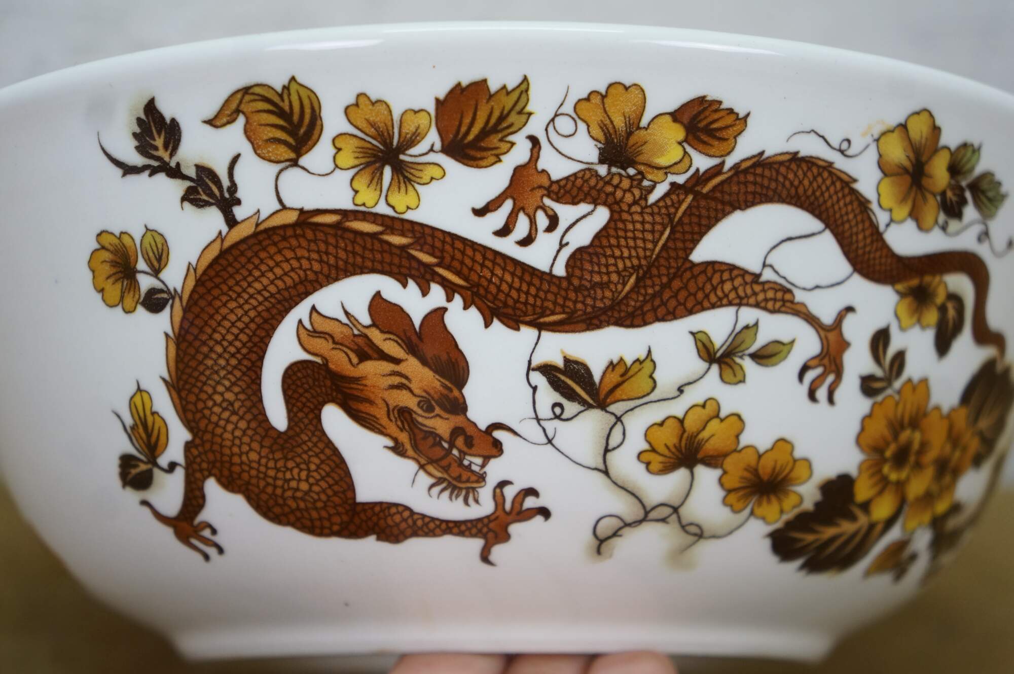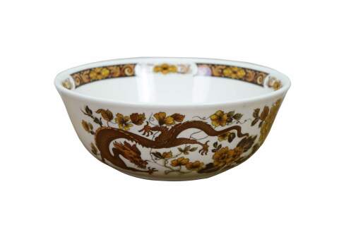 Vintage Franciscan Dynasty Collection Dragon of Kowloon Porcelain Bowl. Features a dragon design with leaves.