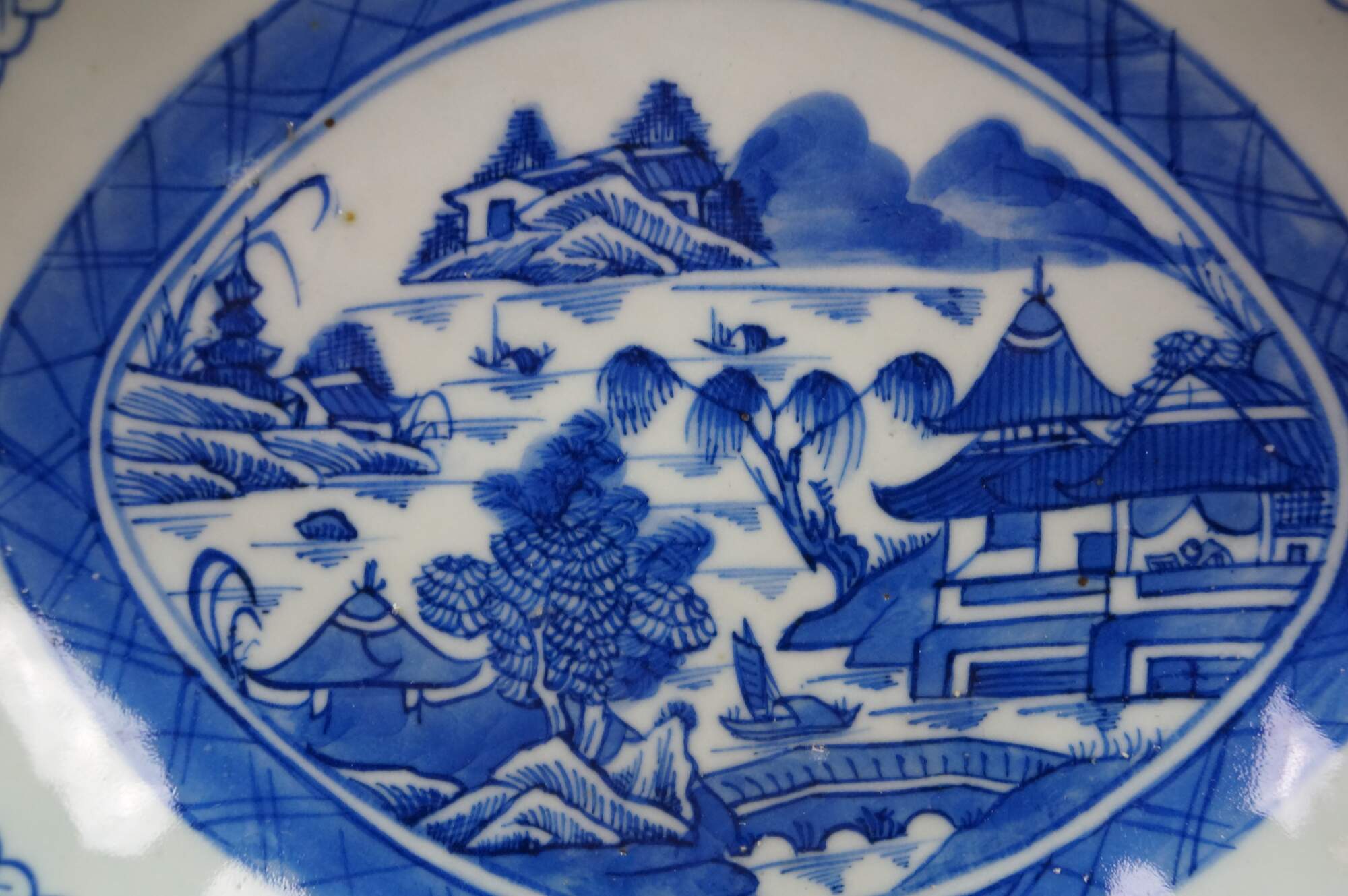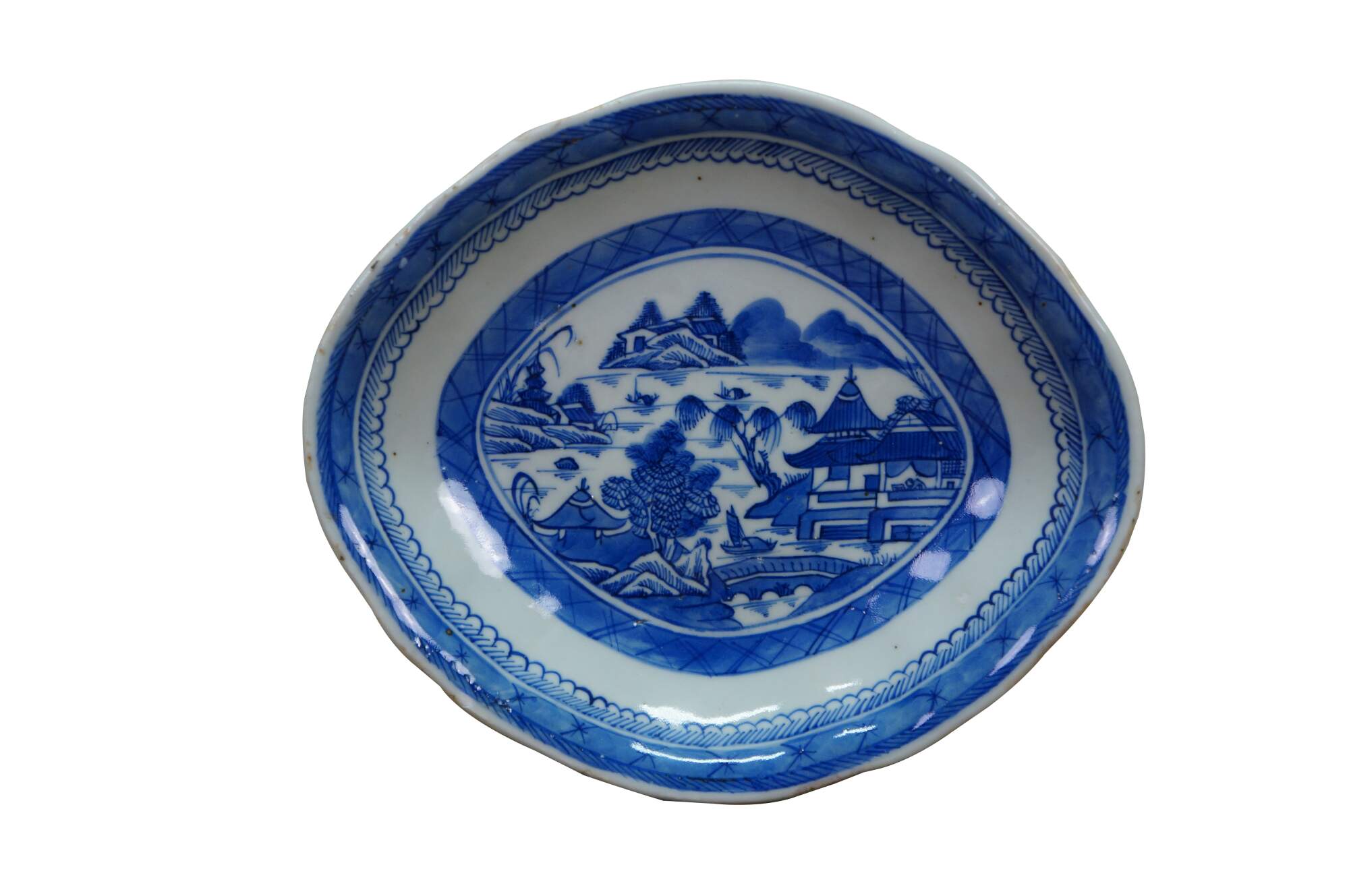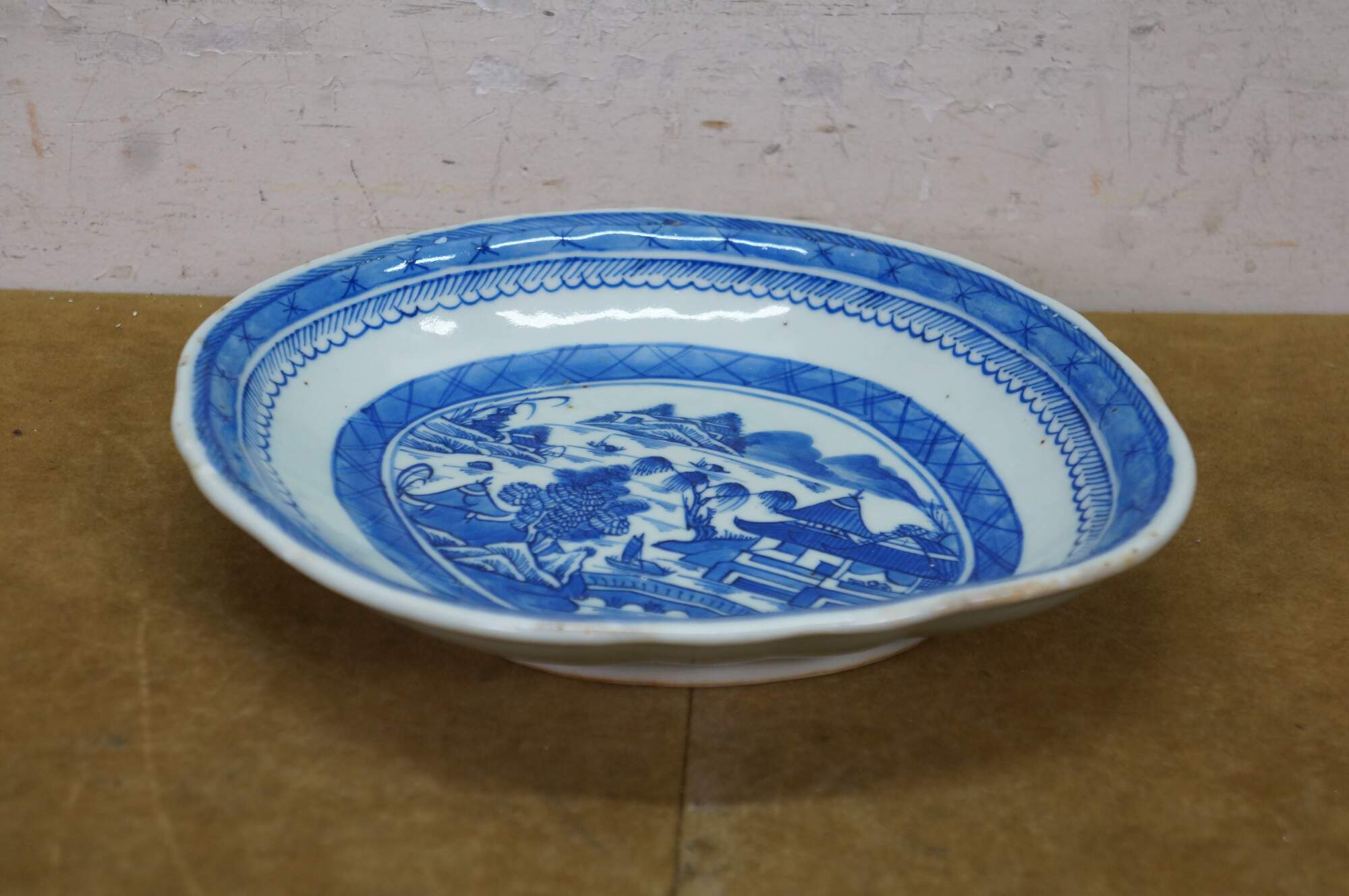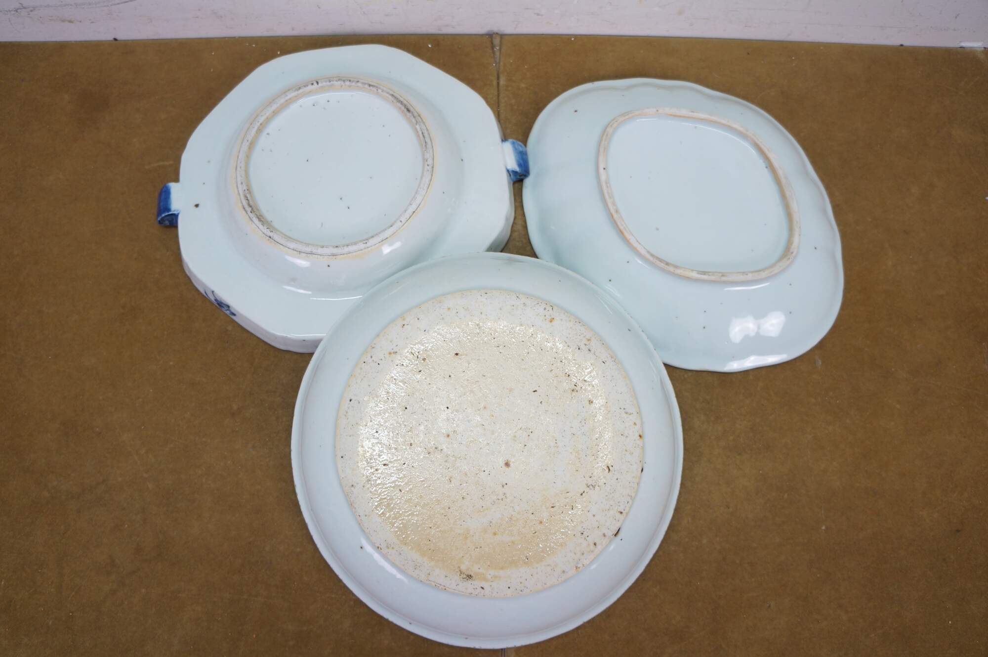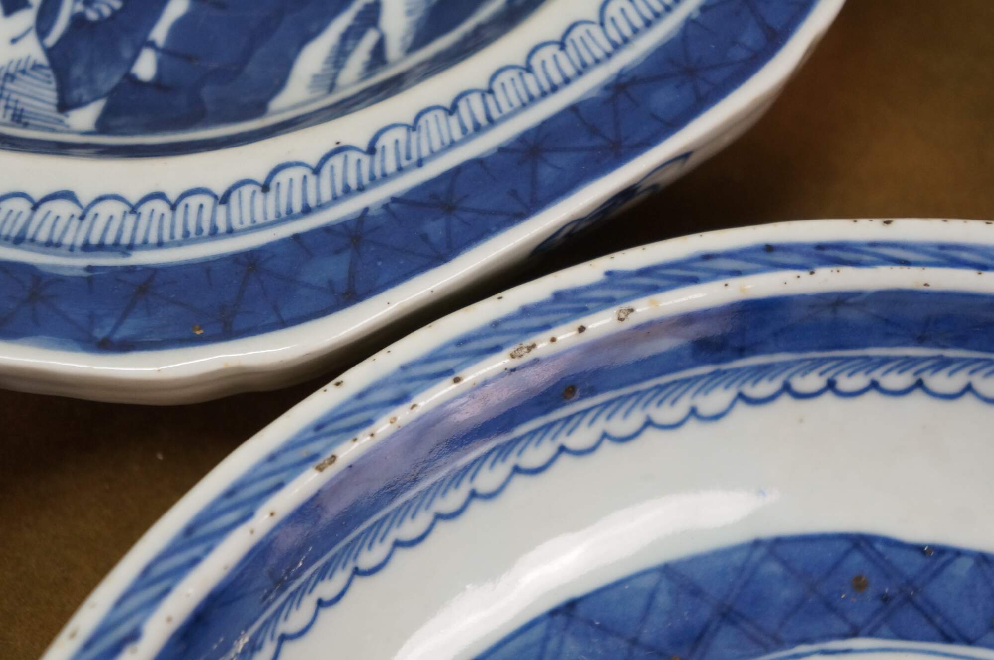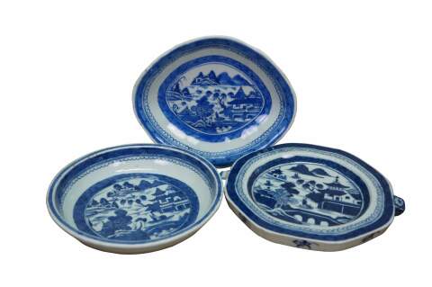 3 Antique Chinese Export Canton Blue & White Porcelain Serving Dishes Platter