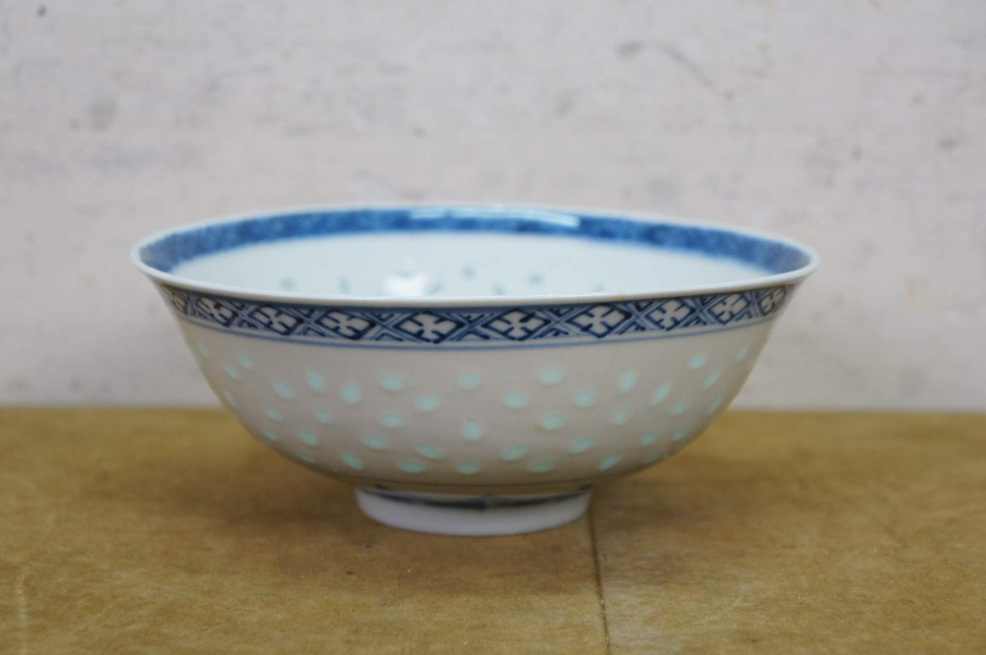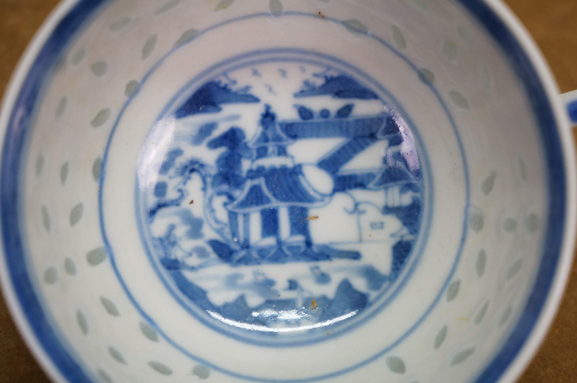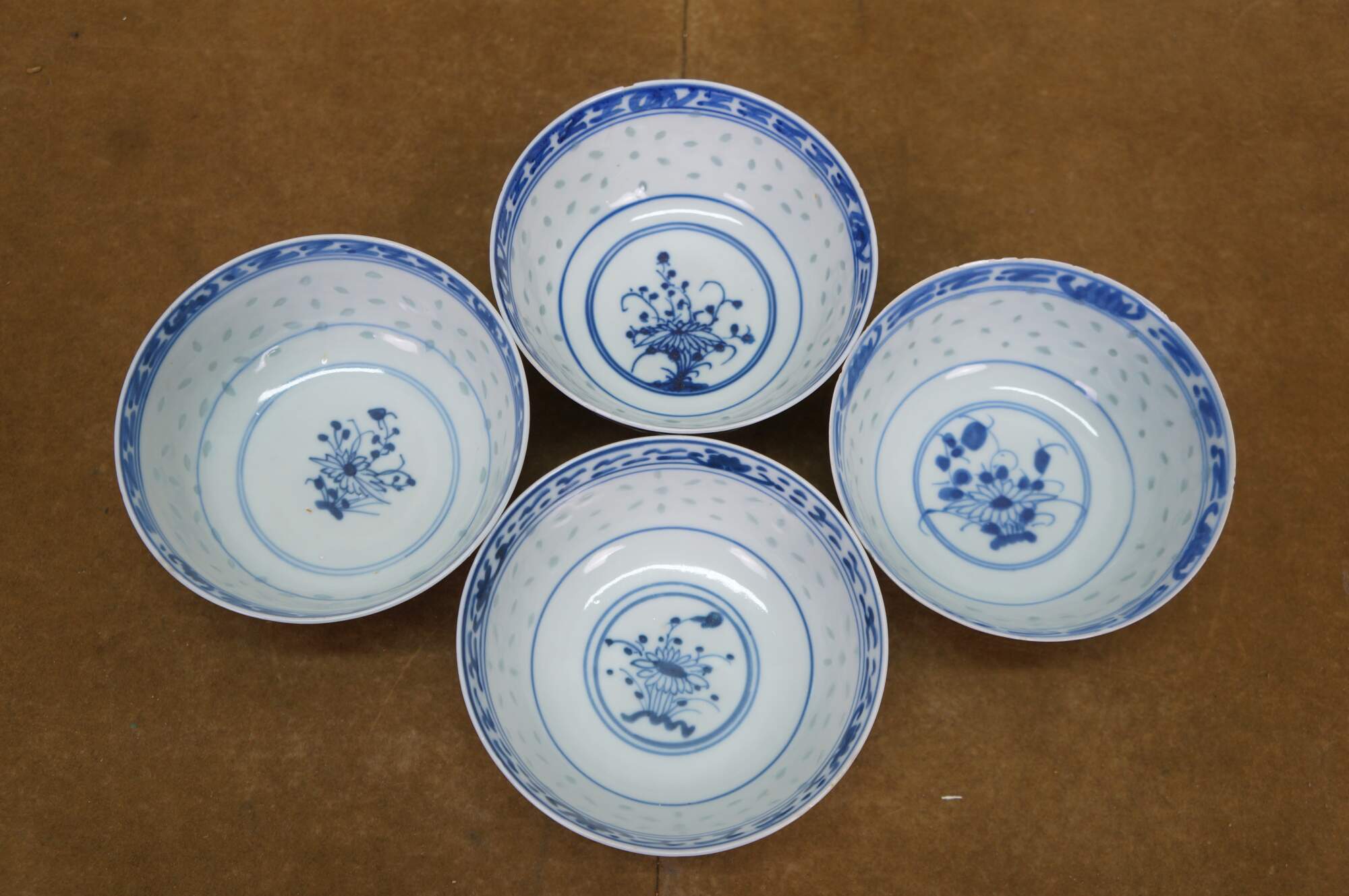 10 Pc Vintage Chinese Rice Eye Grain Translucent Blue Porcelain Dinnerware
