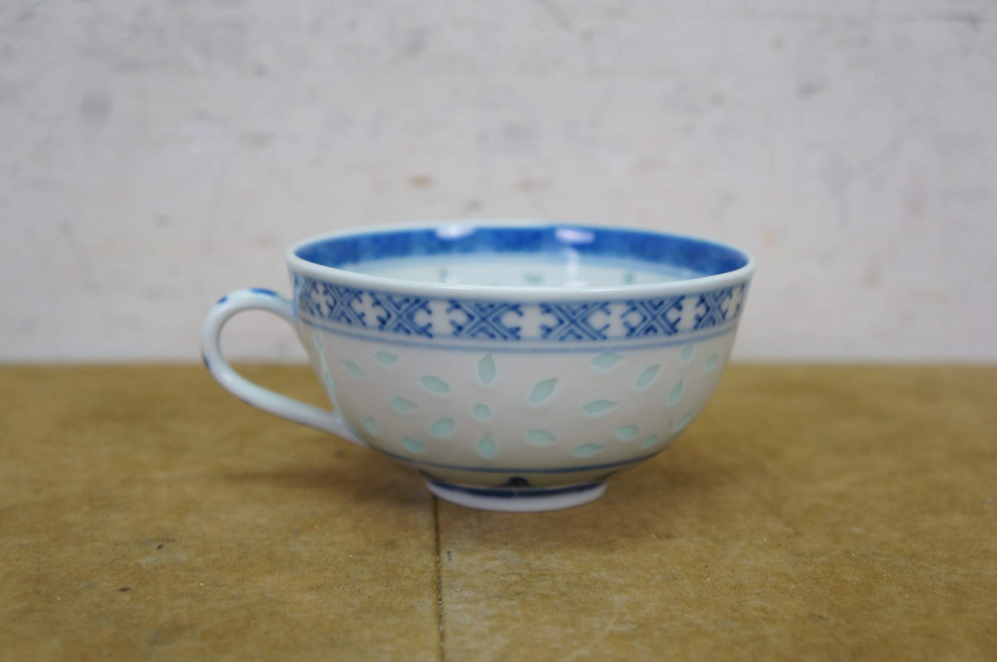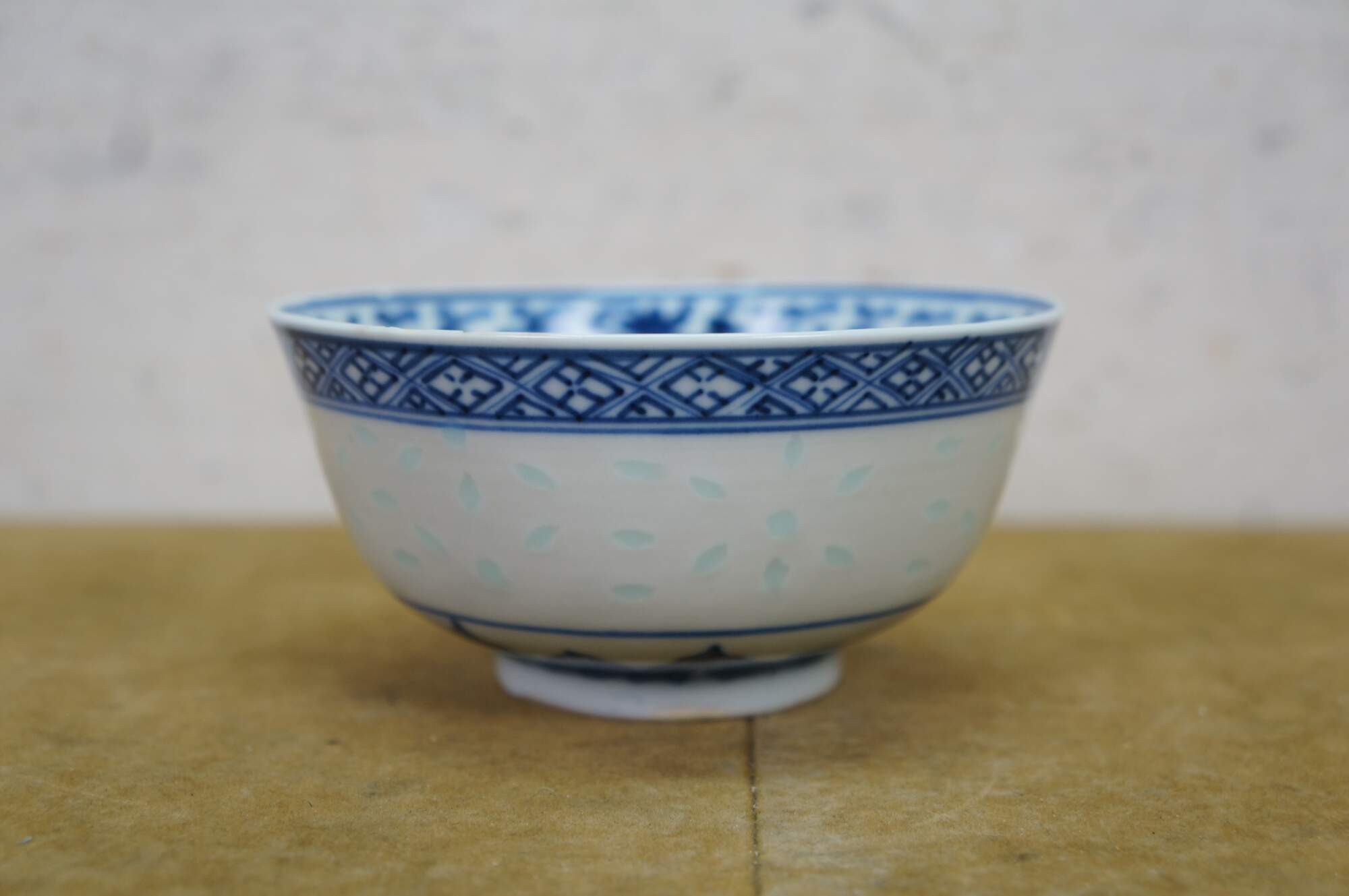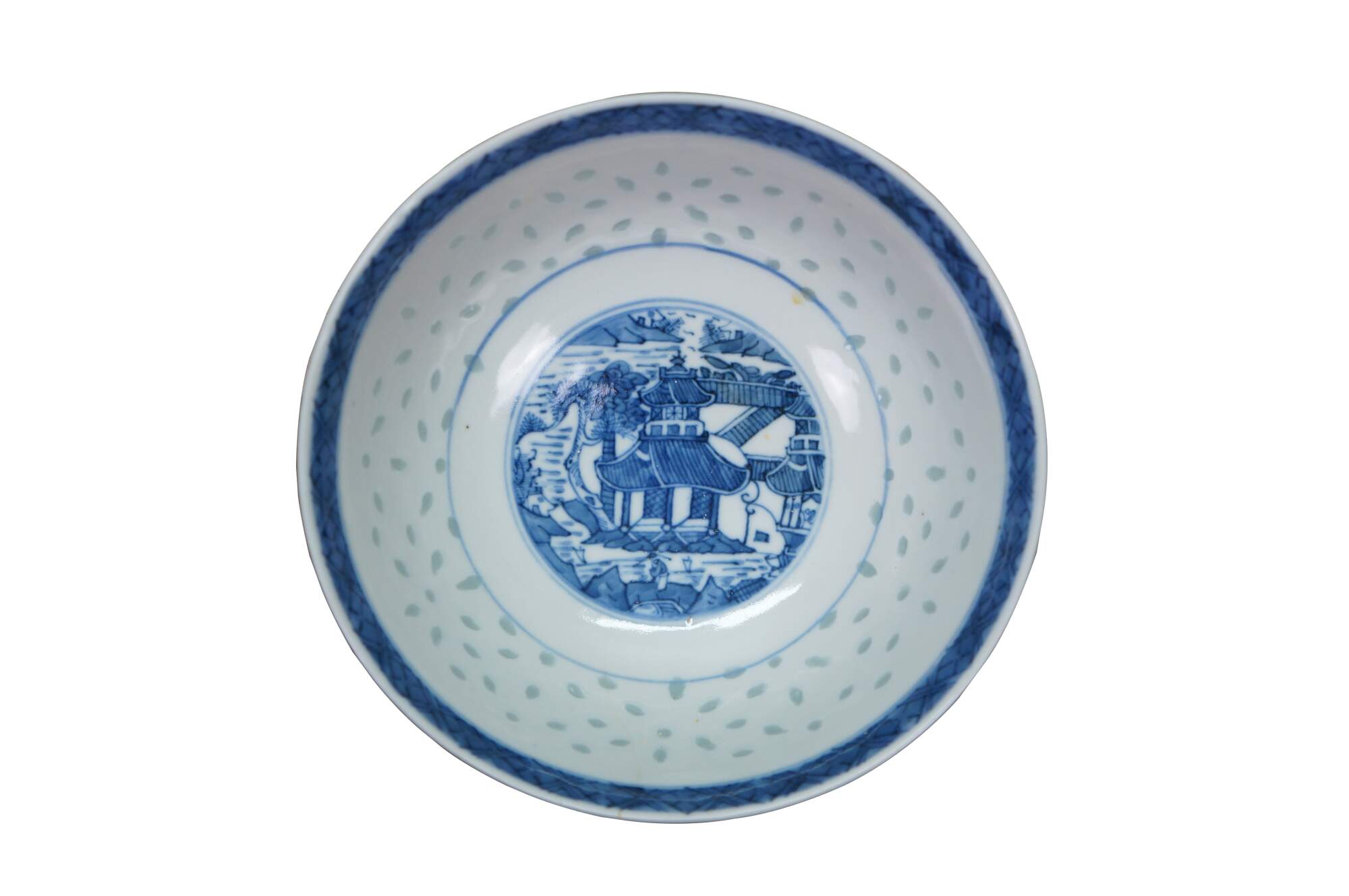 10 Pc Vintage Chinese Rice Eye Grain Translucent Blue Porcelain Dinnerware