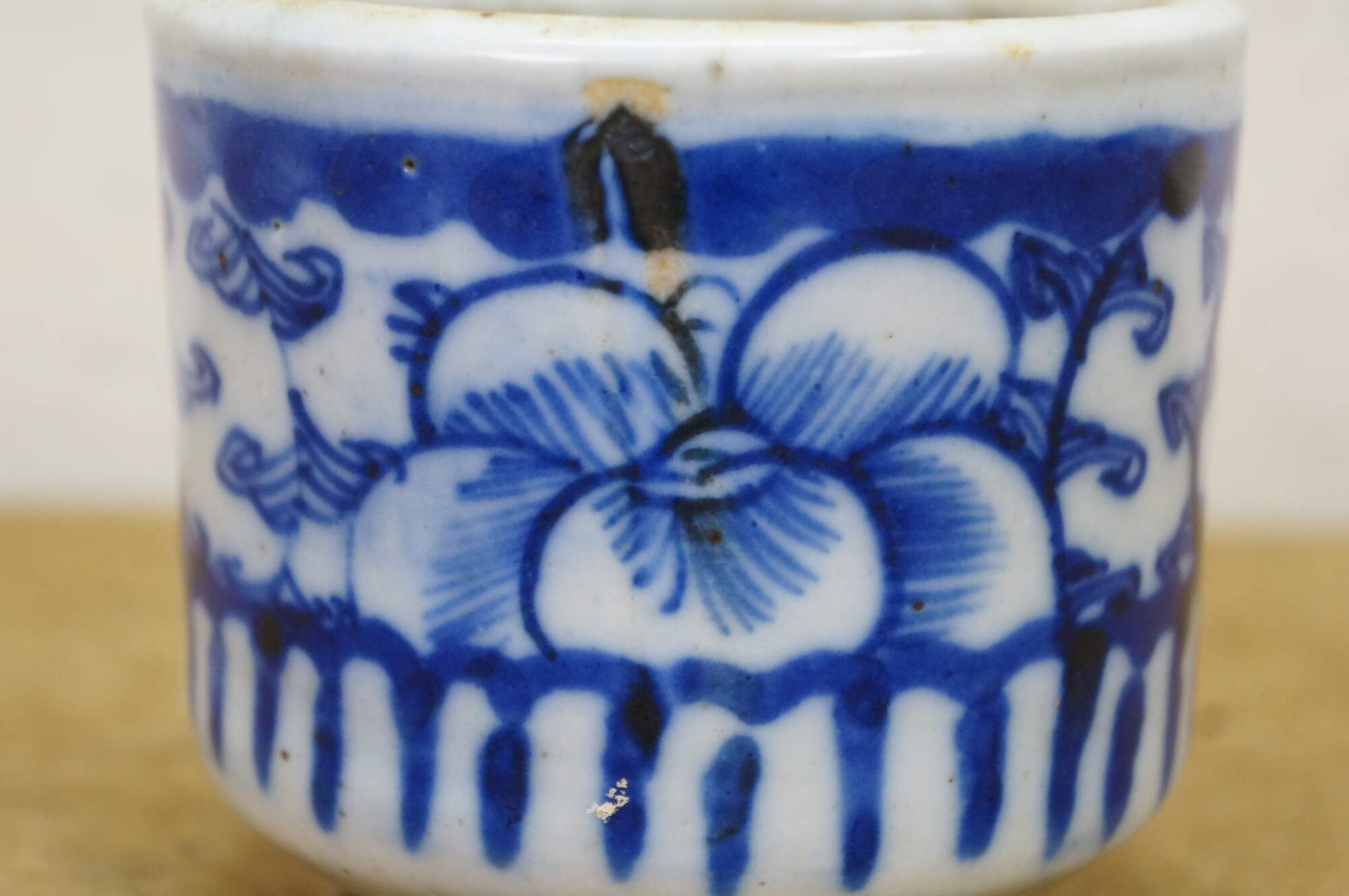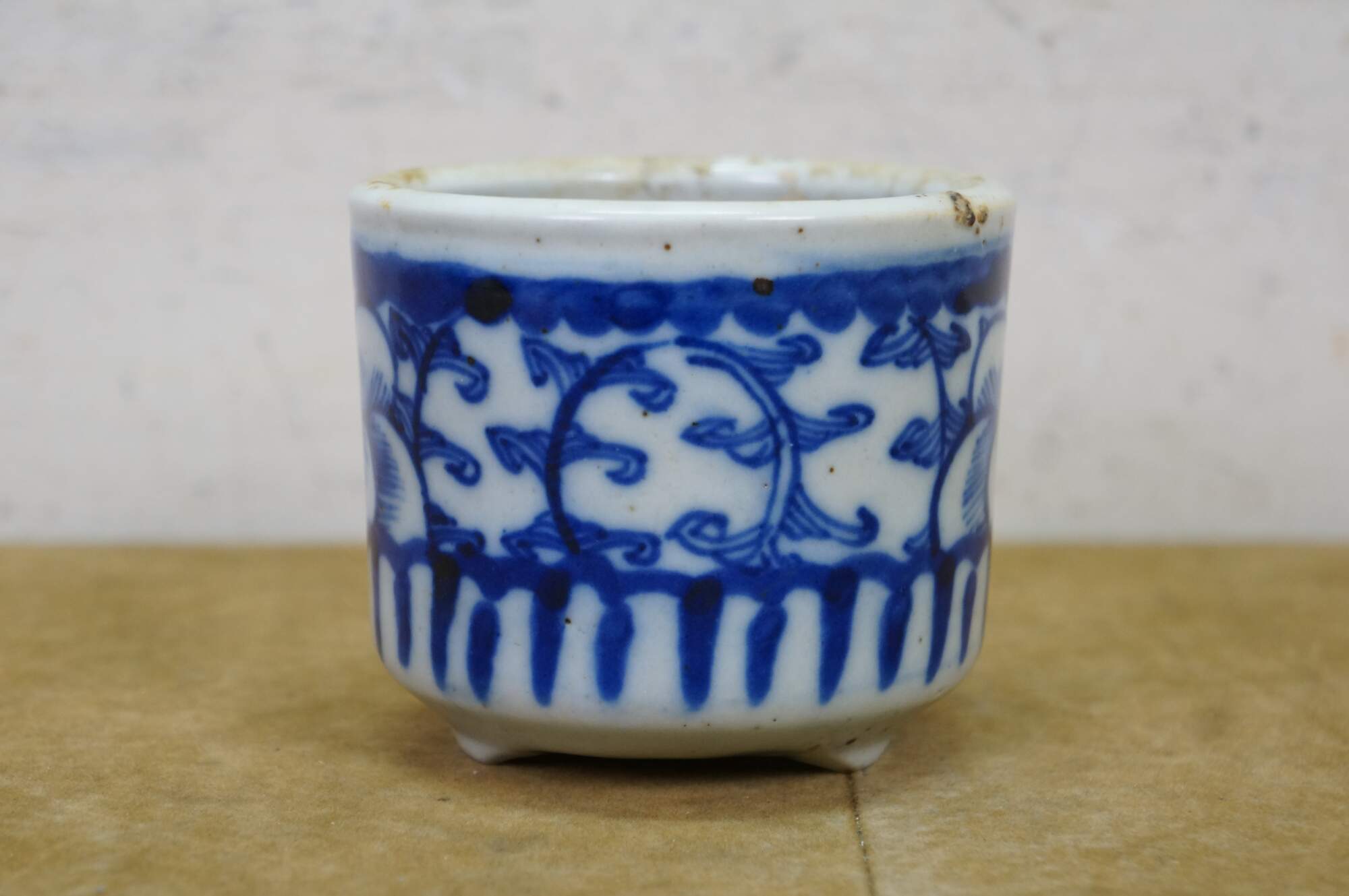 19th-century Chinese blue and white porcelain brush pot,. These were often used as a small planter or cachepot.