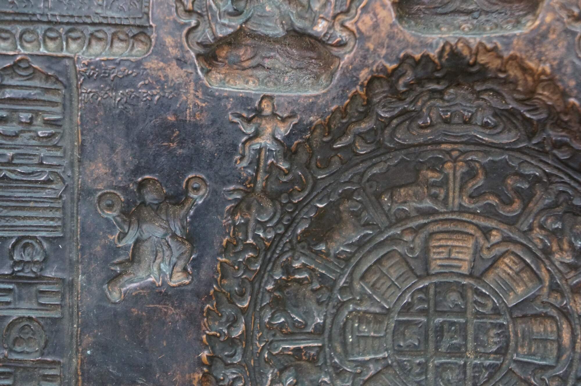 Rare Antique Tibetan Copper Repousse Astrological Calendar Mandala Buddha Spirit