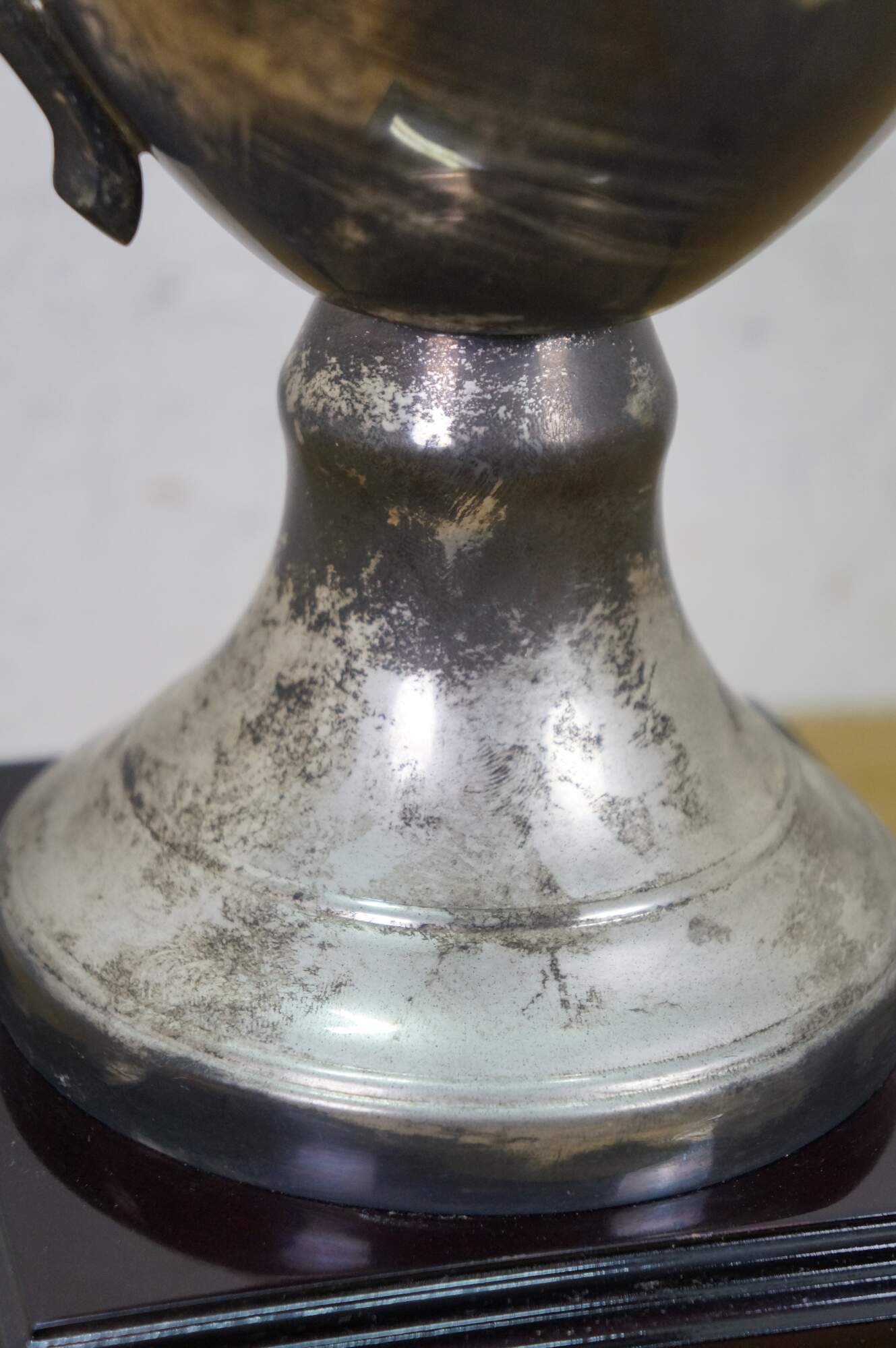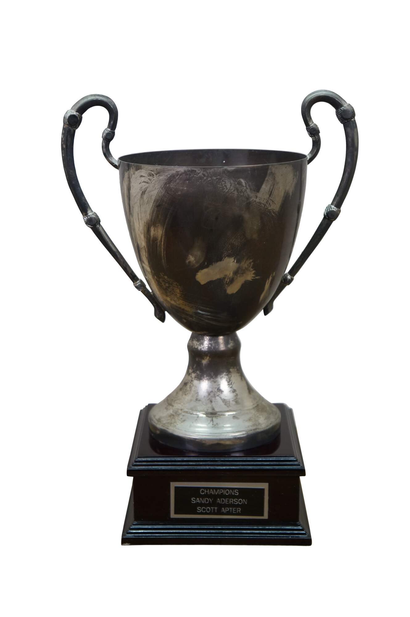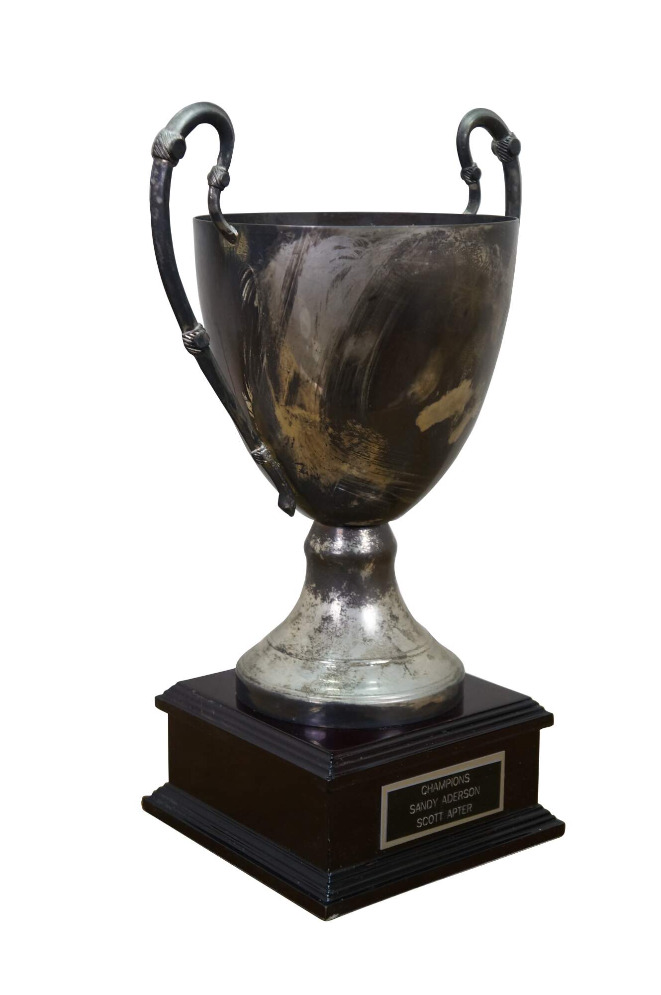 Vintage silver plated award trophy cup from winner of a golf tournament. Winners Sandy Aderson and Scott Apter.