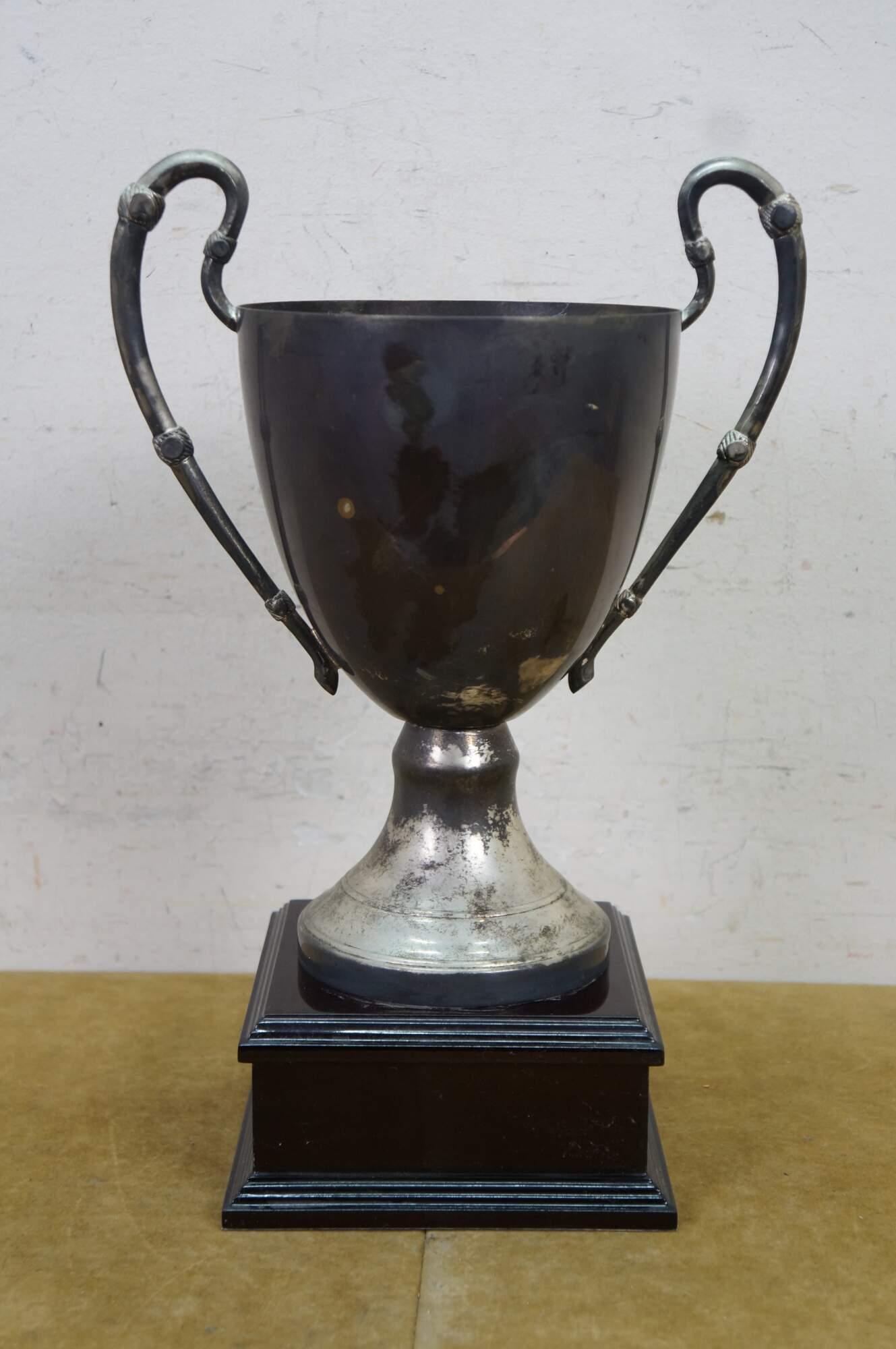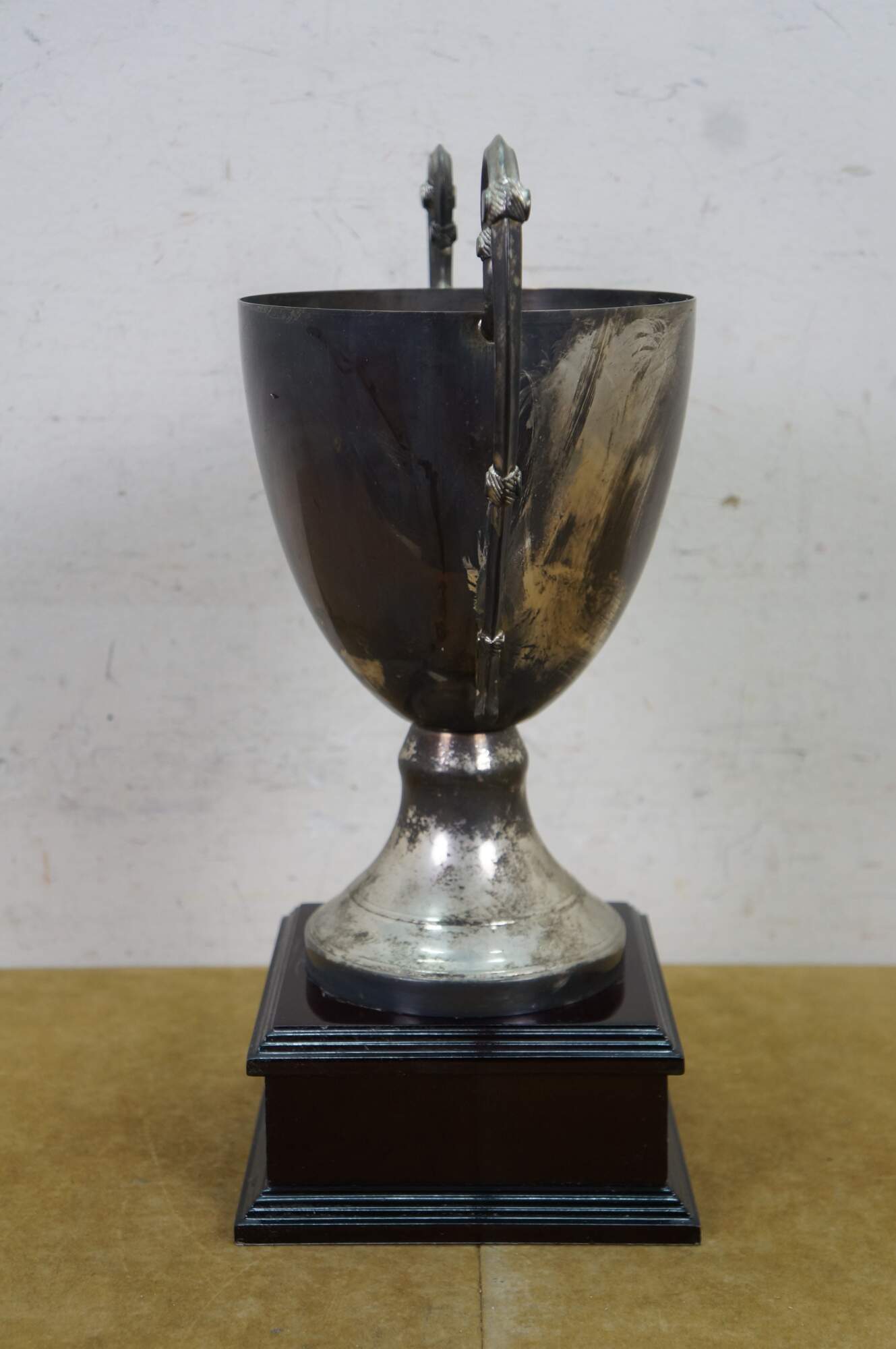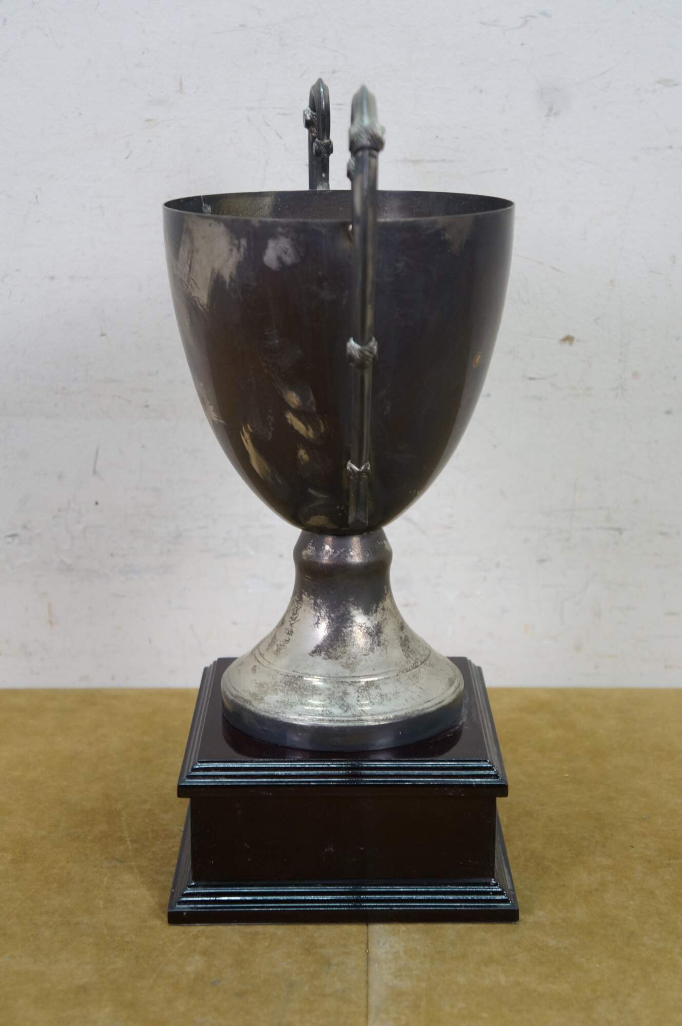 Vintage silver plated award trophy cup from winner of a golf tournament. Winners Sandy Aderson and Scott Apter.