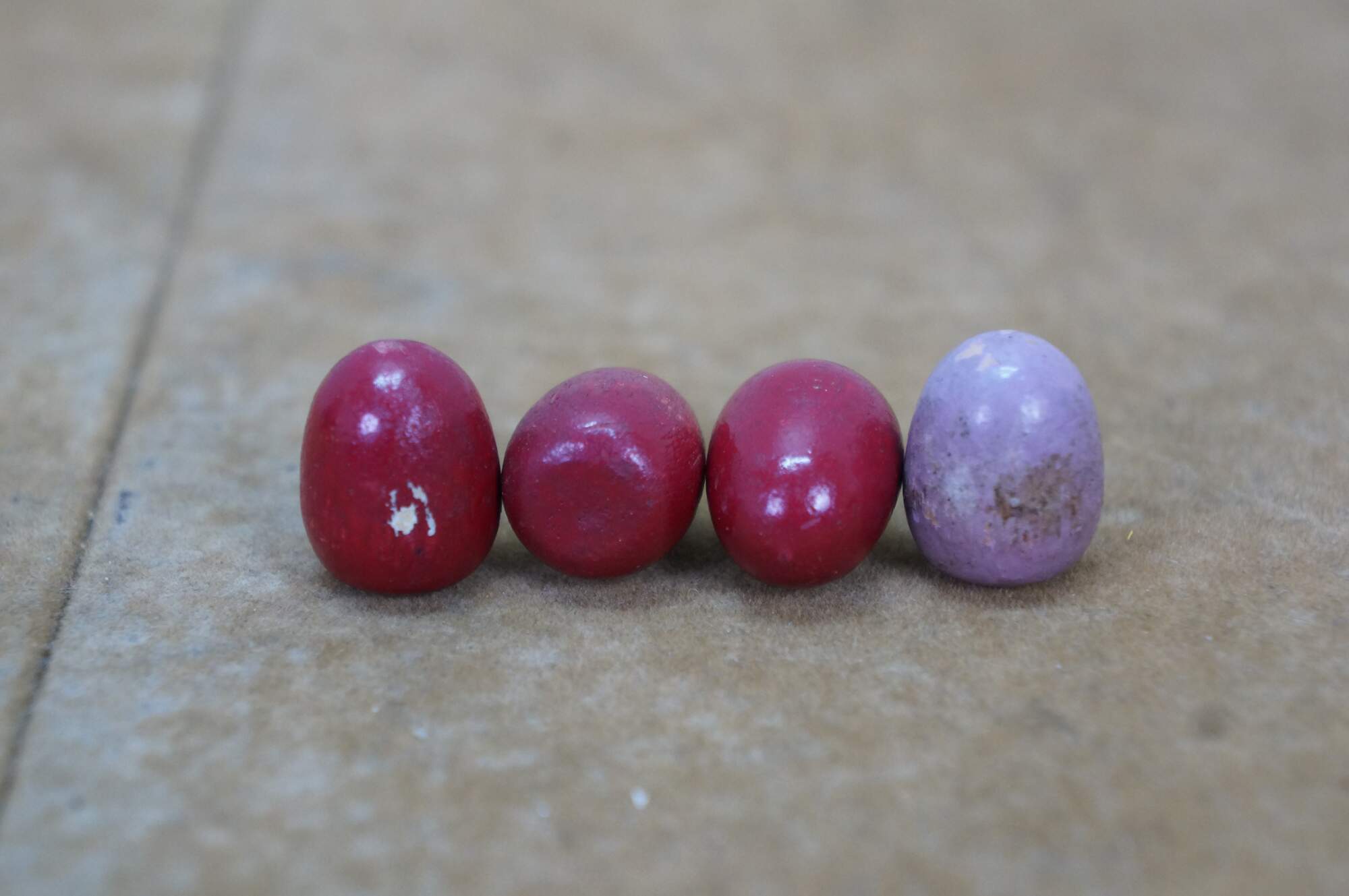 The toy is designed to make a clucking sound and simulate laying eggs when a hand crank is turned. Small eggs are inserted into a hole in the top and dispensed from a side hole, see video.