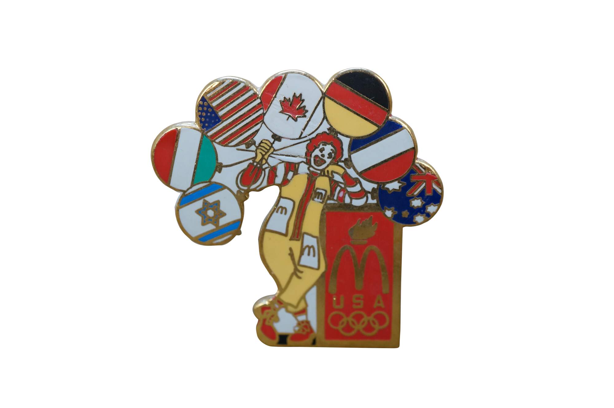 1996 Ronald McDonald Atlanta Olympics Balloon Flags Brooch Pin Badge