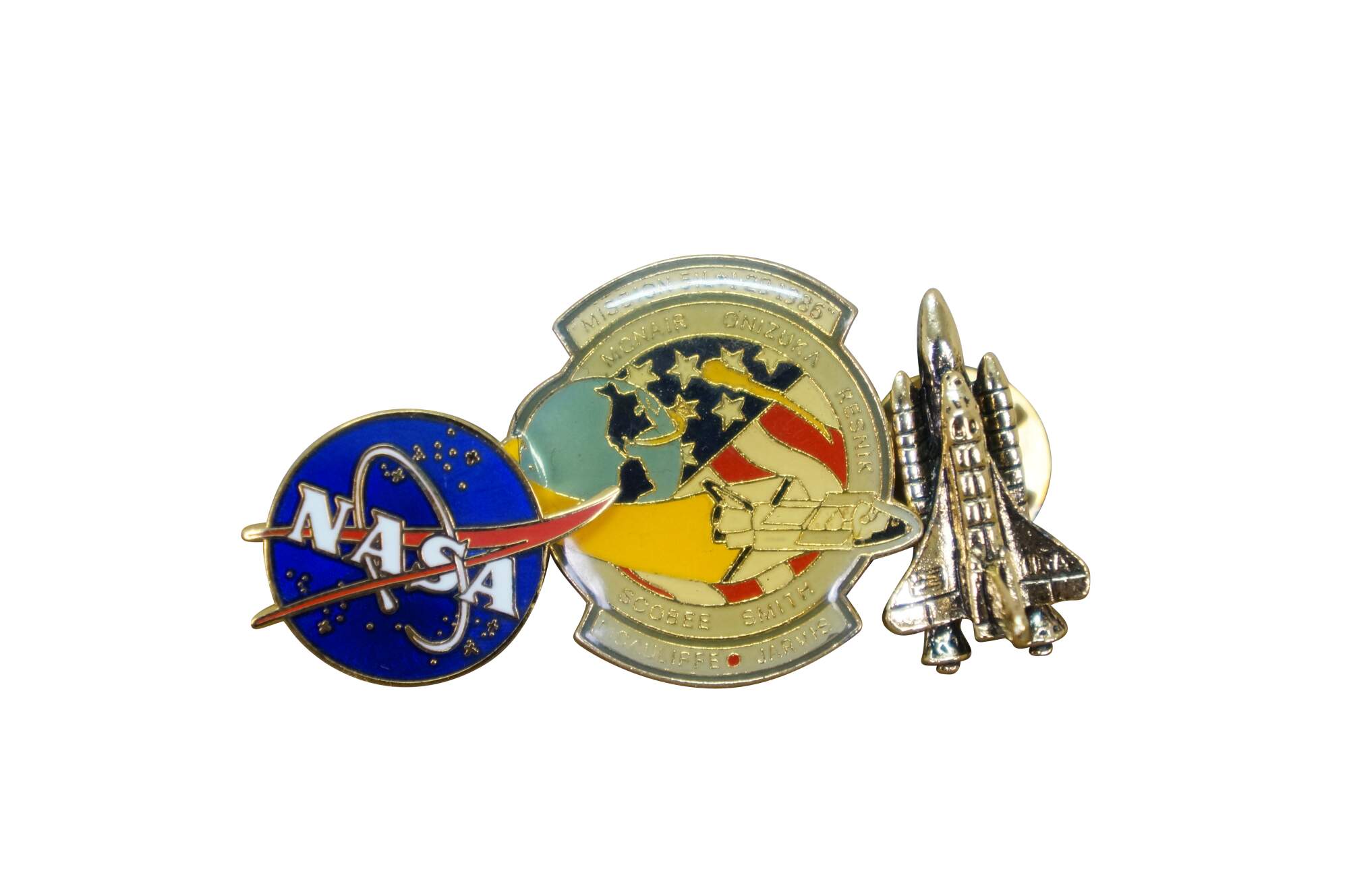 3 Vintage NASA Space Shuttle Program Lapel Brooch Pins Badges