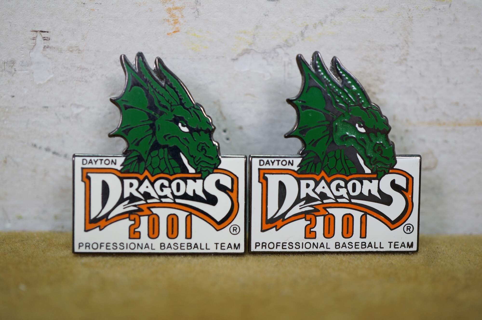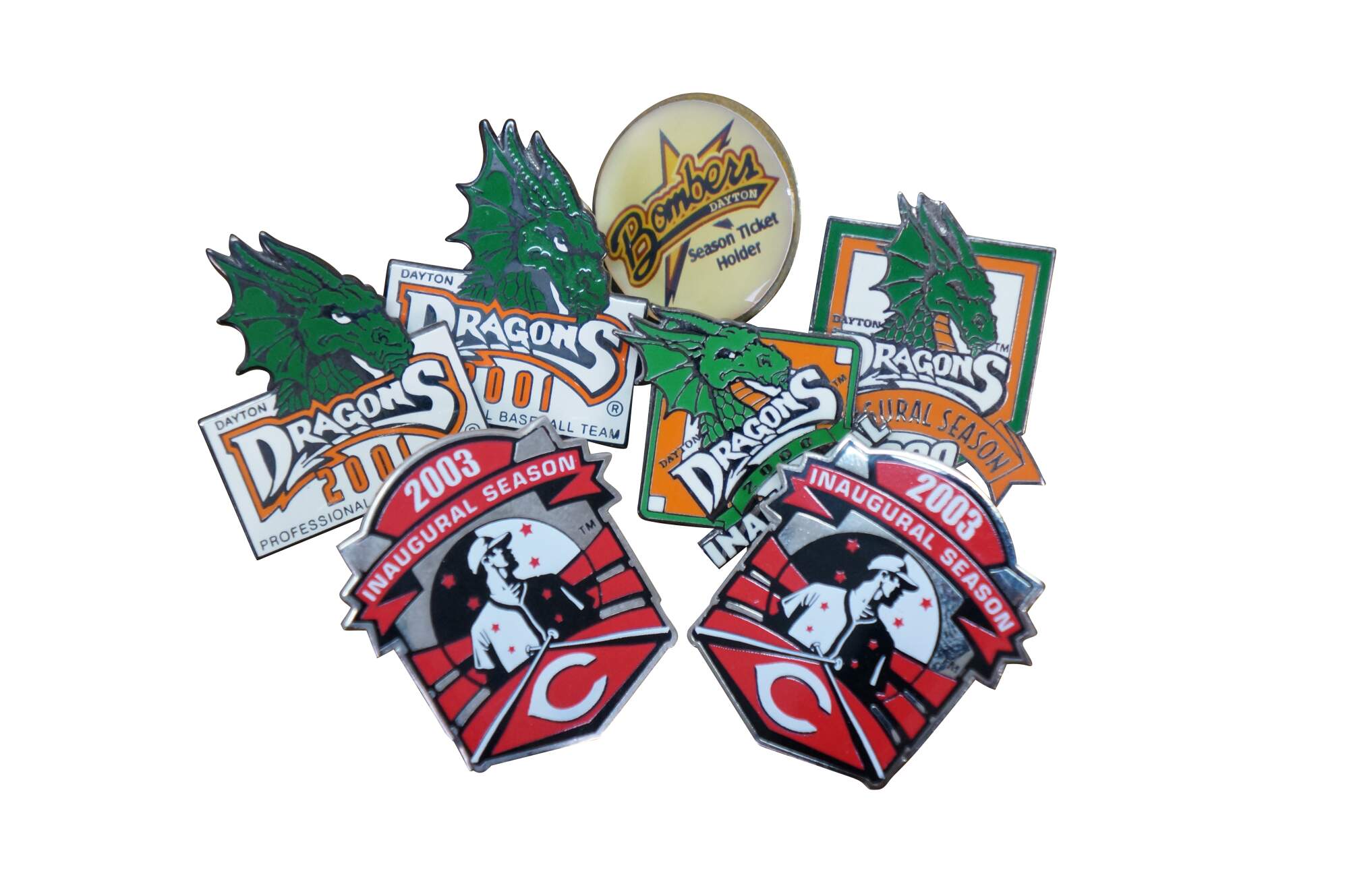 Vintage lot of seven Dayton Dragons, Bombers and Cincinnati Reds brooch pins / badges.