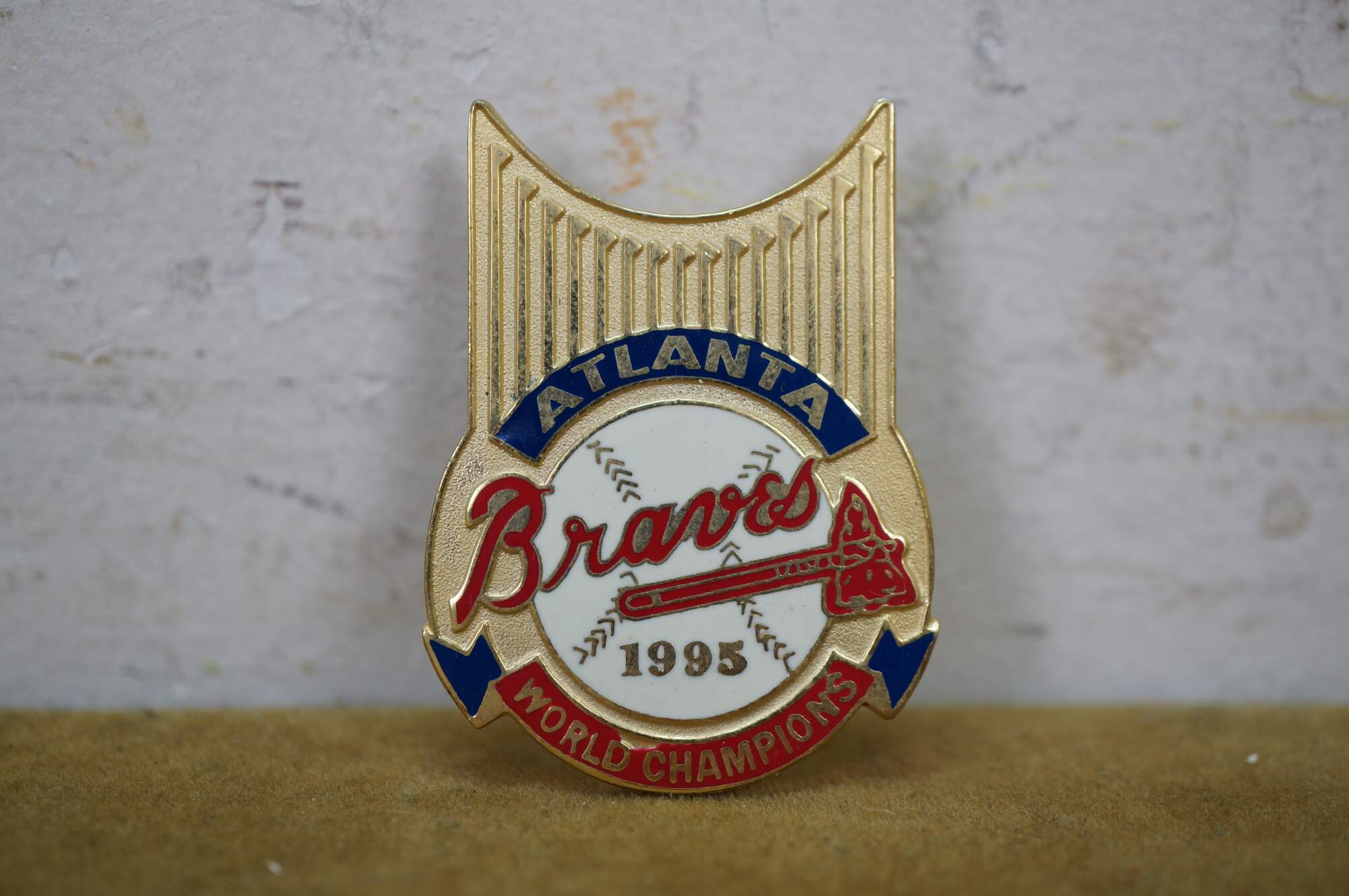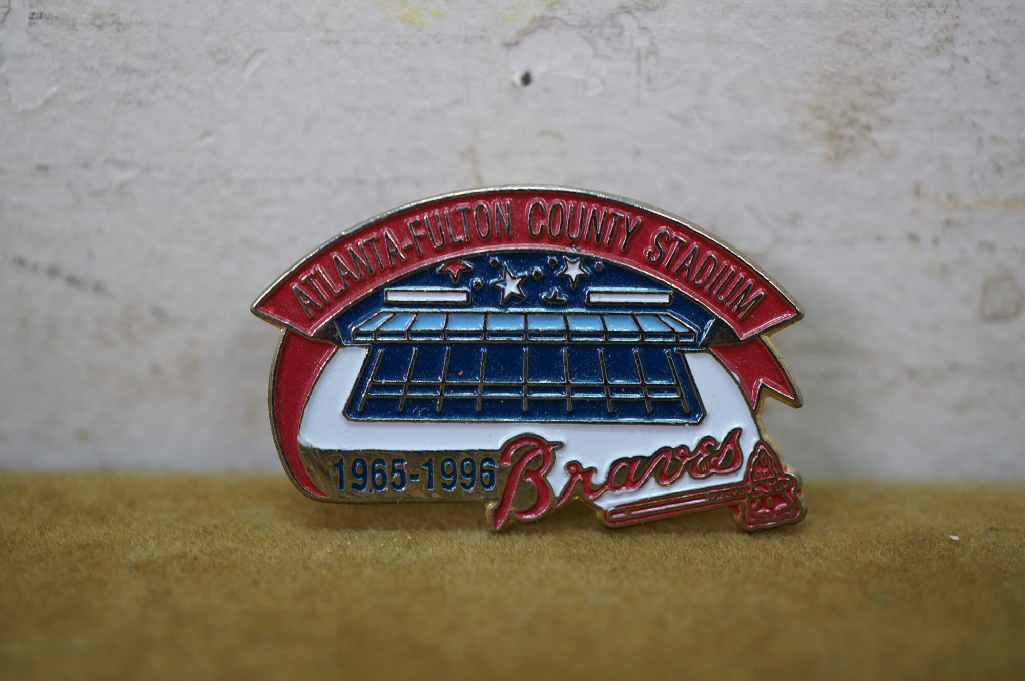 Six vintage Atlanta Braves MLB Baseball brooch pins / badges.