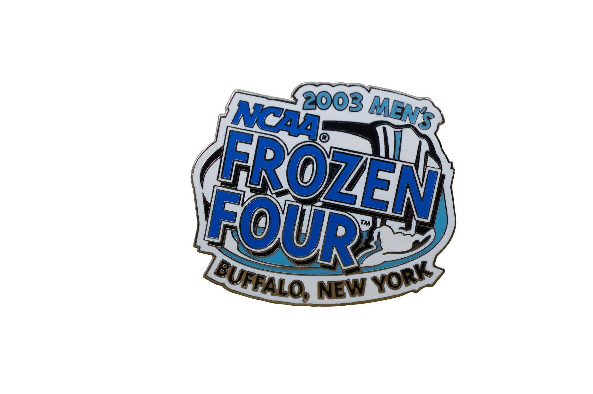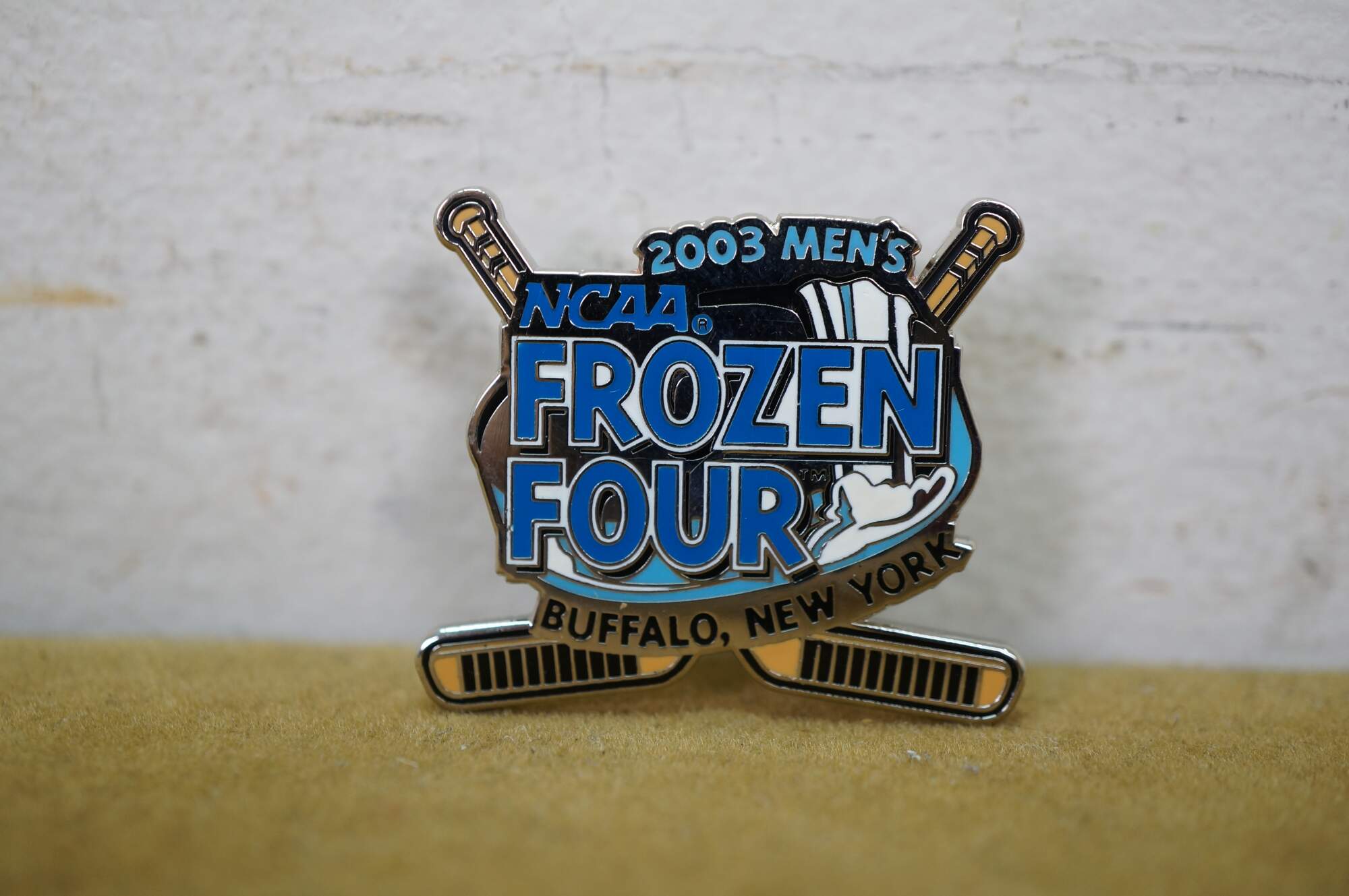 Five vintage enameled Frozen Four NCAA College Hockey brooch pins / badges.