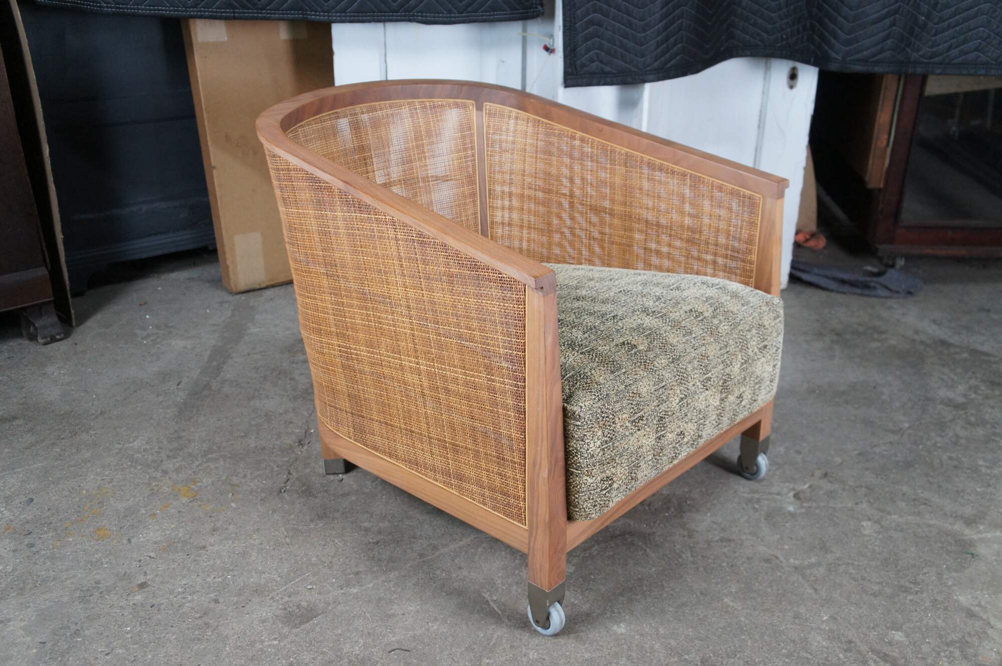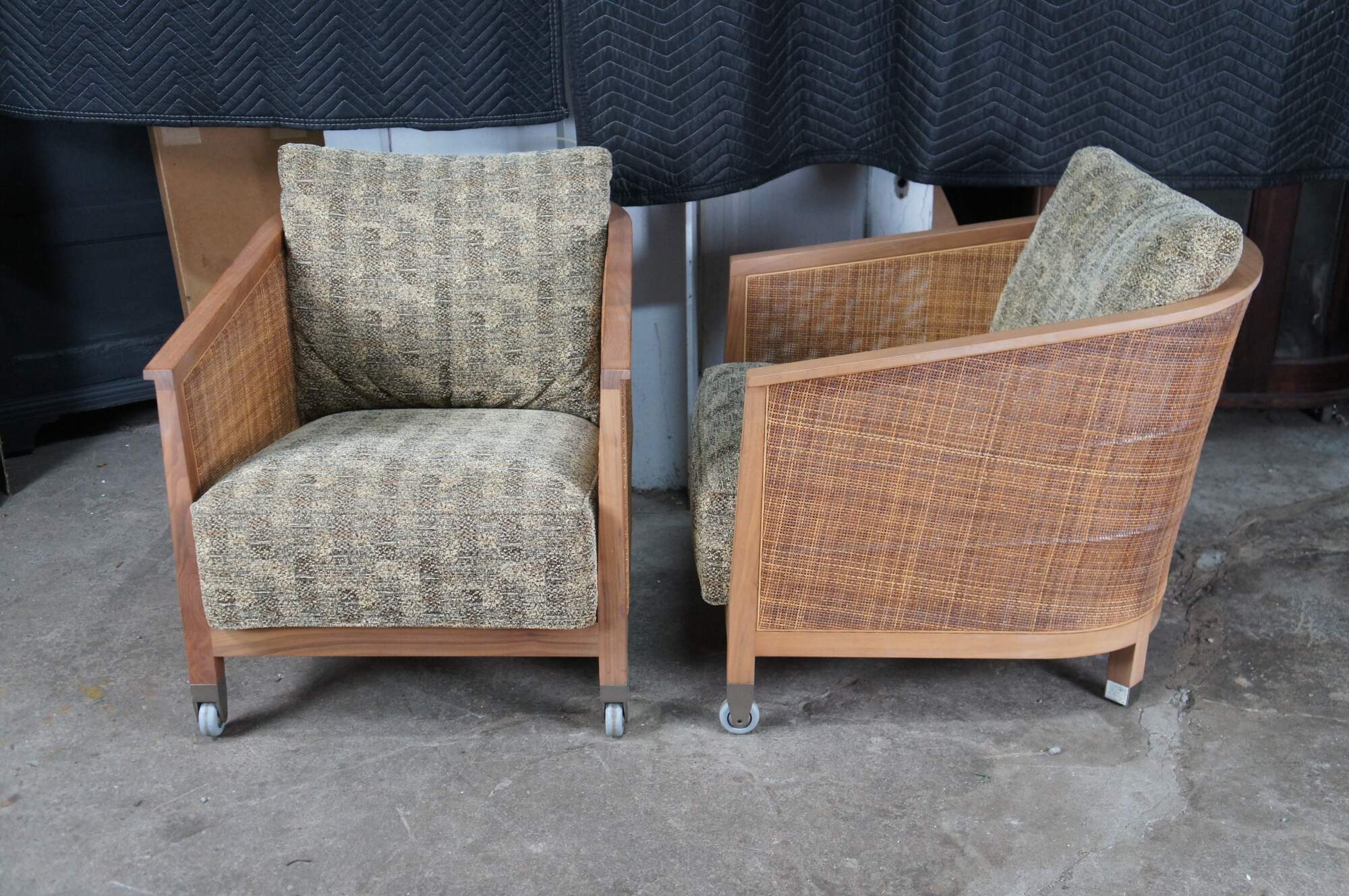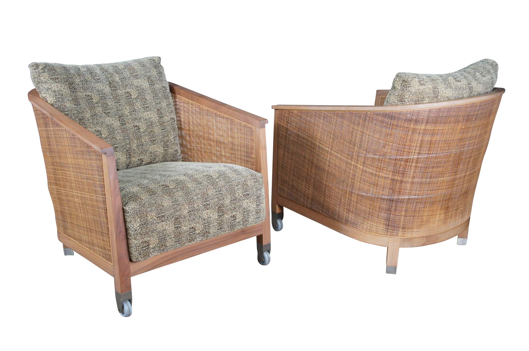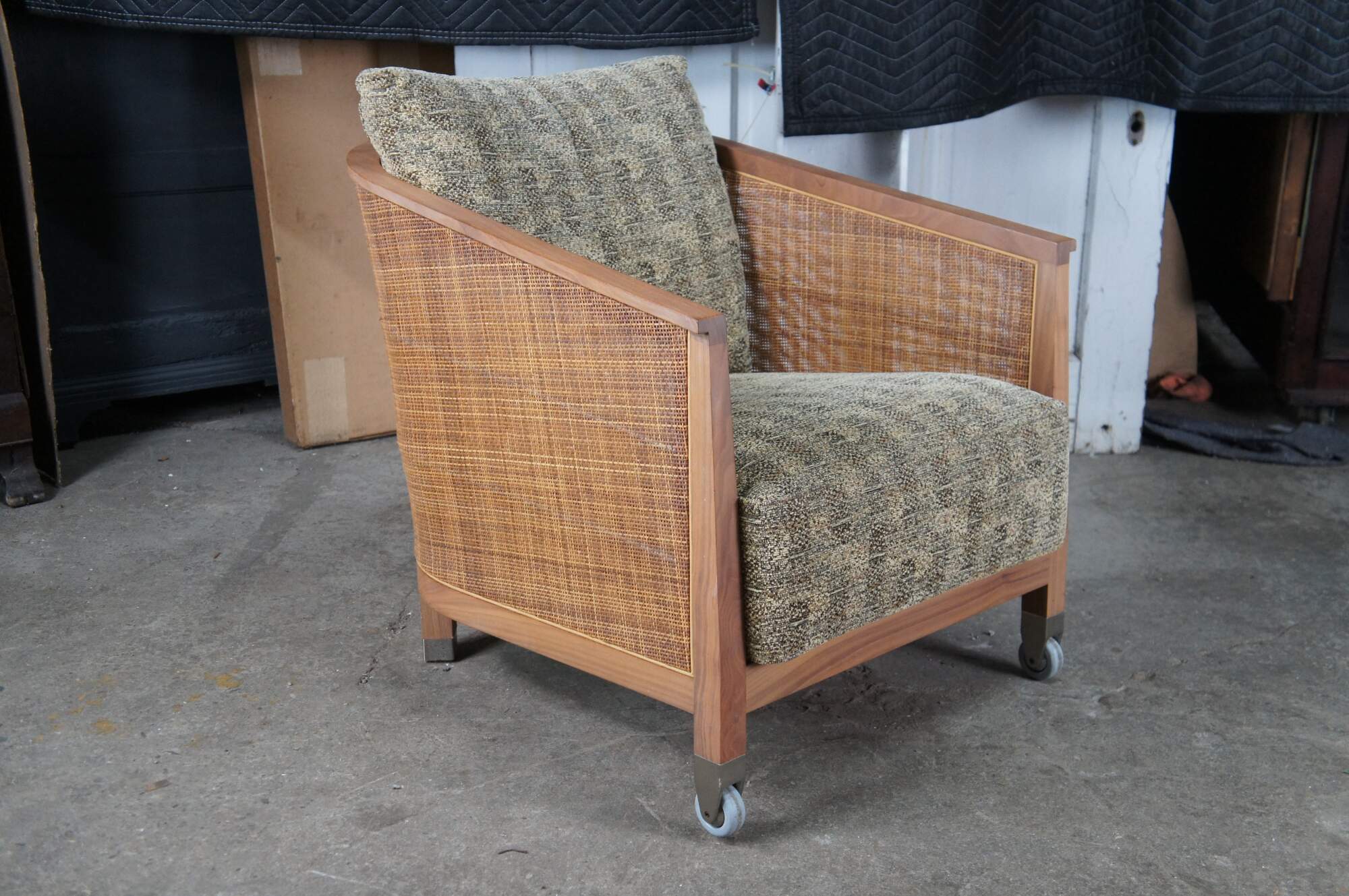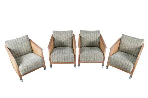 4 Mid Century Modern Antonio Citterio Flexform Mozart Walnut Rattan Arm Chairs