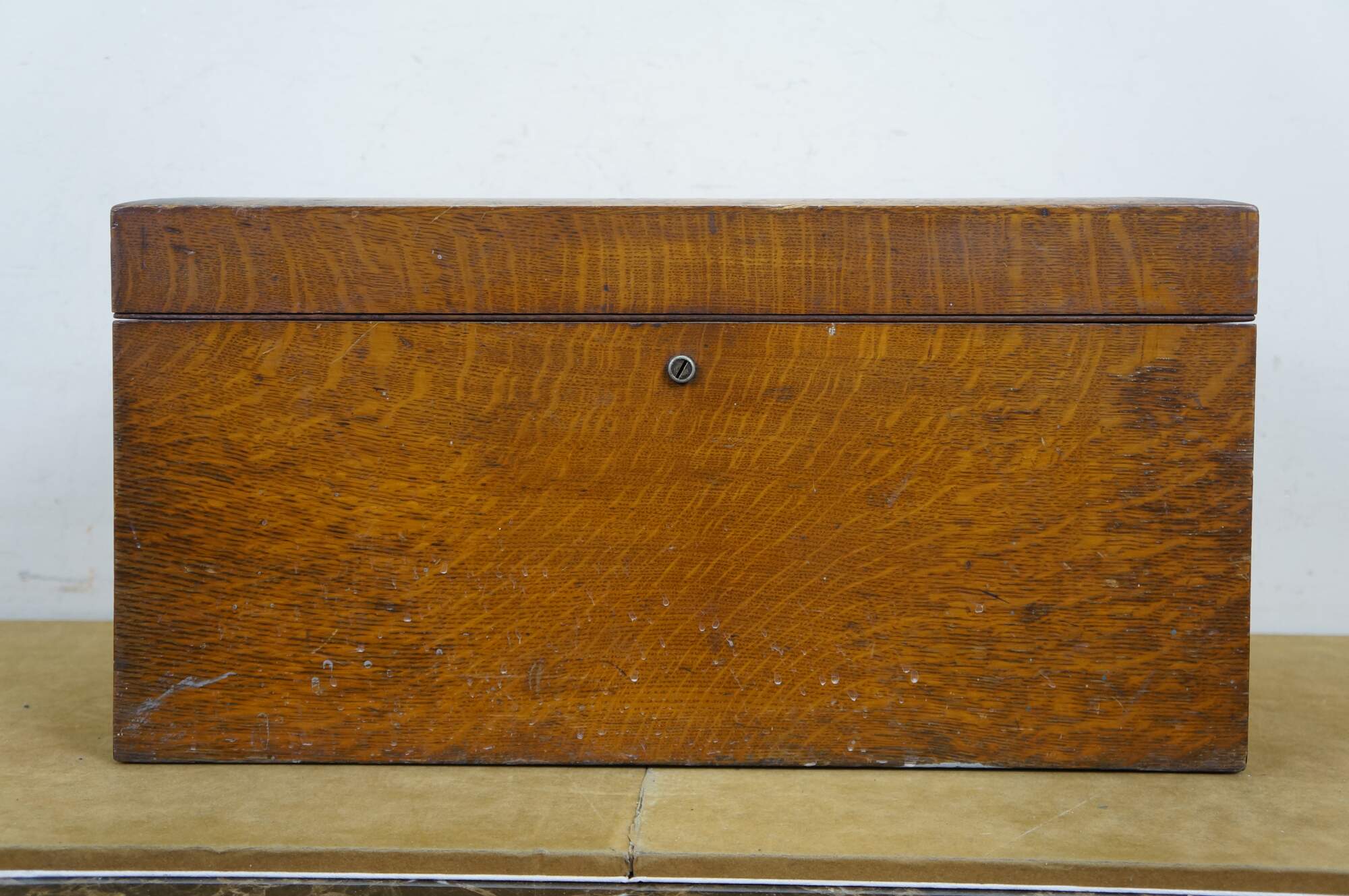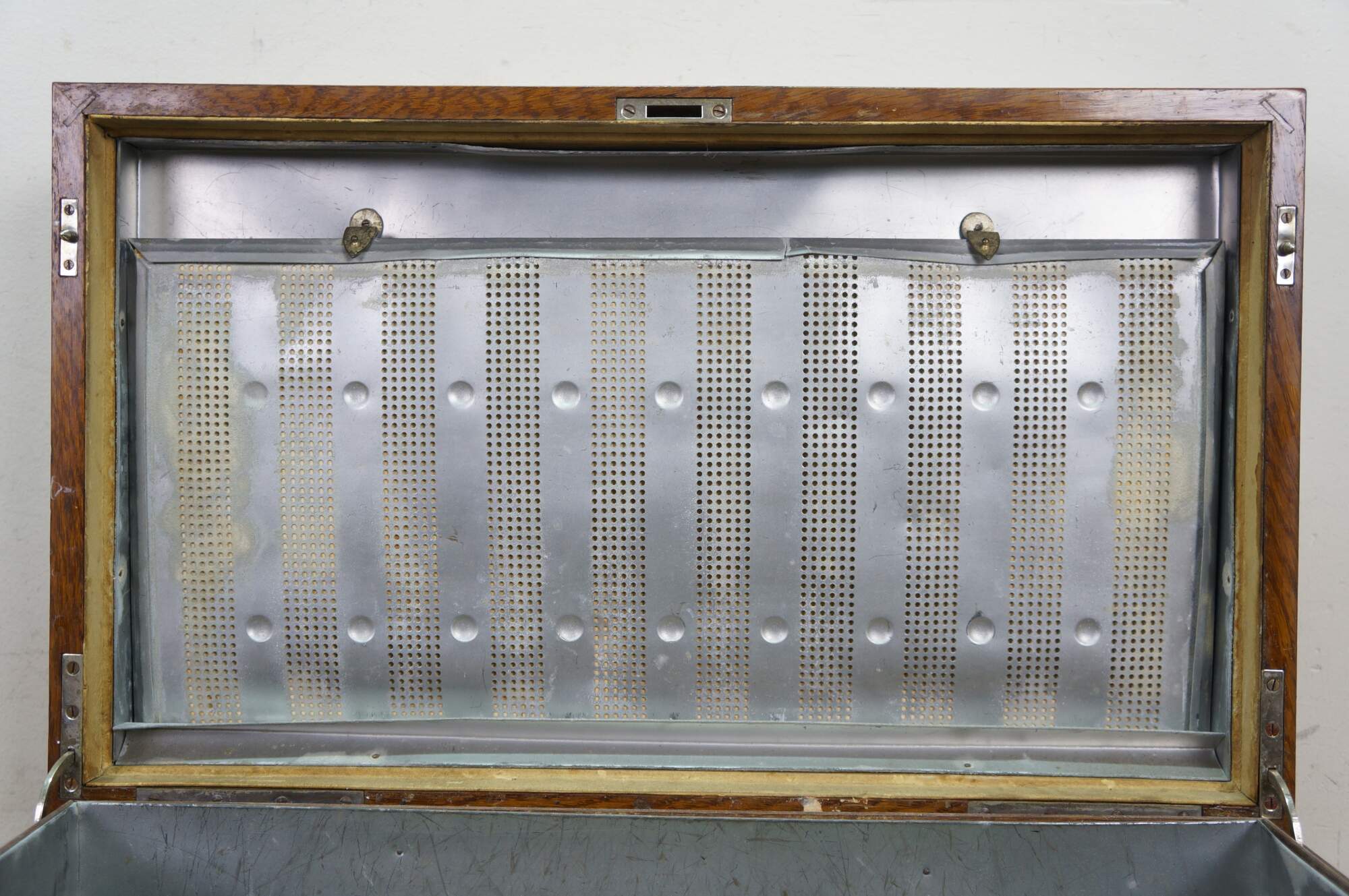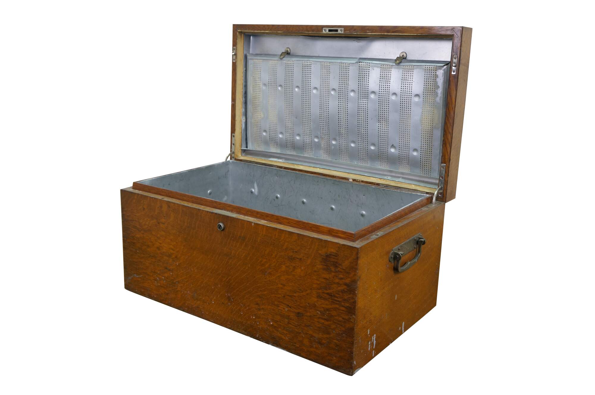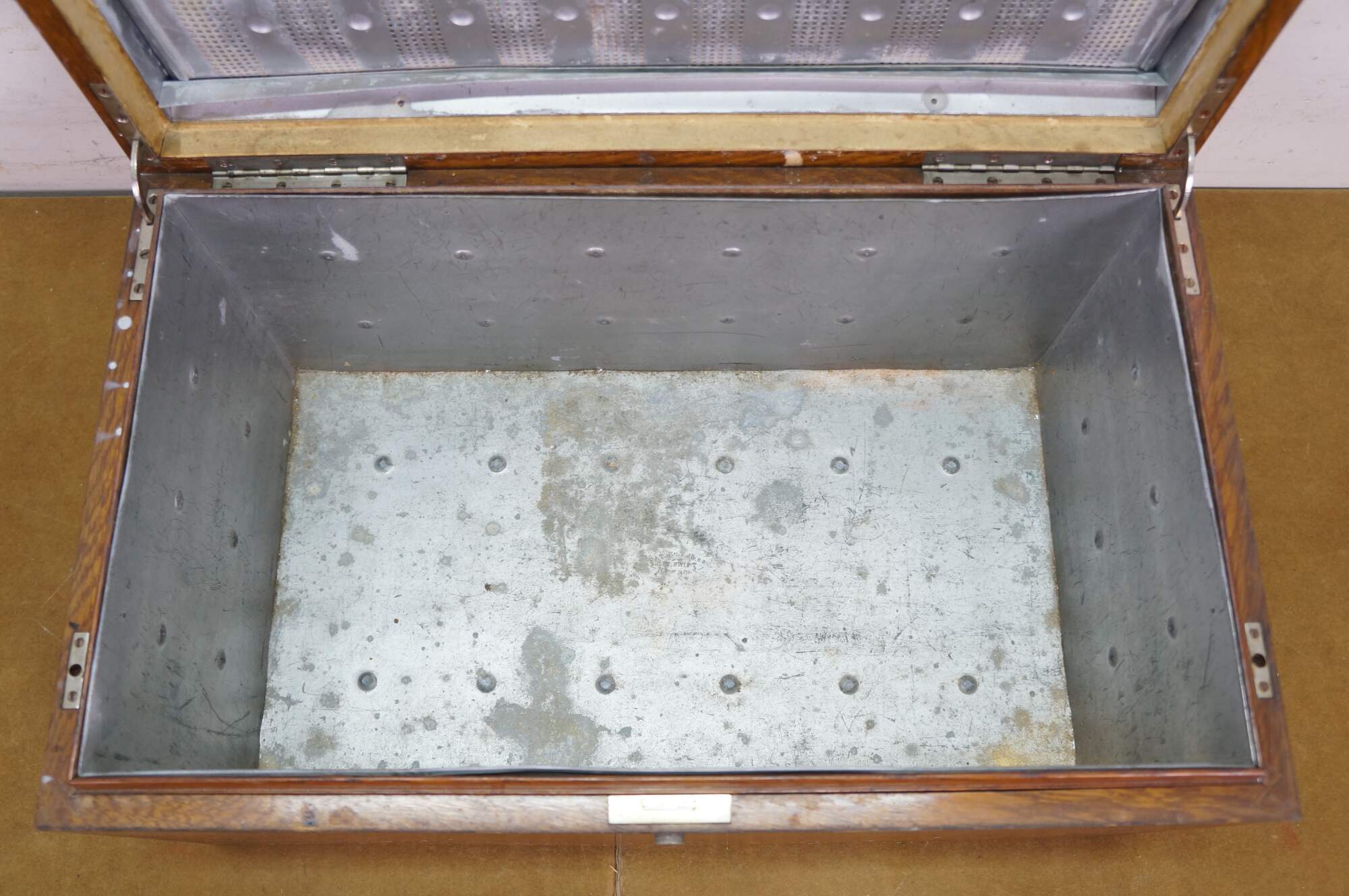 A very large and impressive antique quartersawn oak metal / tin lined humidor storage box / chest, circa 1893.