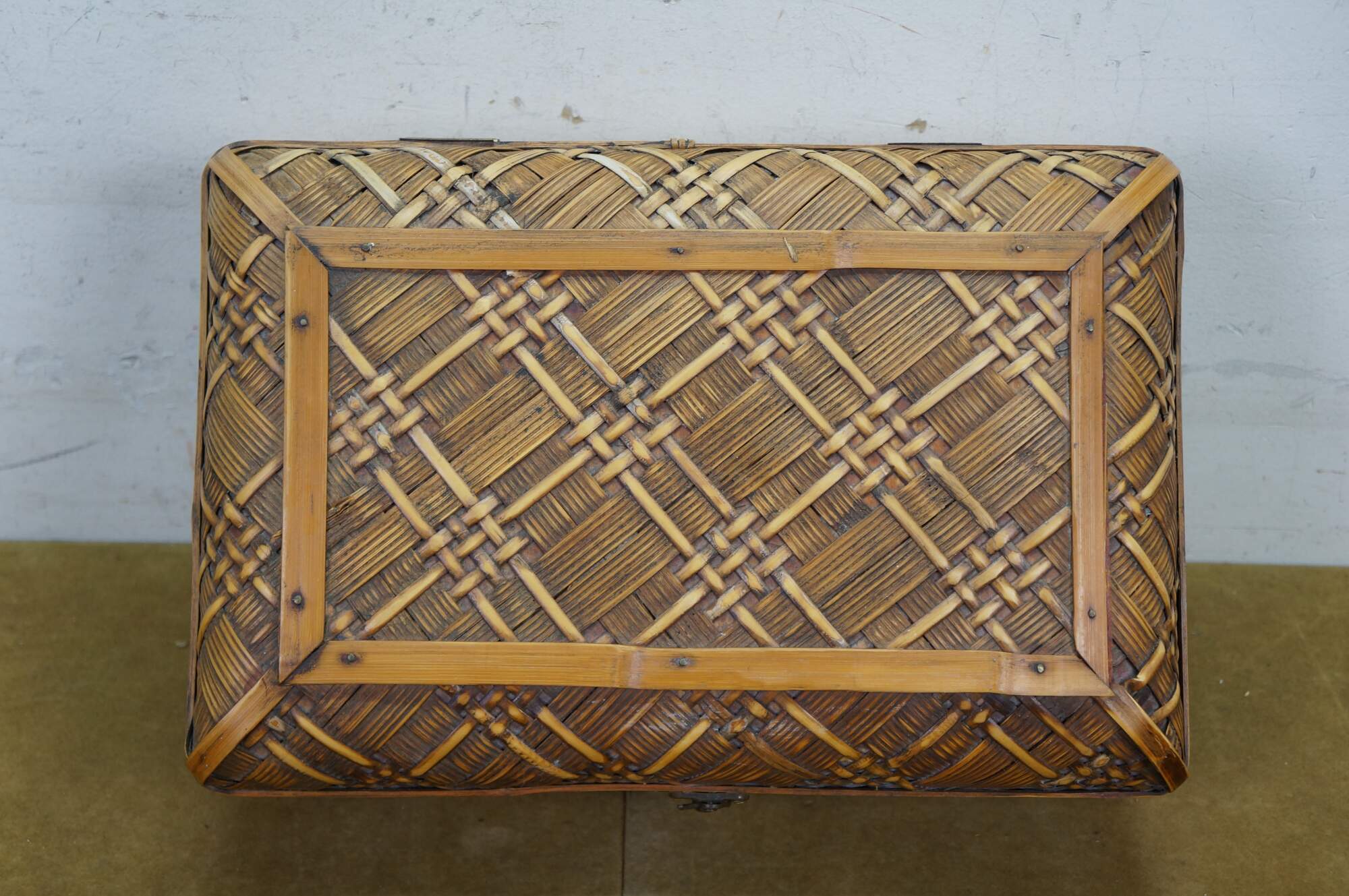 Set of three vintage Japanese woven wicker / rattan / koriyanagi nesting boxes.