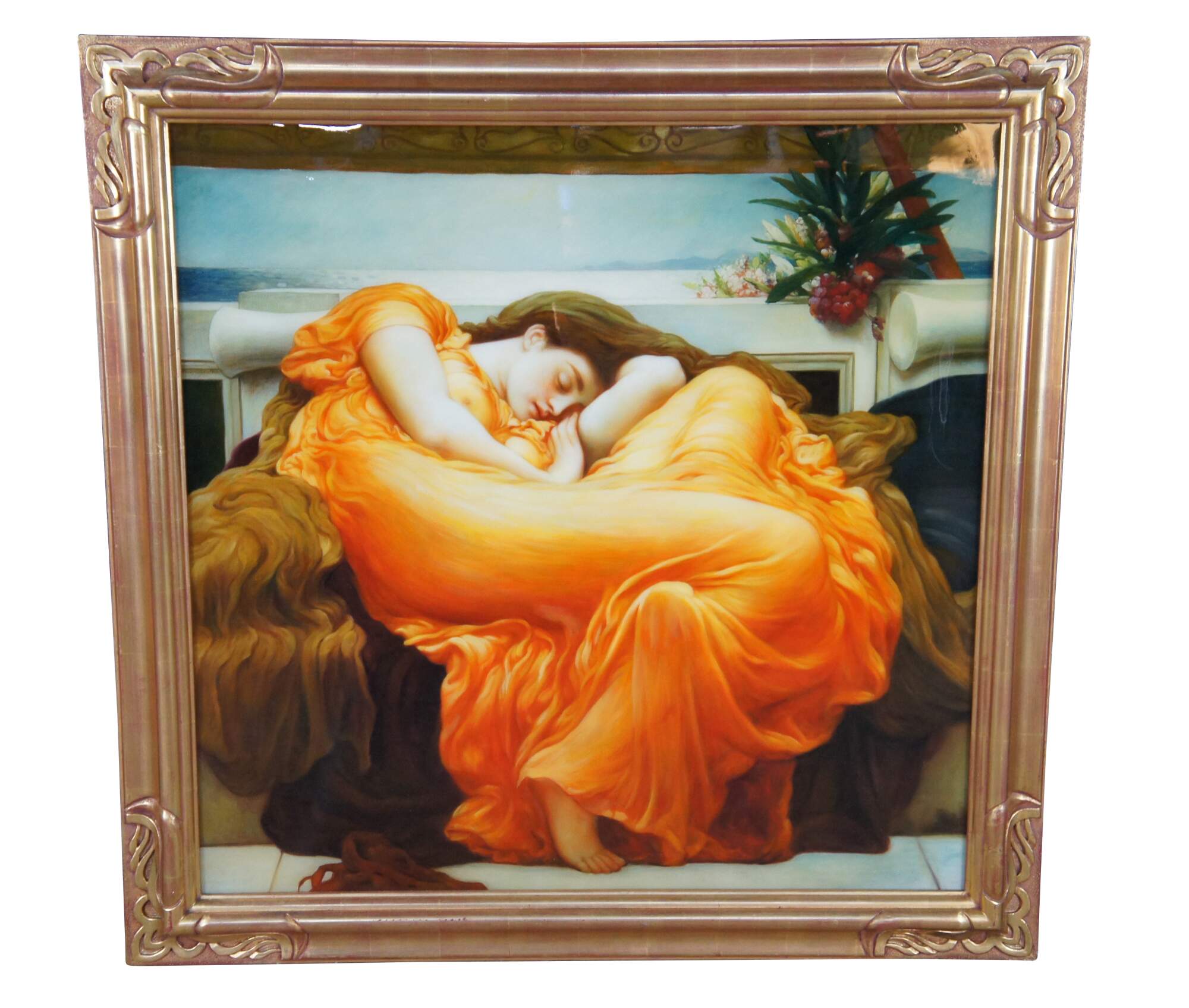 Vintage resin coated oil painting titled Flaming June, after Lord Frederic Leighton.