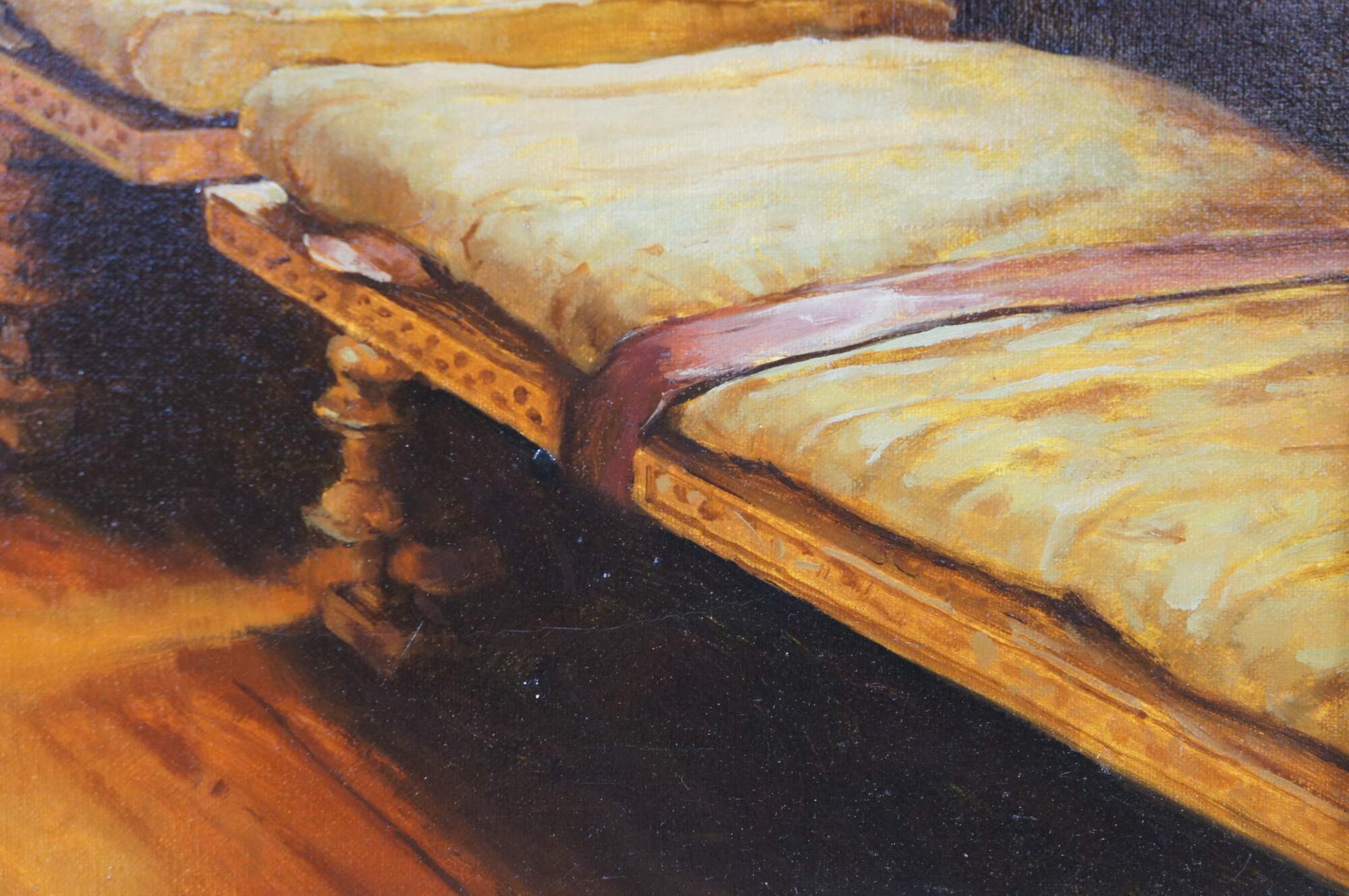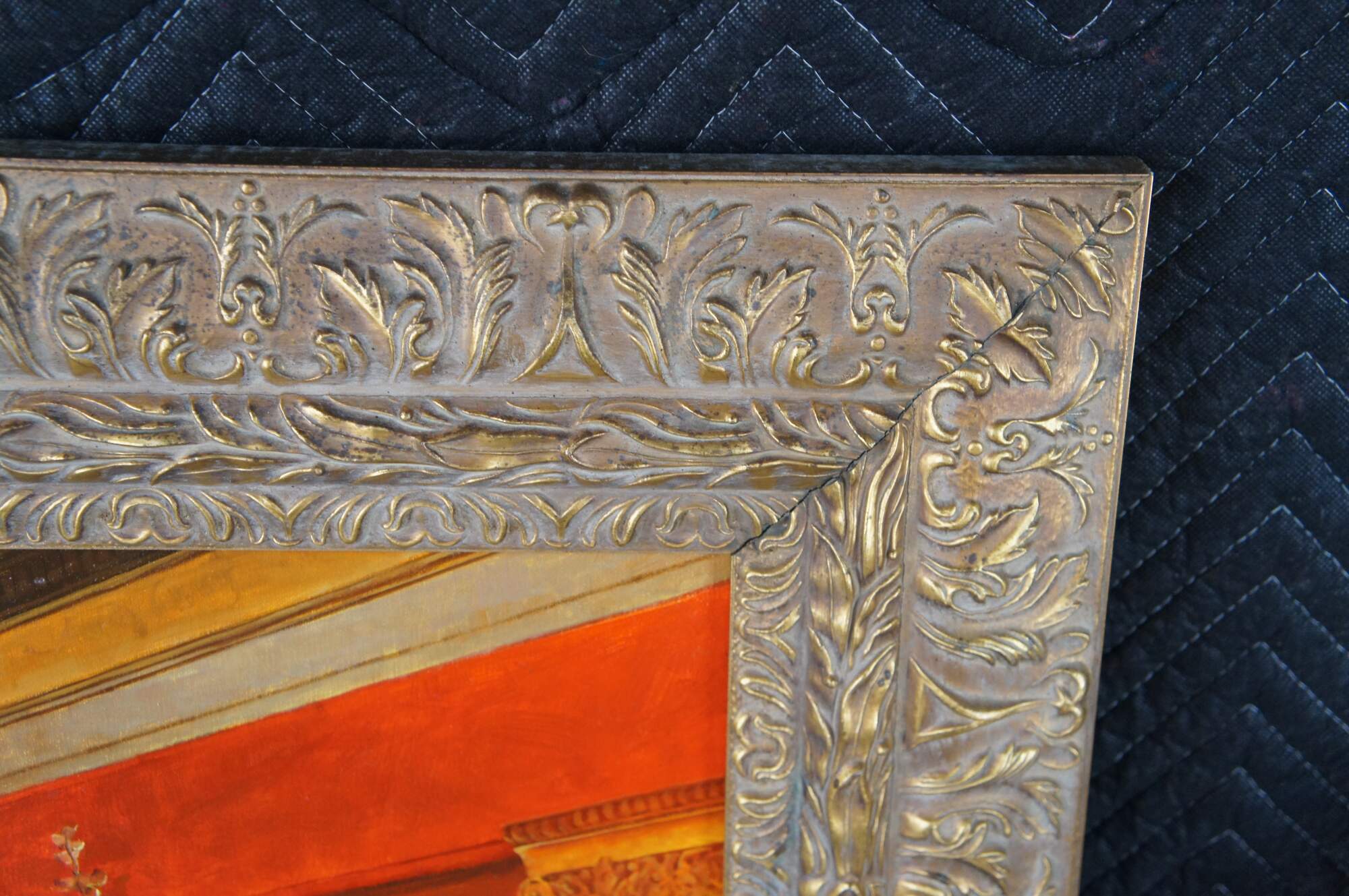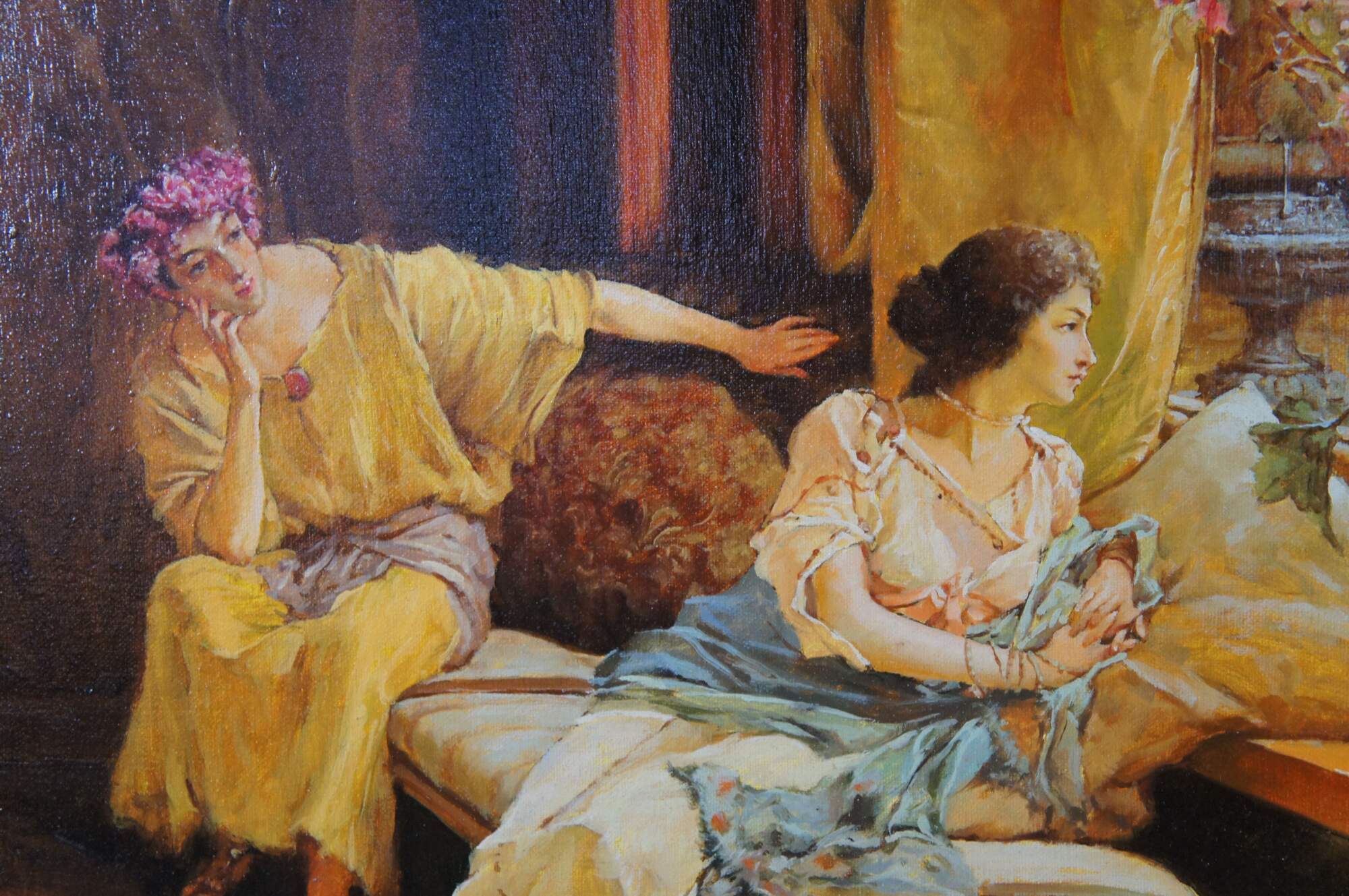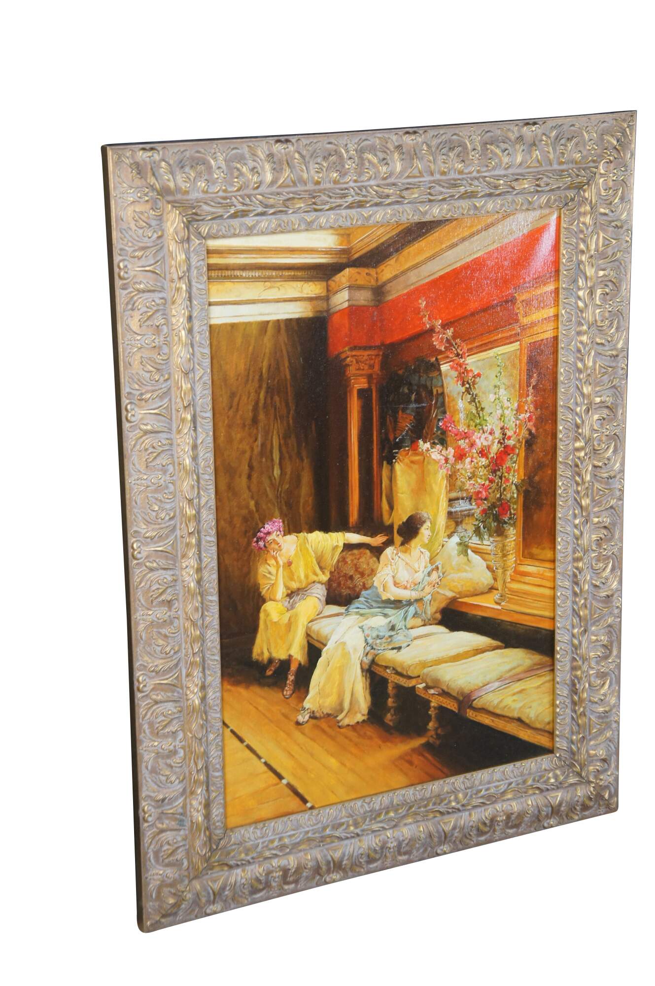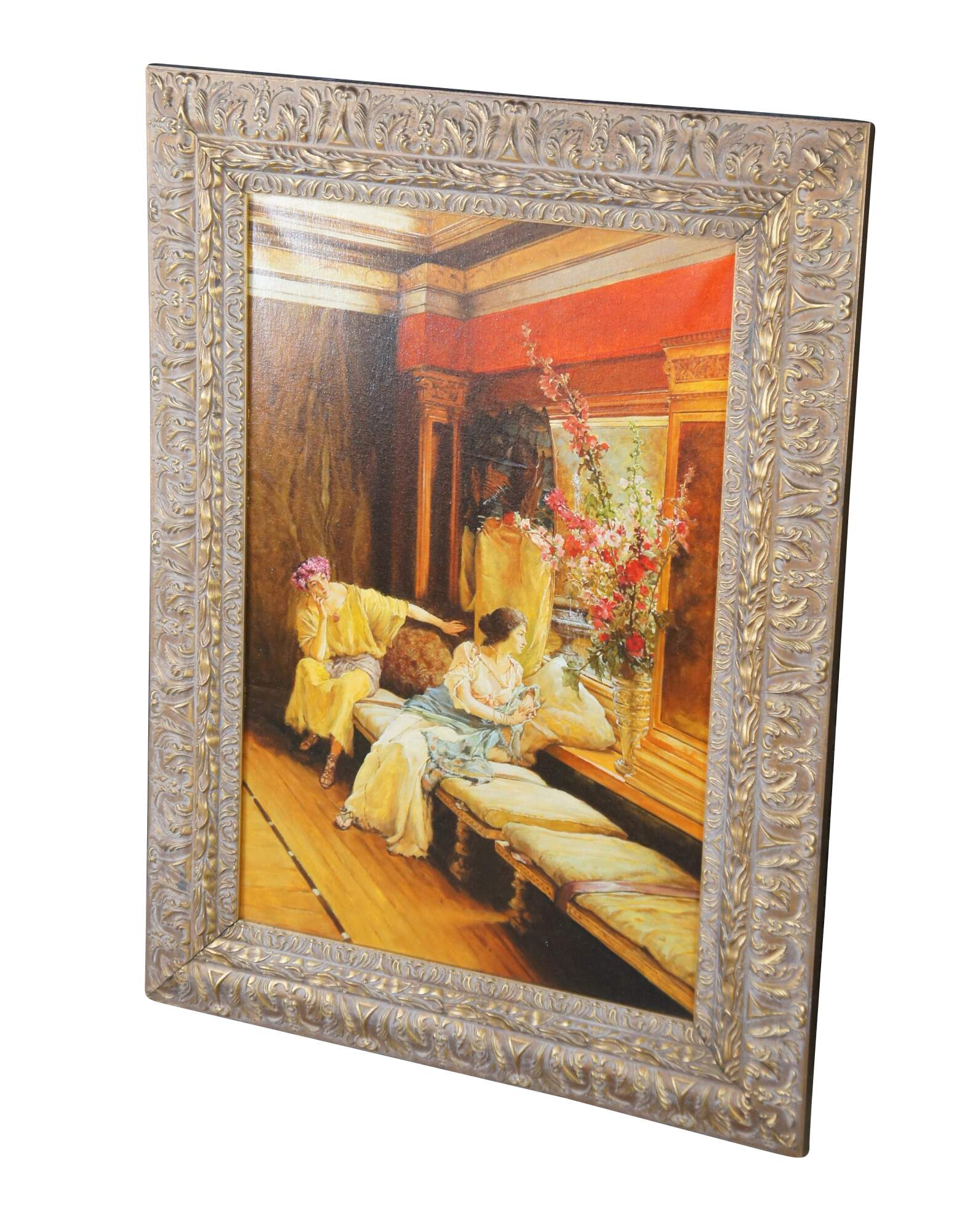 Vintage reproduction oil painting of Vain Courtship, a painting created in 1900 by the British-Dutch painter Sir Lawrence Alma-Tadema.
