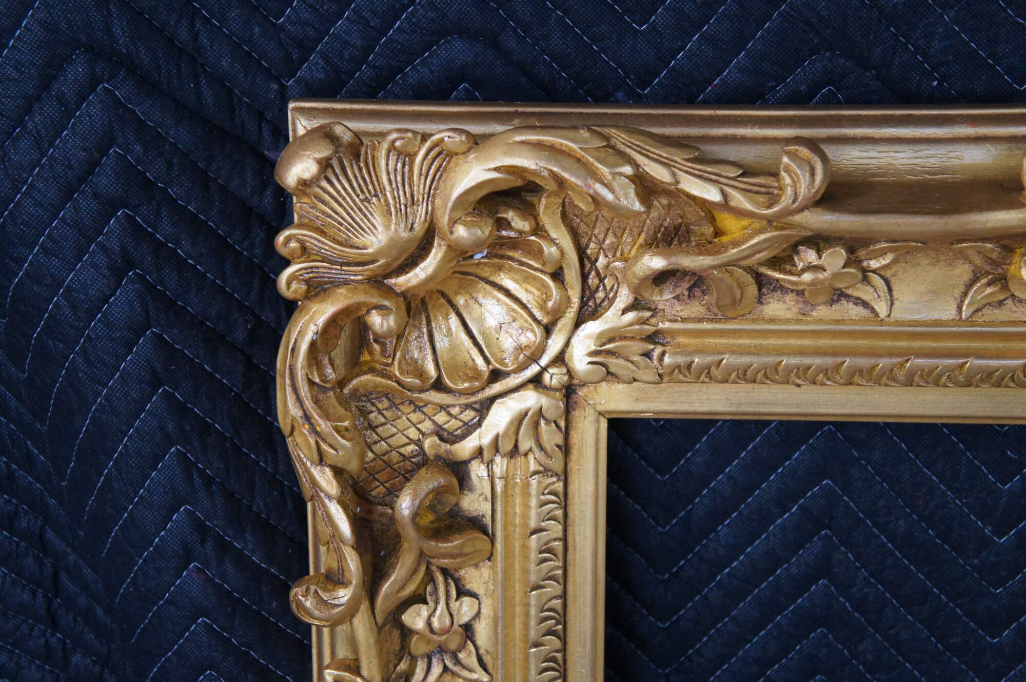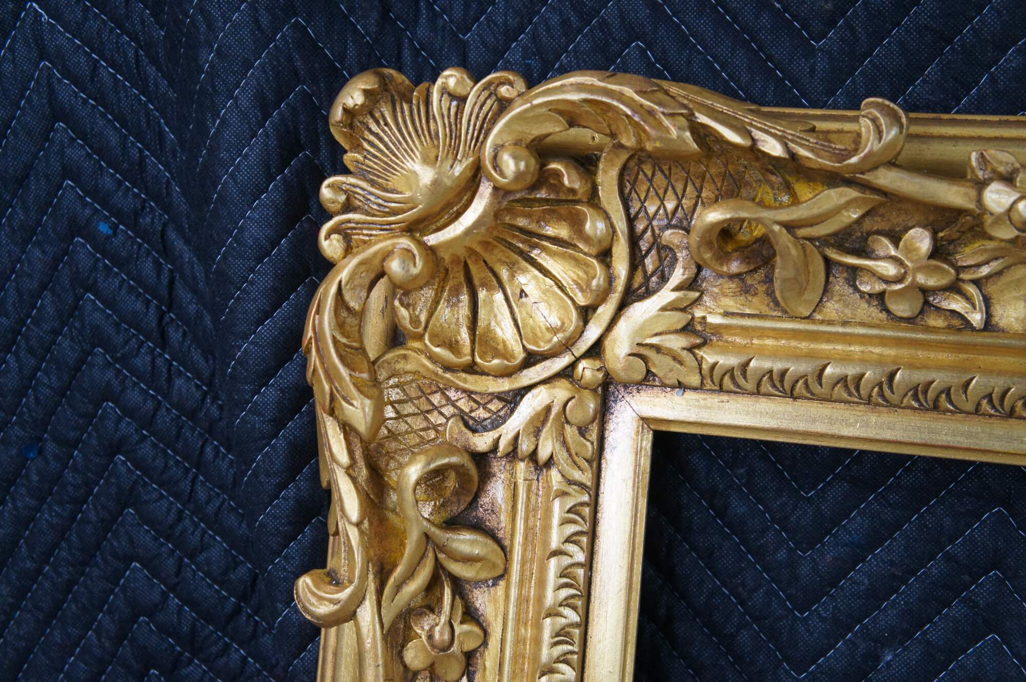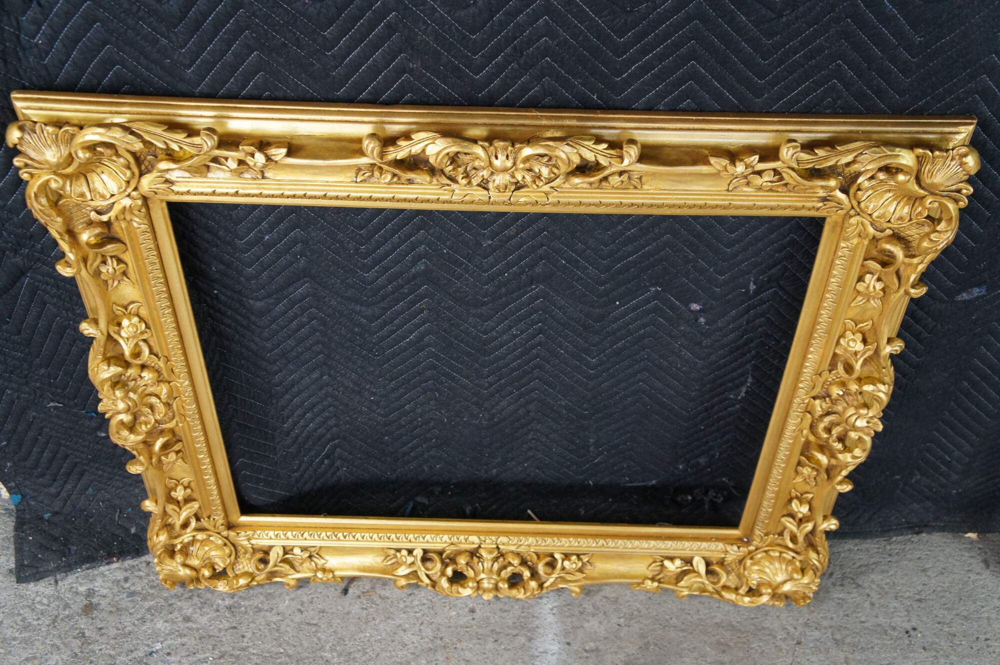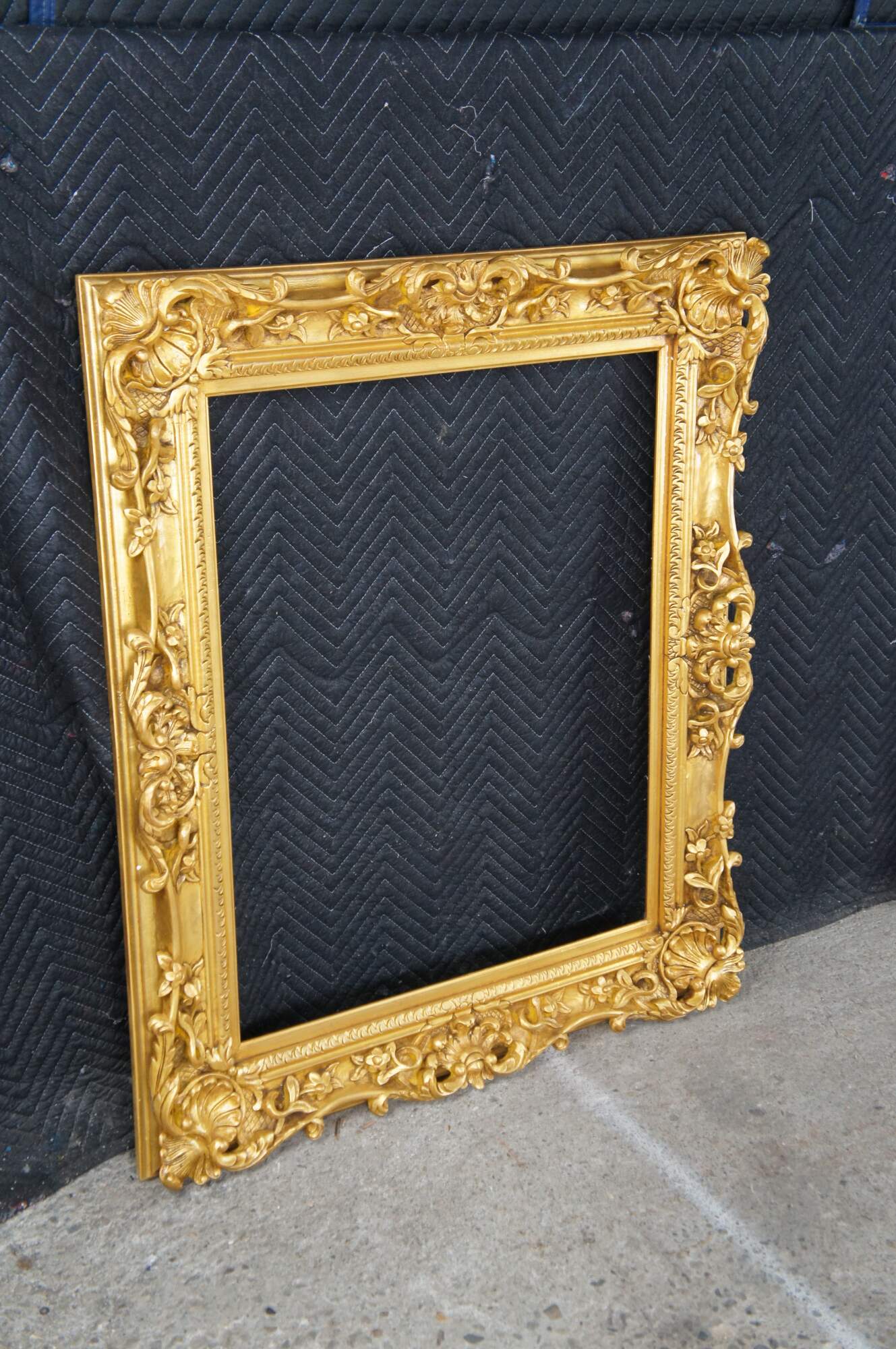 Large vintage ornate high relief gold gilded picture / oil painting / mirror frame featuring Baroque / Rococo styling with carved floral / acanthus and shell motifs. Fits 24 x 30.