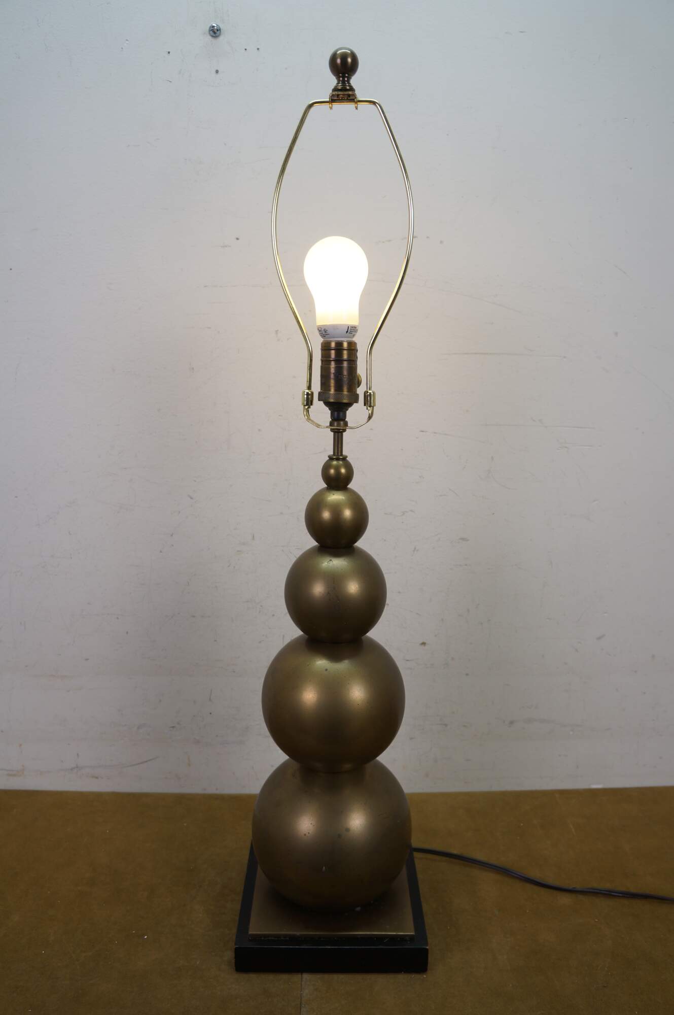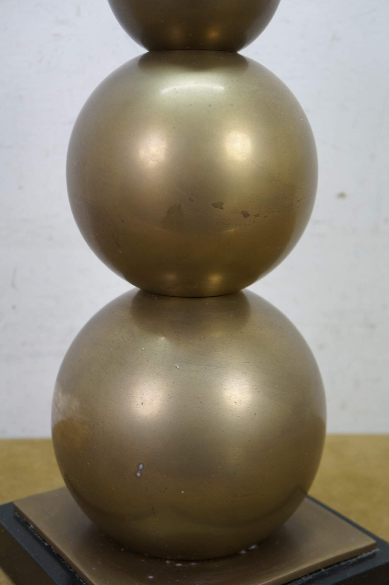 A very tall and elegant vintage Visual Comfort brass table lamp featuring a graduated / stacked ball / orb / sphere design.