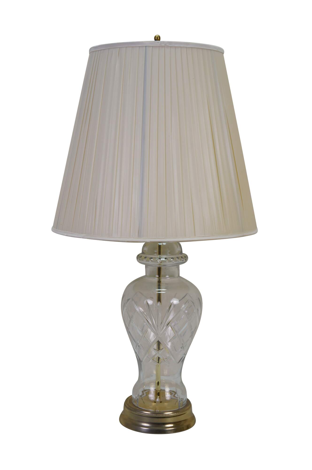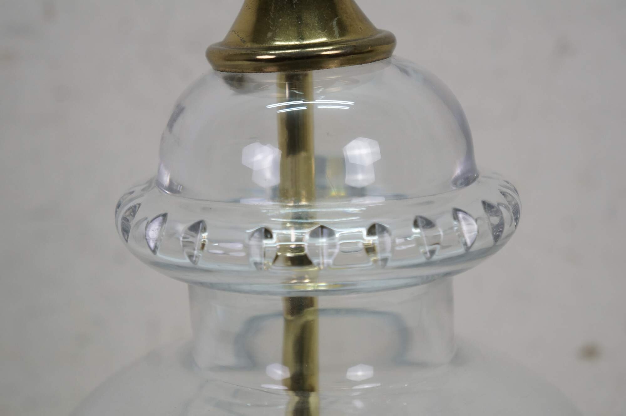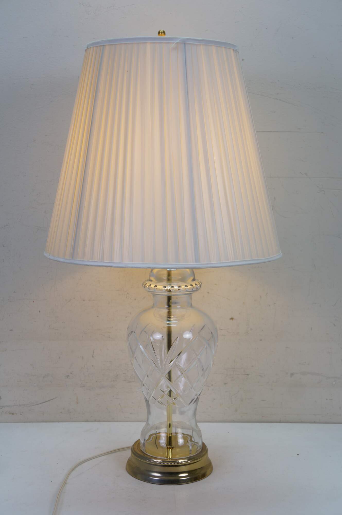 Vintage brass and cut crystal mantel vase urn table lamp.