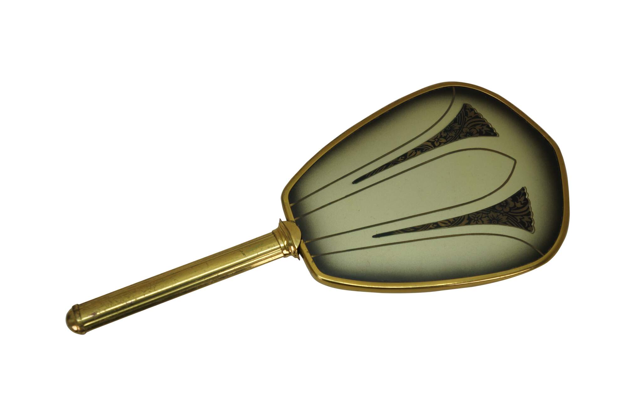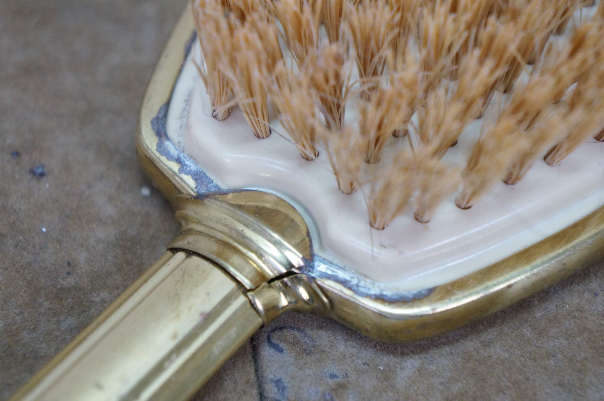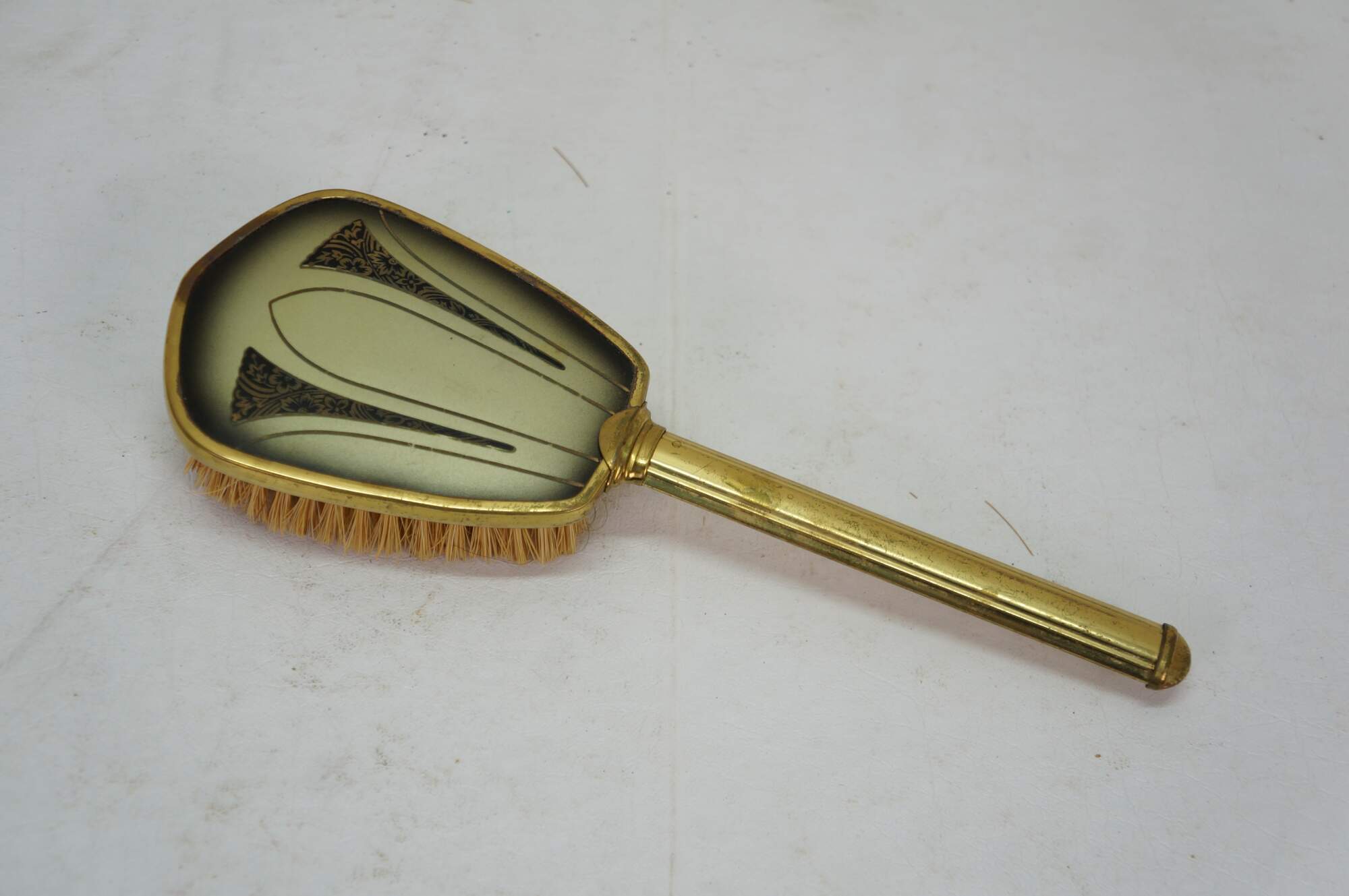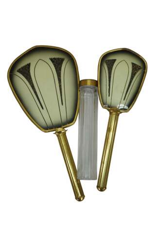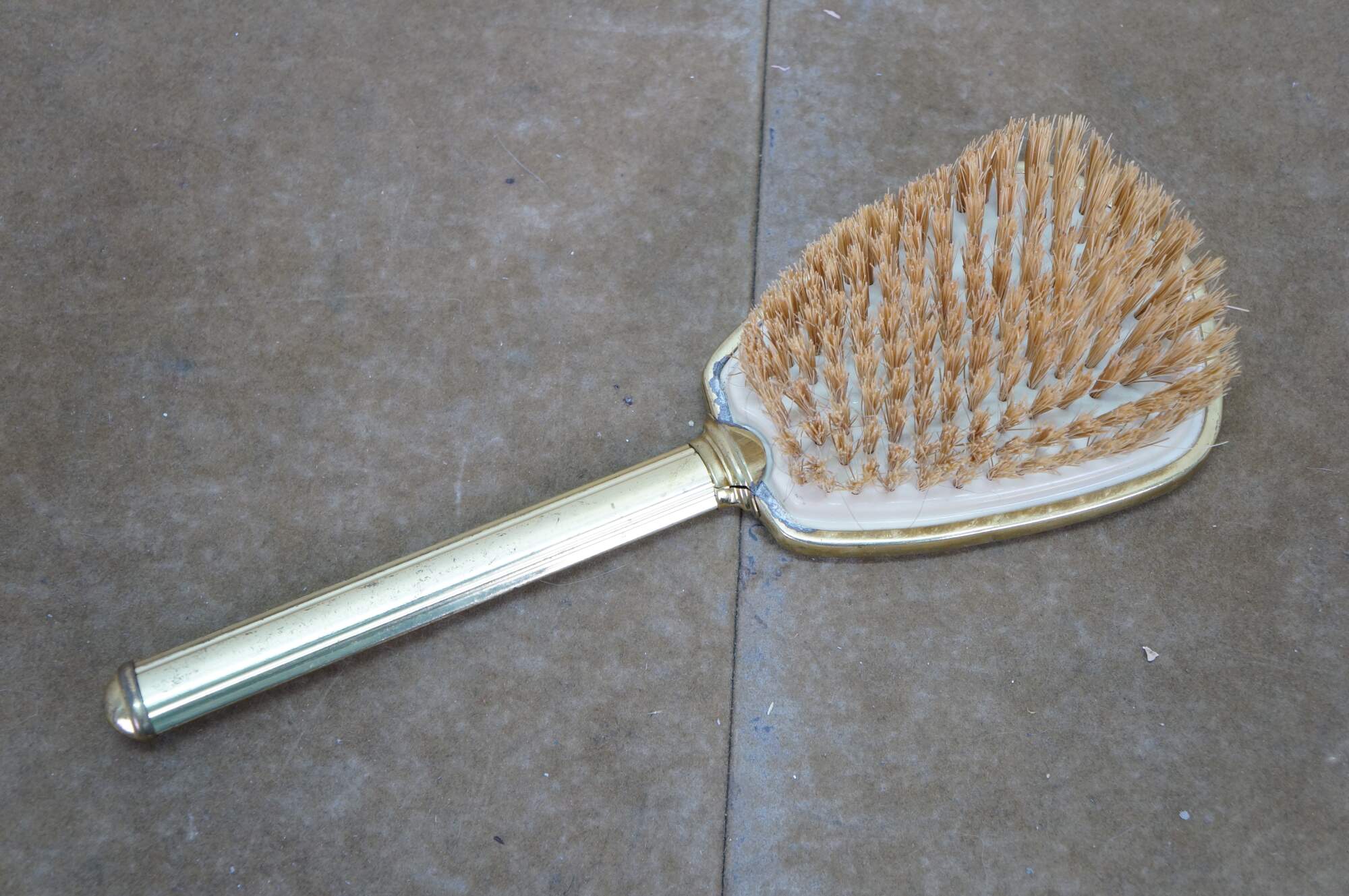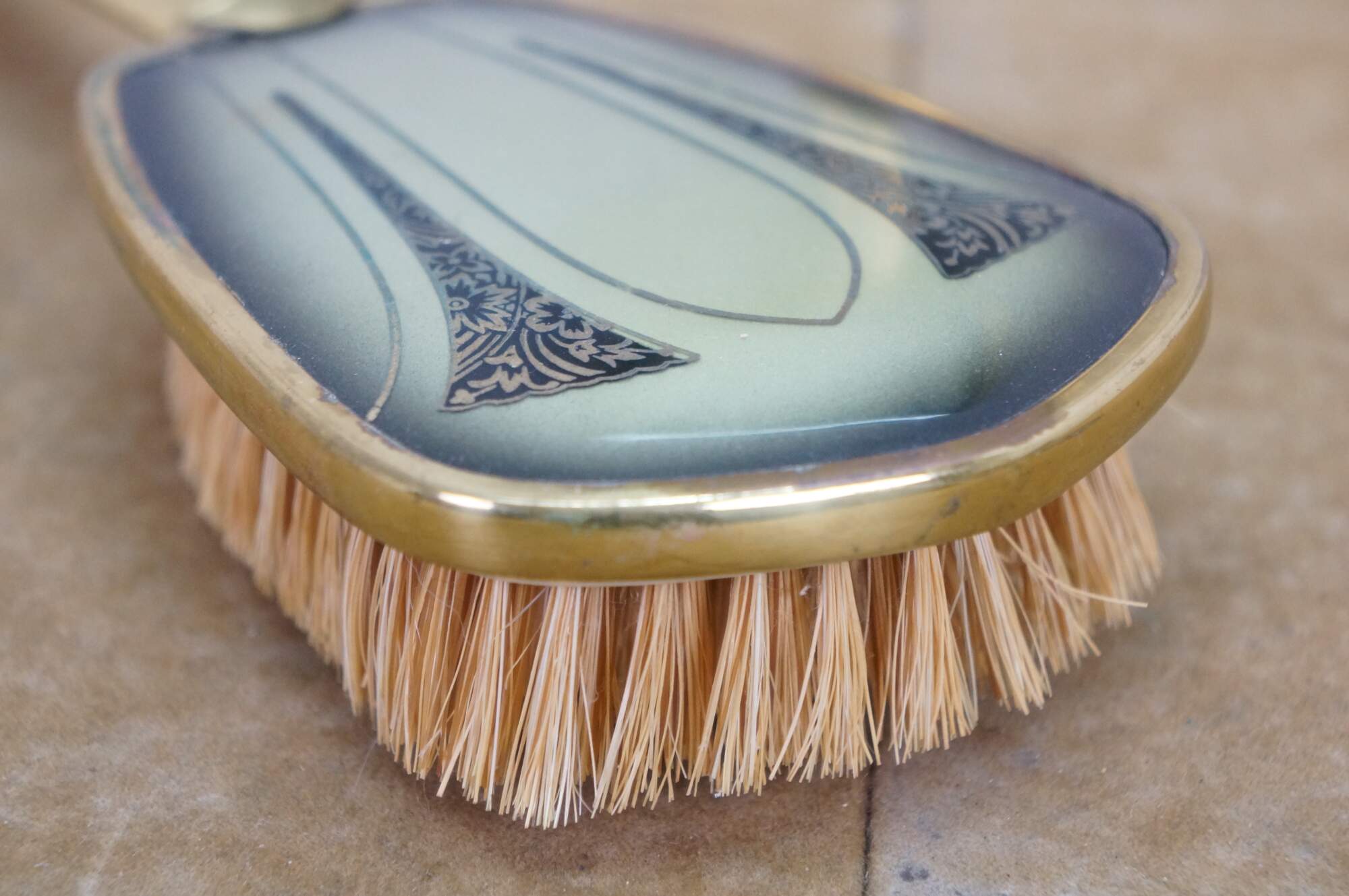 Antique Art Deco Brass Vanity Hand Mirror Brush Powder Jar Set.2