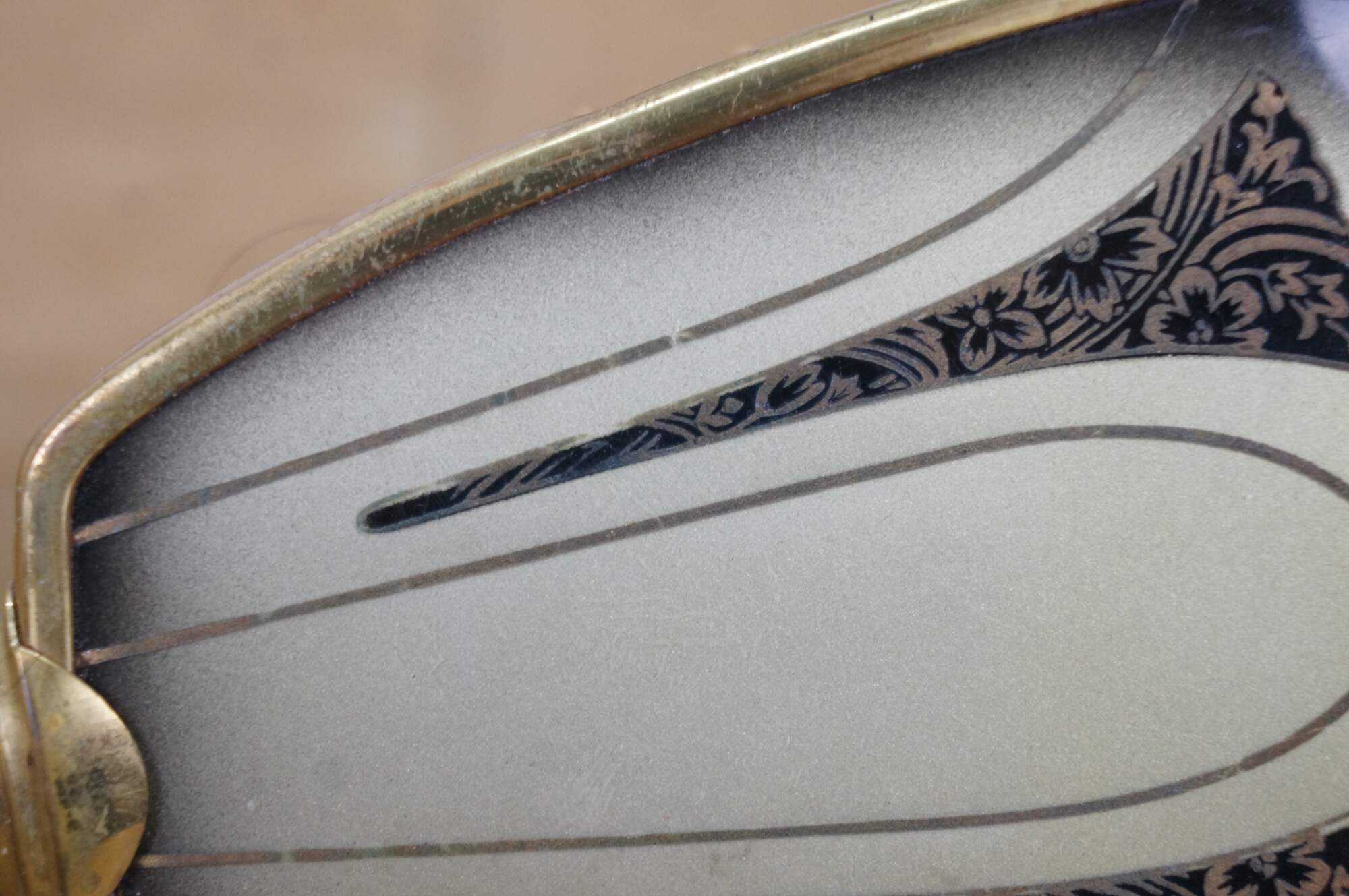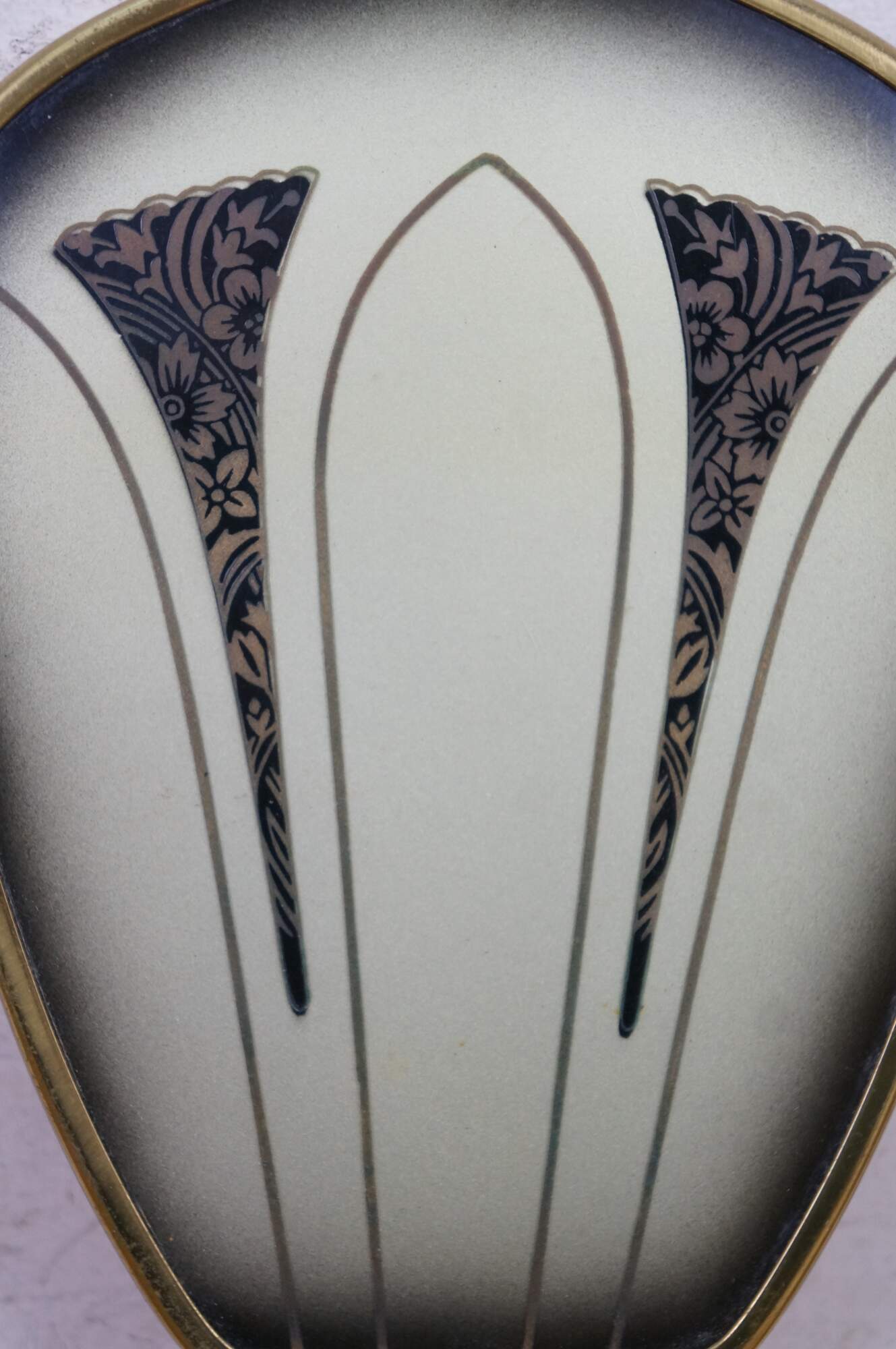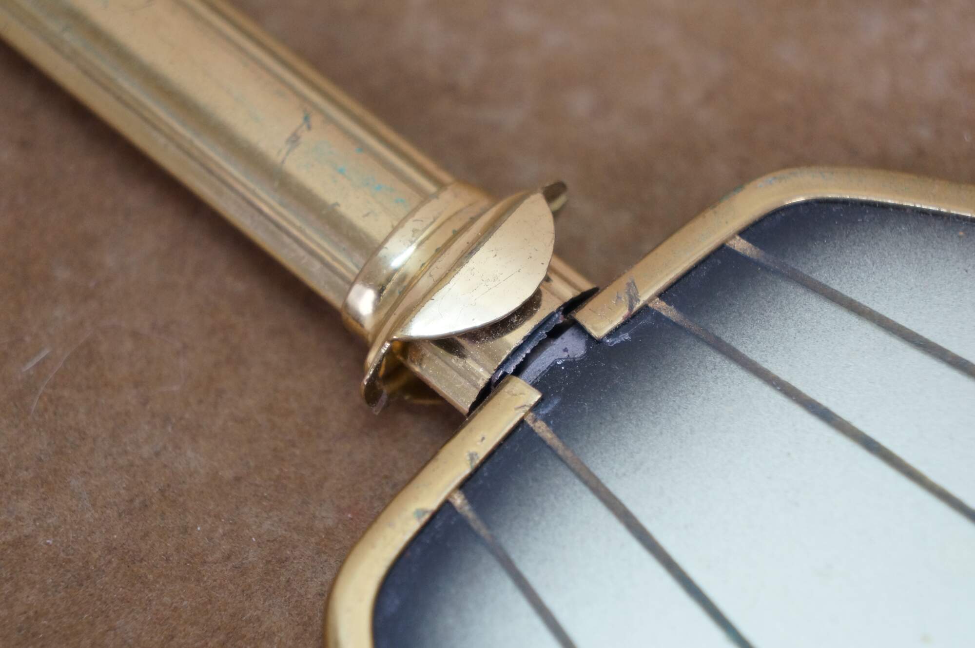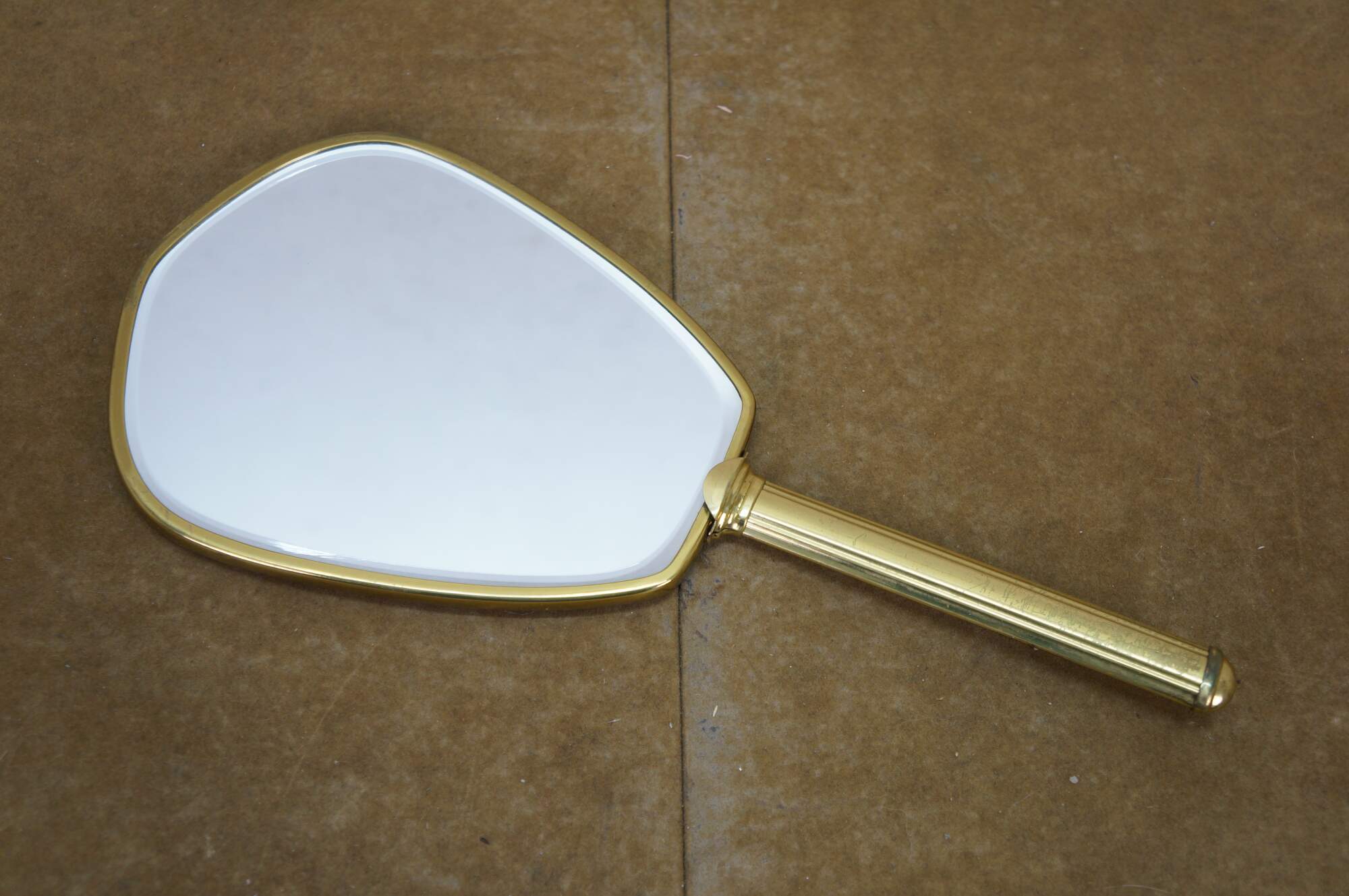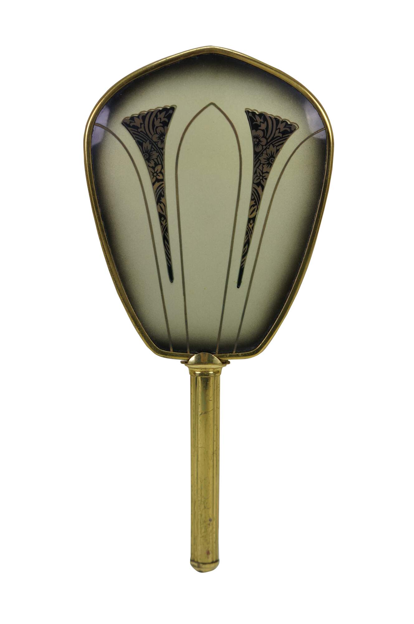 Antique Art Deco Brass Vanity Hand Mirror Brush Powder Jar Set.2