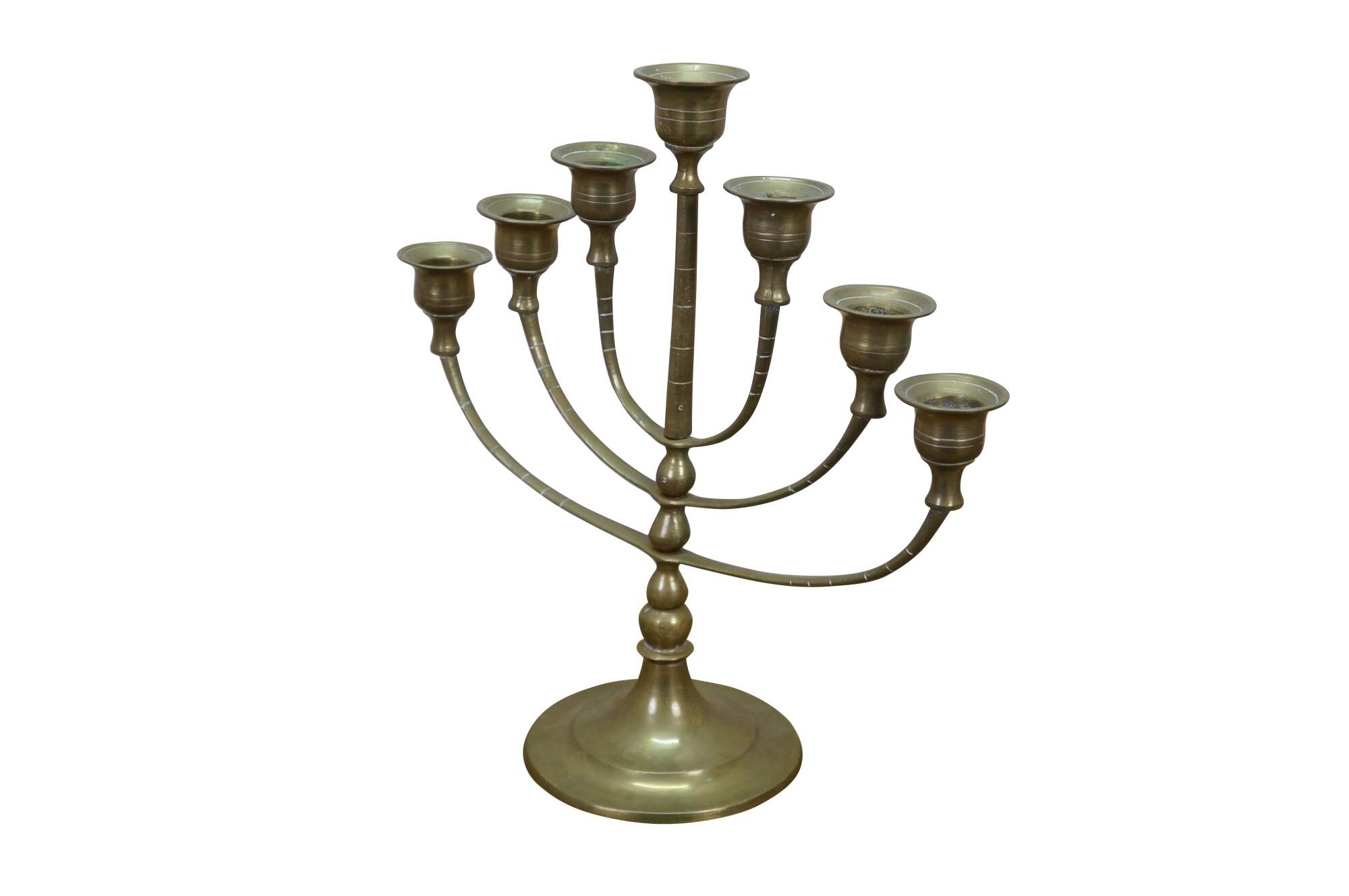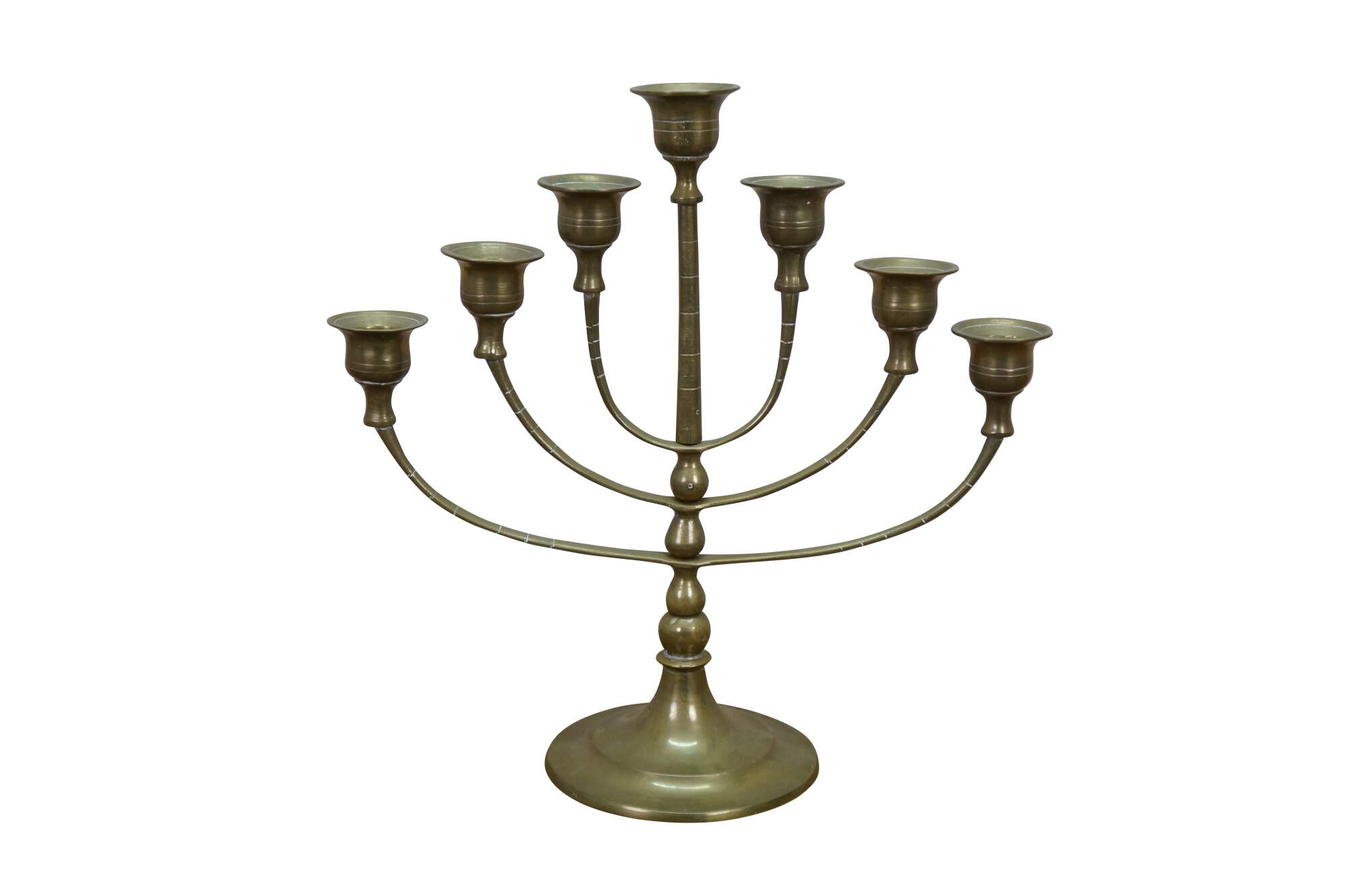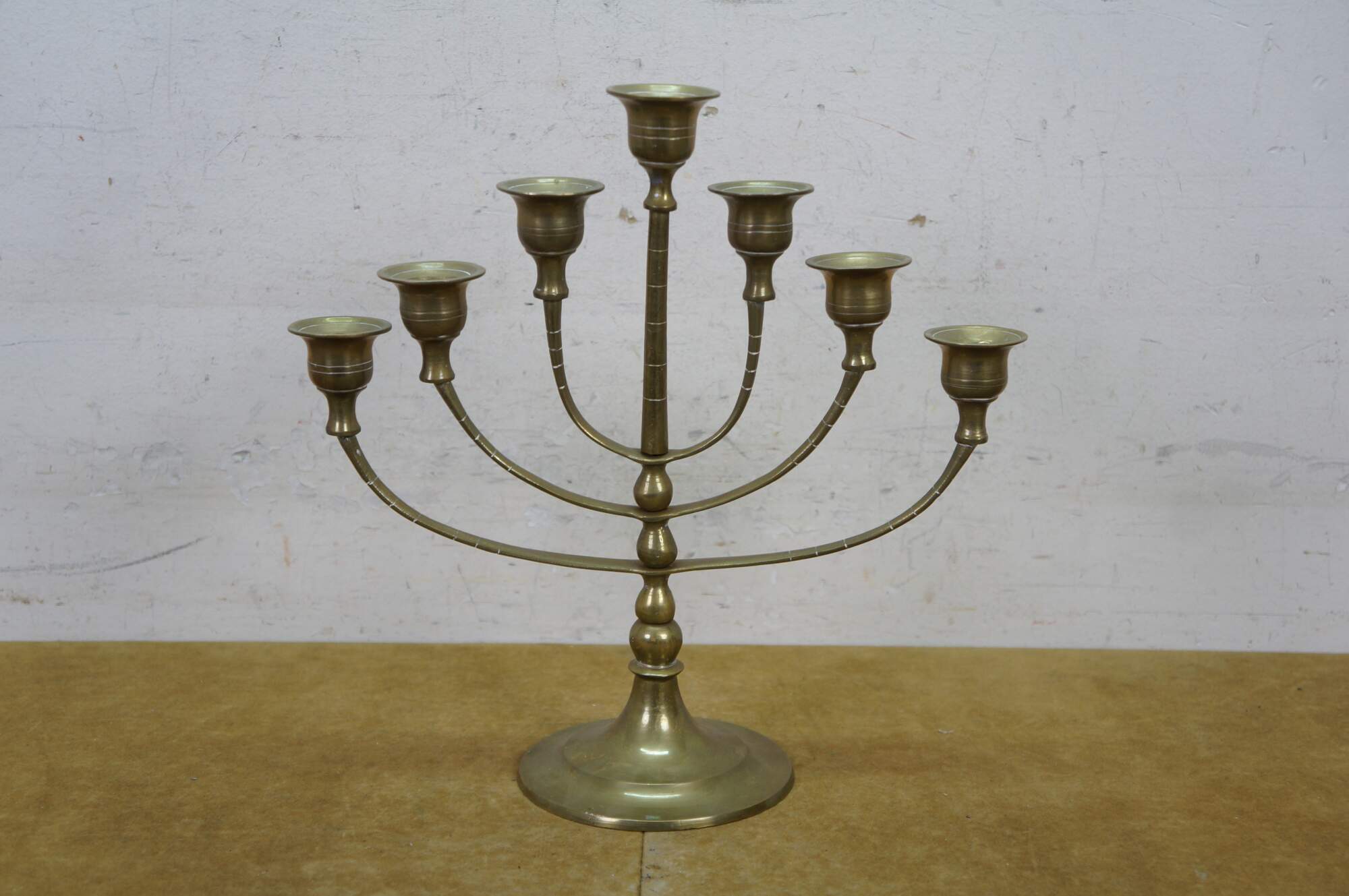 Vintage brass seven arm menorah / candelabra / candle holder.