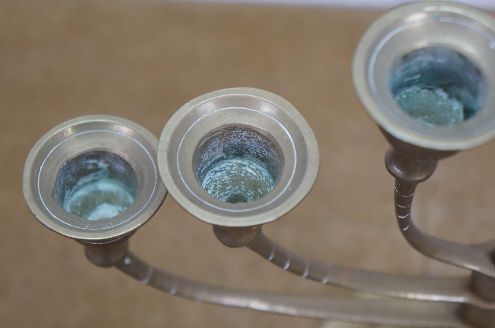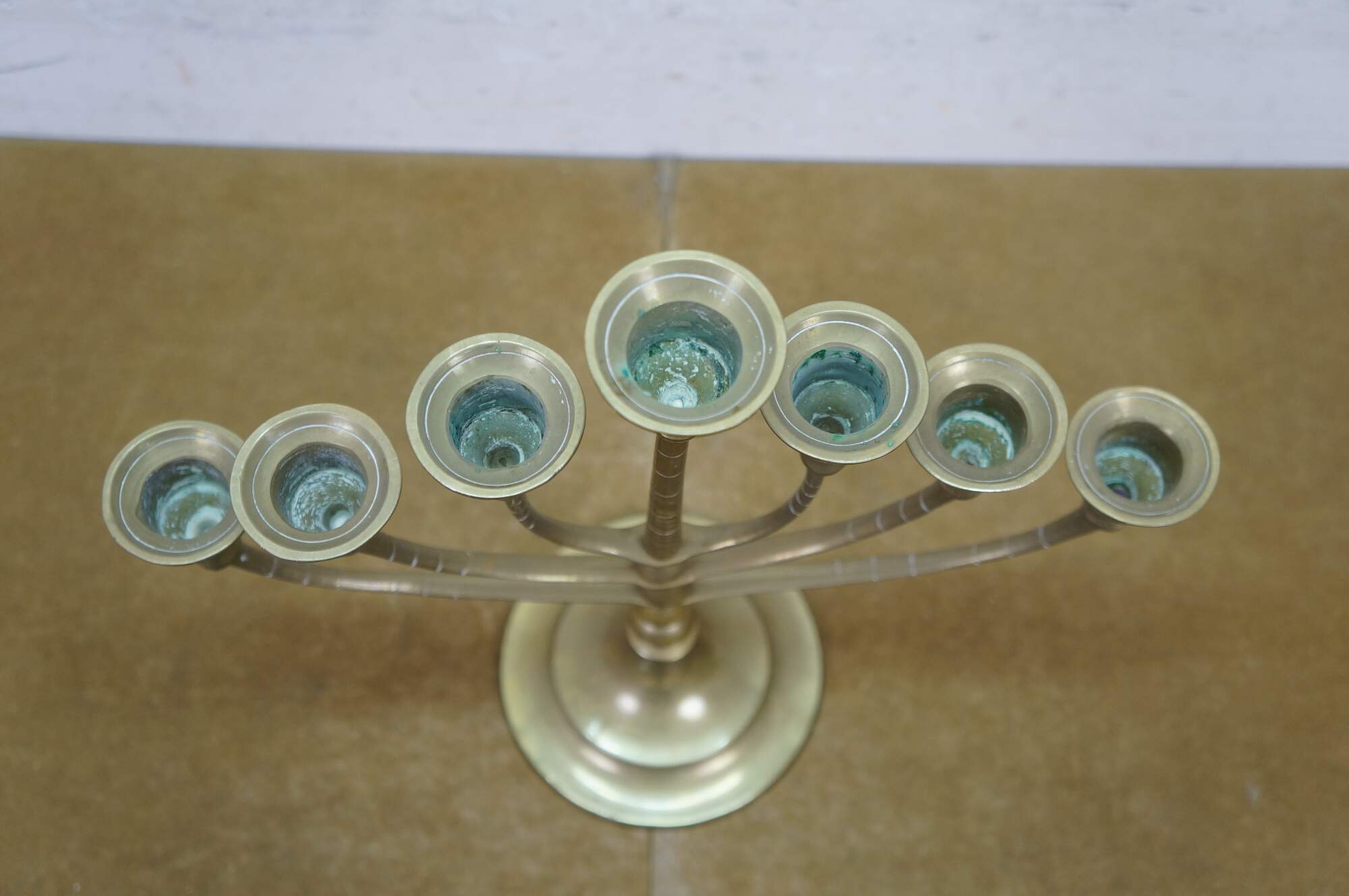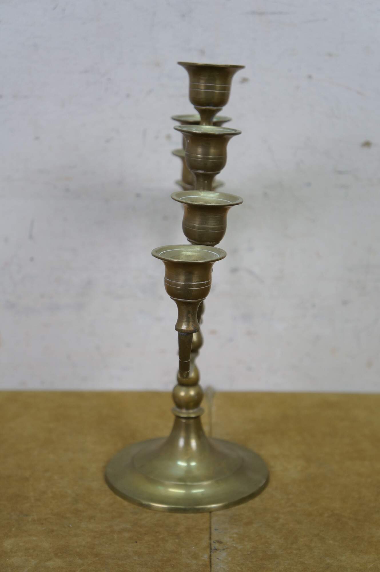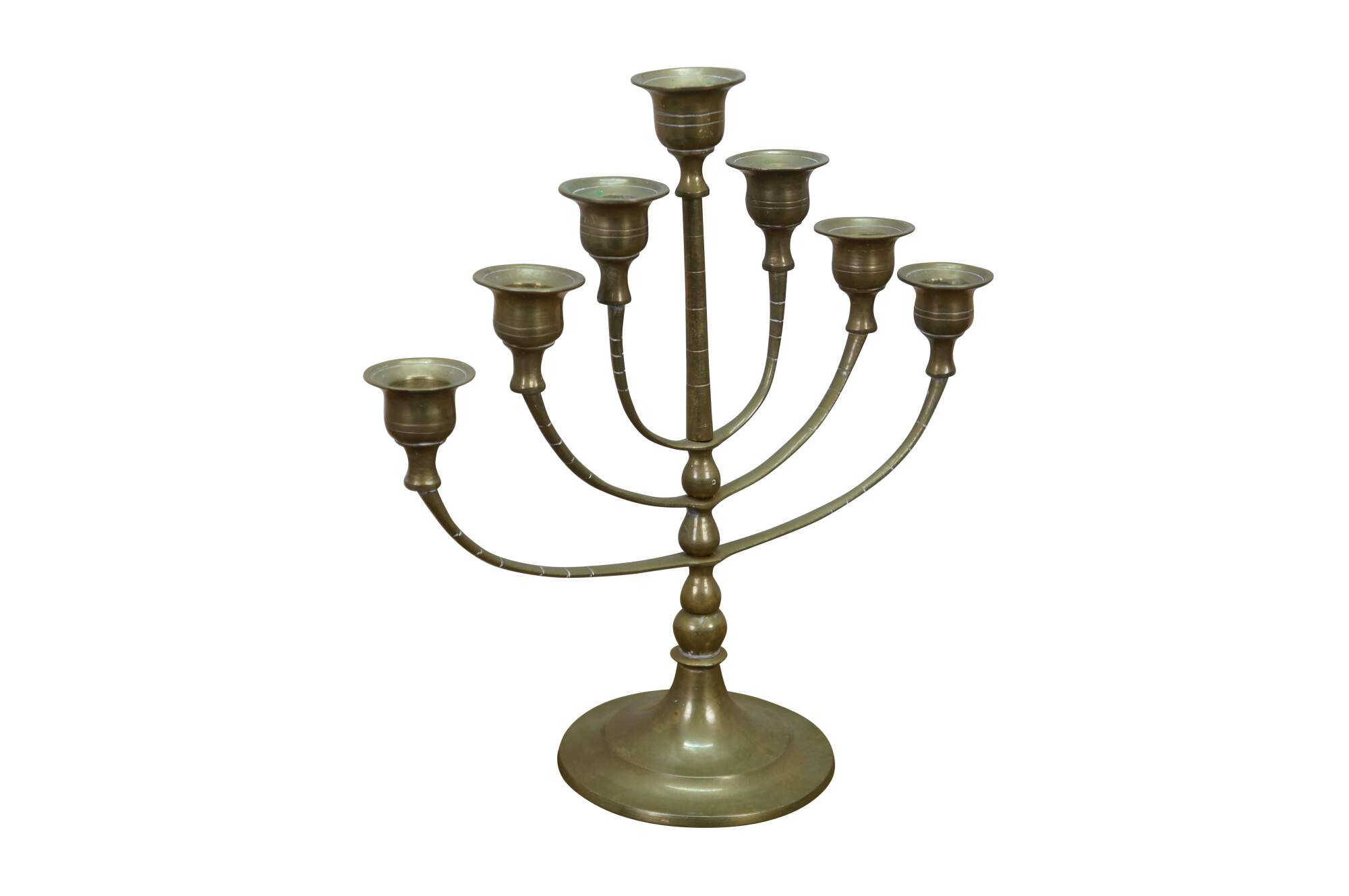 Vintage brass seven arm menorah / candelabra / candle holder.