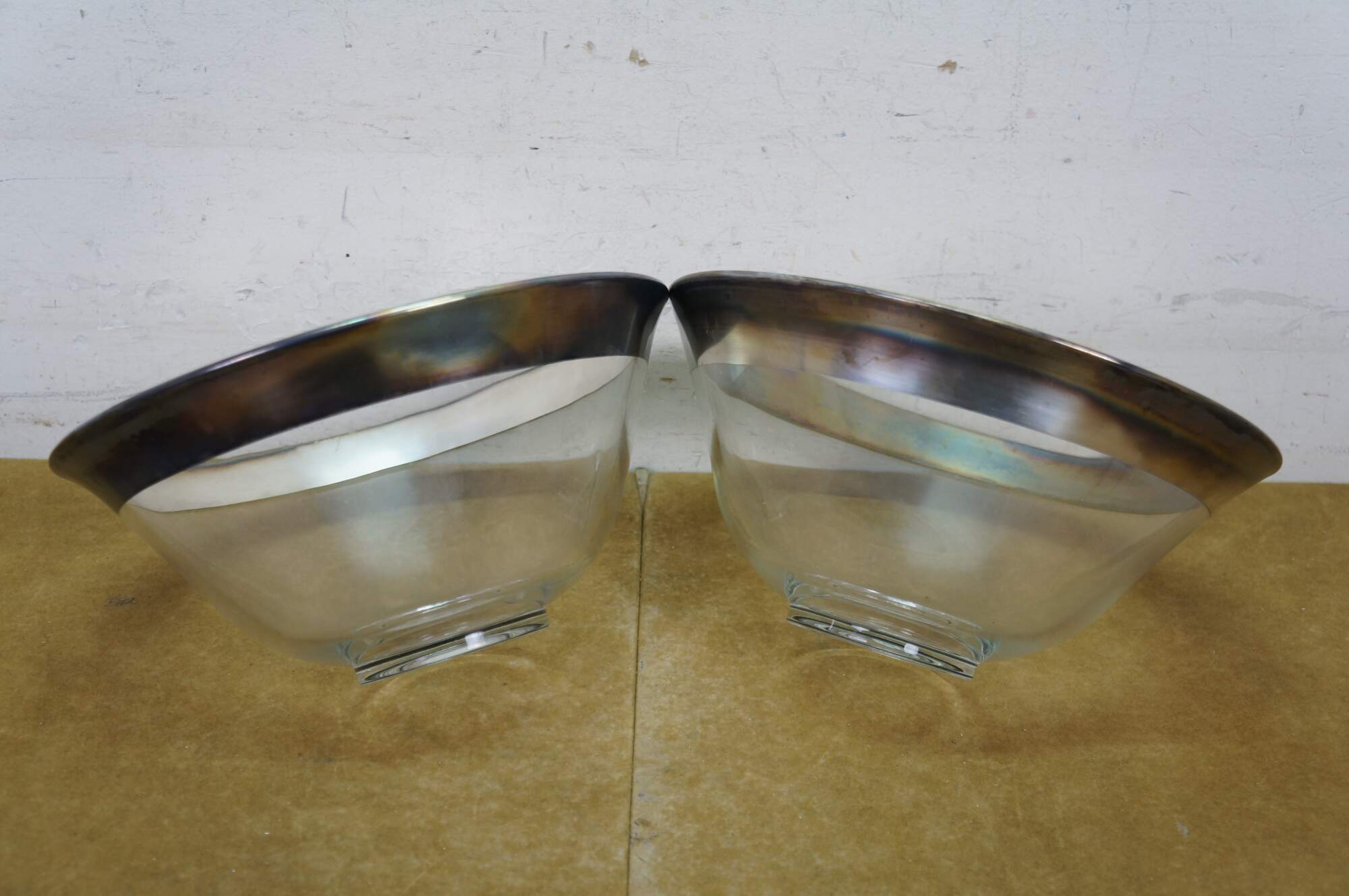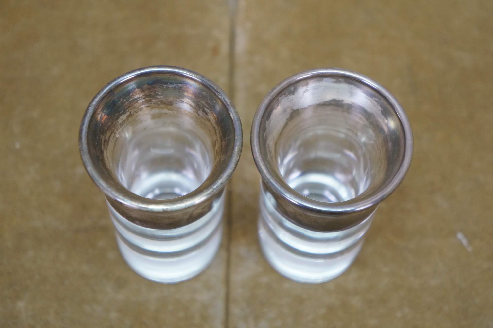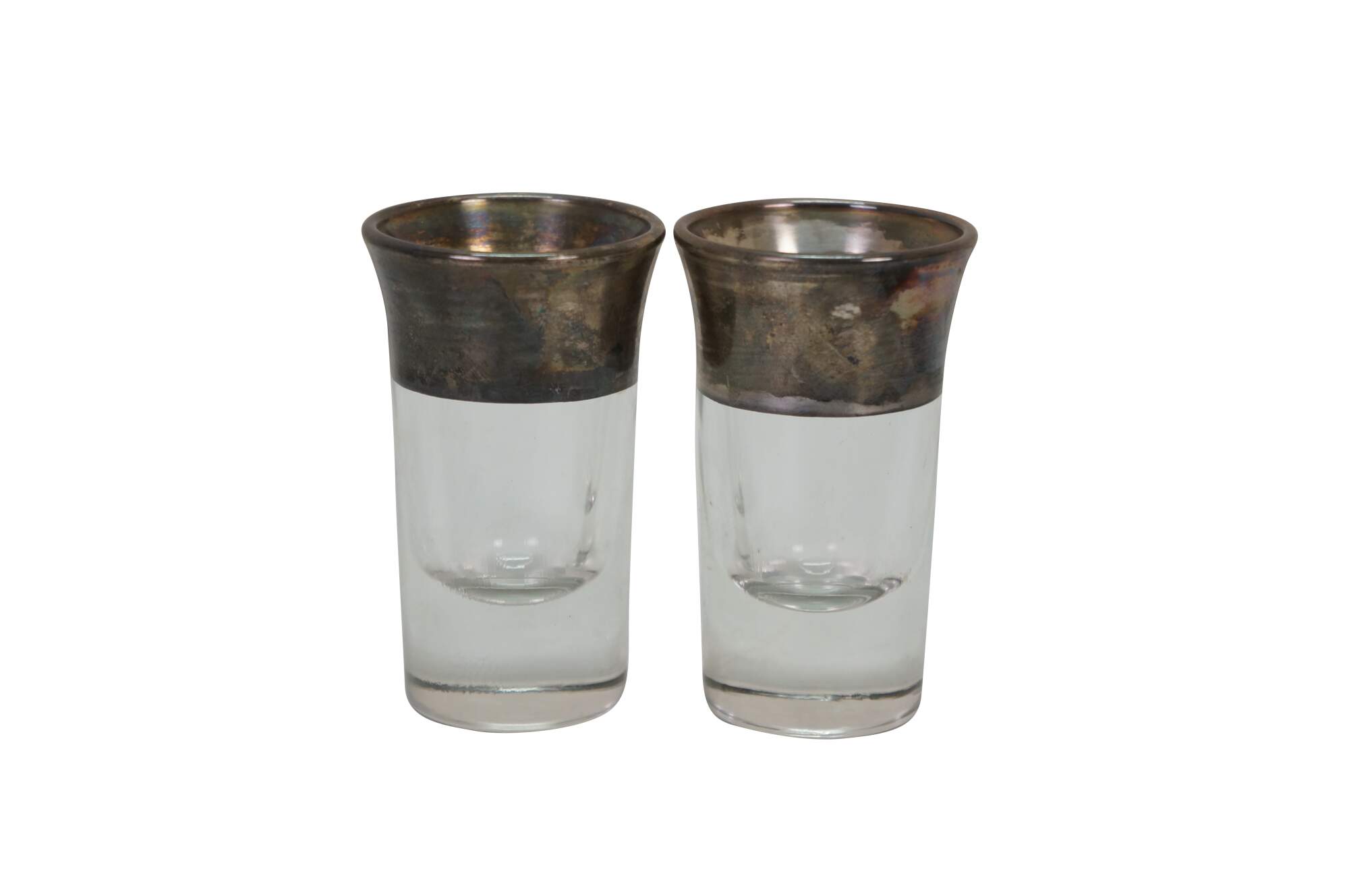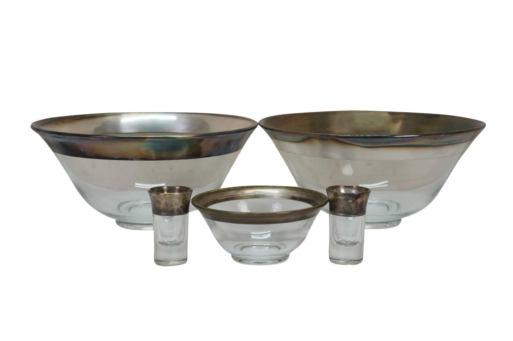 5pc Mid Century Dorothy Thorpe Silver Banded Chip Dip Bowls Shot Glasses