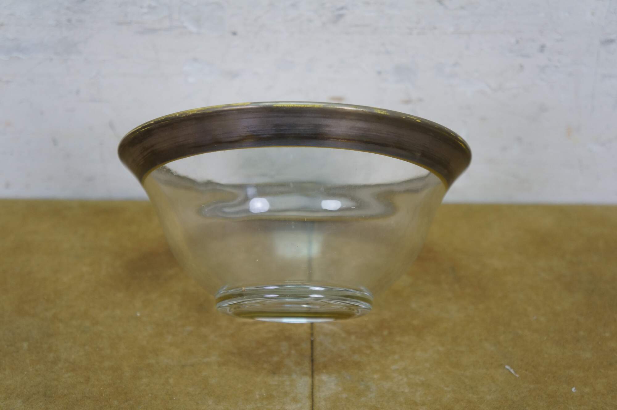 Mid century Dorothy Thorpe silver rim / banded chip and dip set with two large bowls, one small bowl and two shot glasses / toothpick holders.