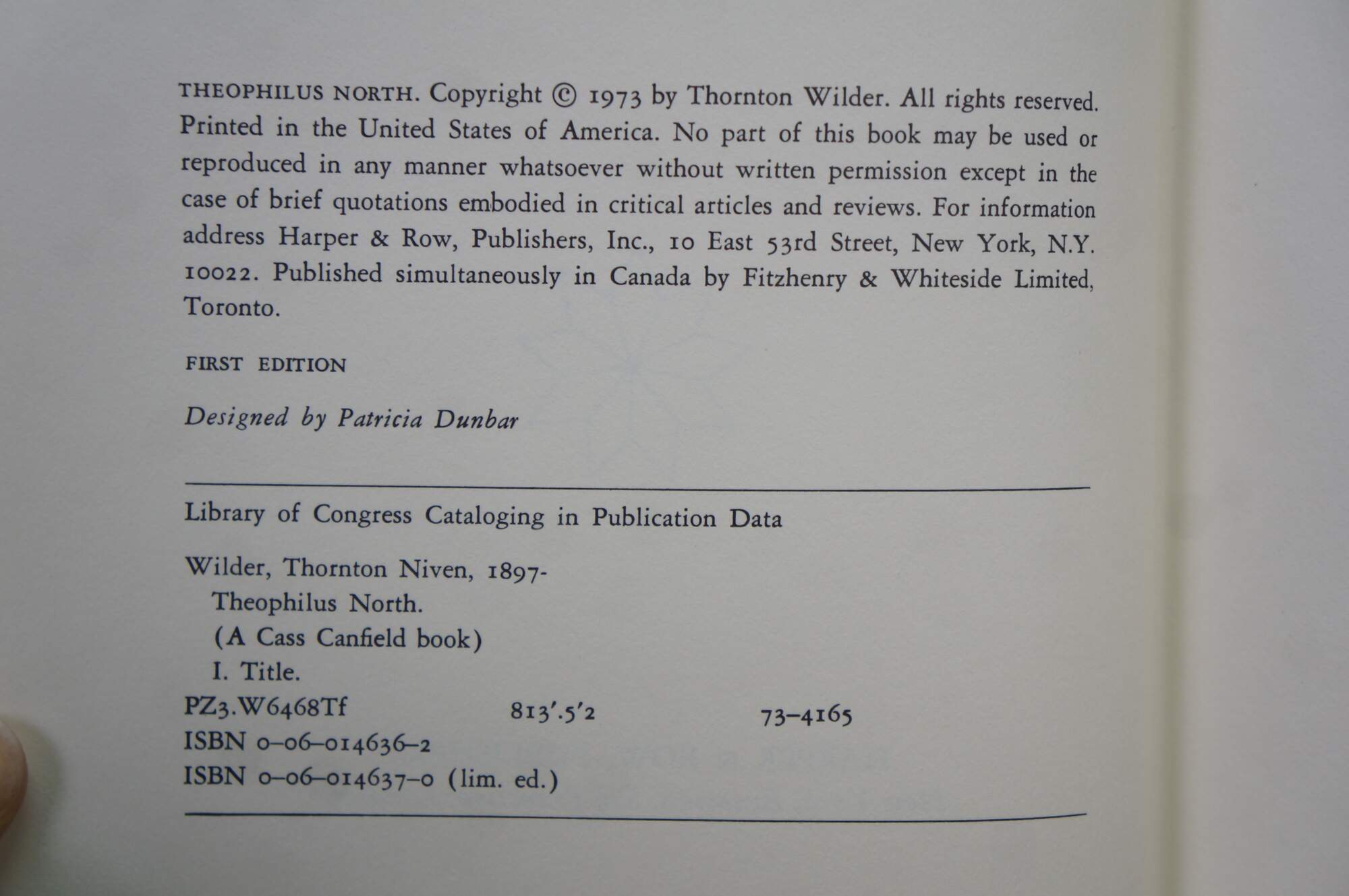 Theophilus North by Thornton Wilder 1st Edition 1973 Harper & Row Novel Book 9"