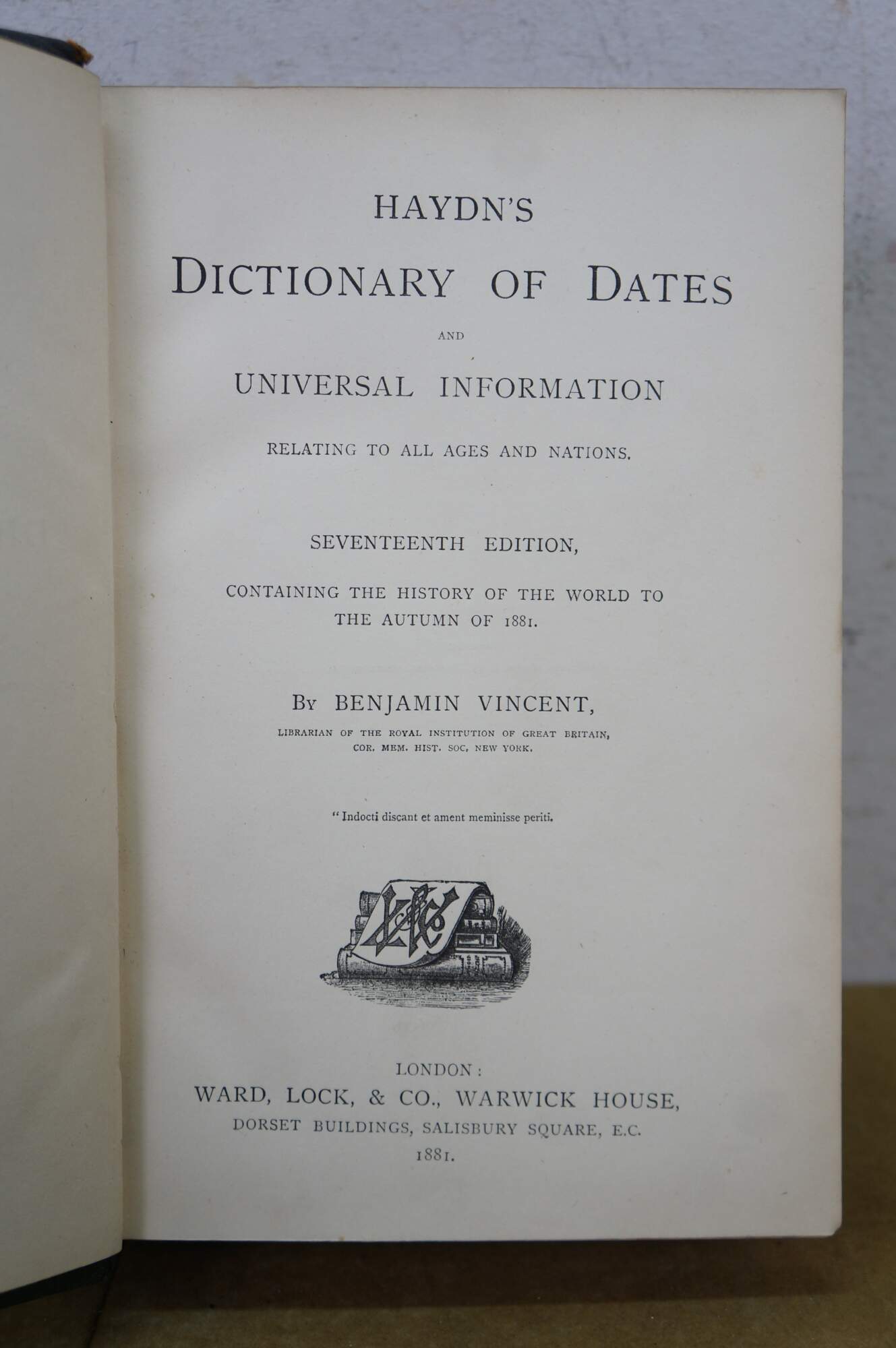 Hayden's Dictionary of Dates and Universal Information relating to all ages and nations. Seventeenth Edition. Containing the History of the World to the Autumn of 1881. By Benjamin Vincent. Ward, Lock, & Company, London 1881