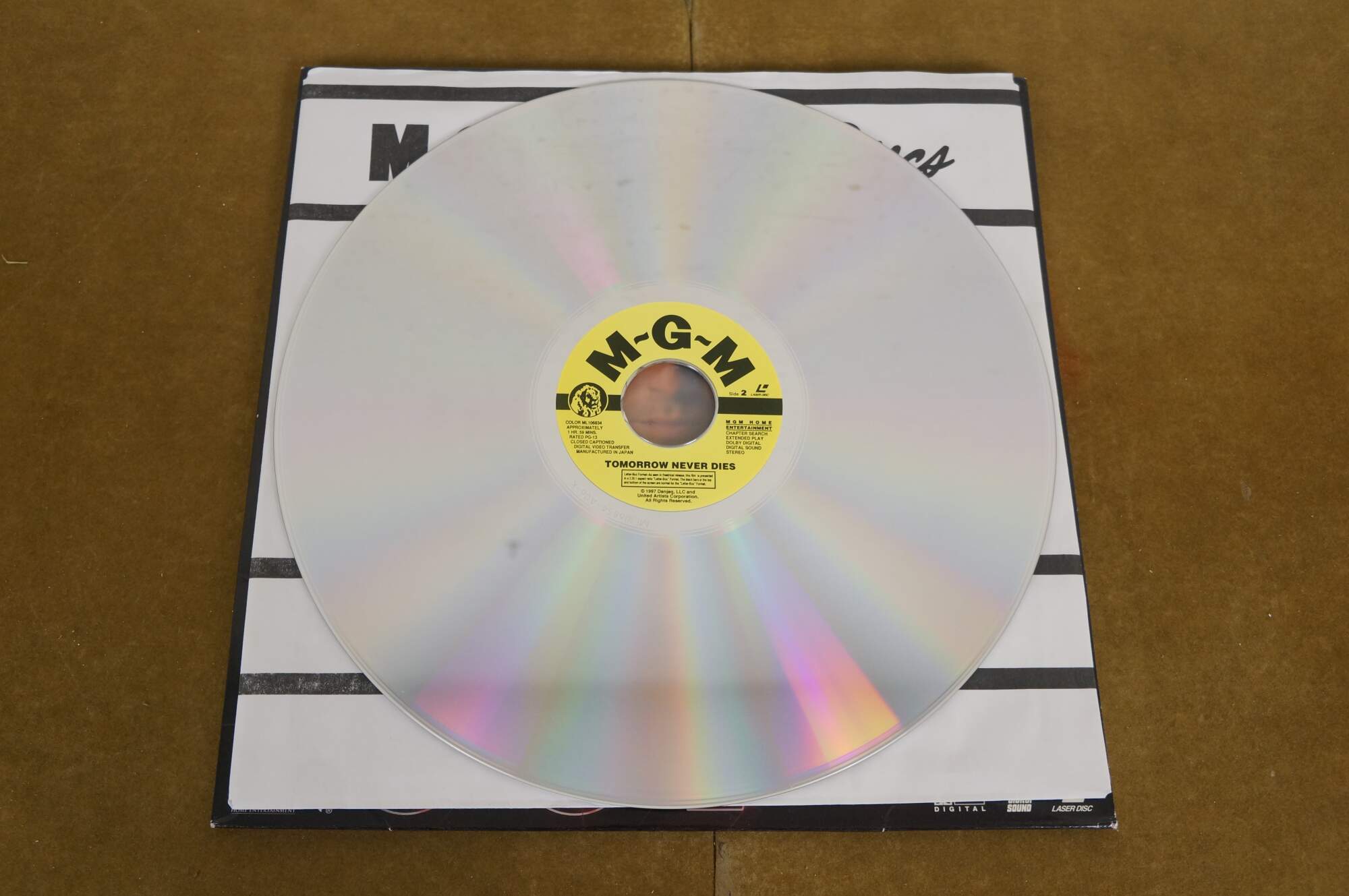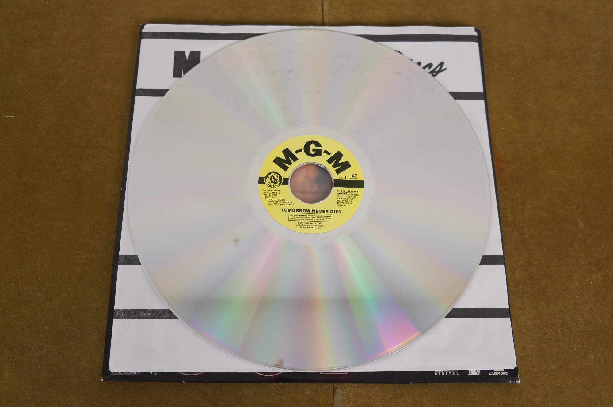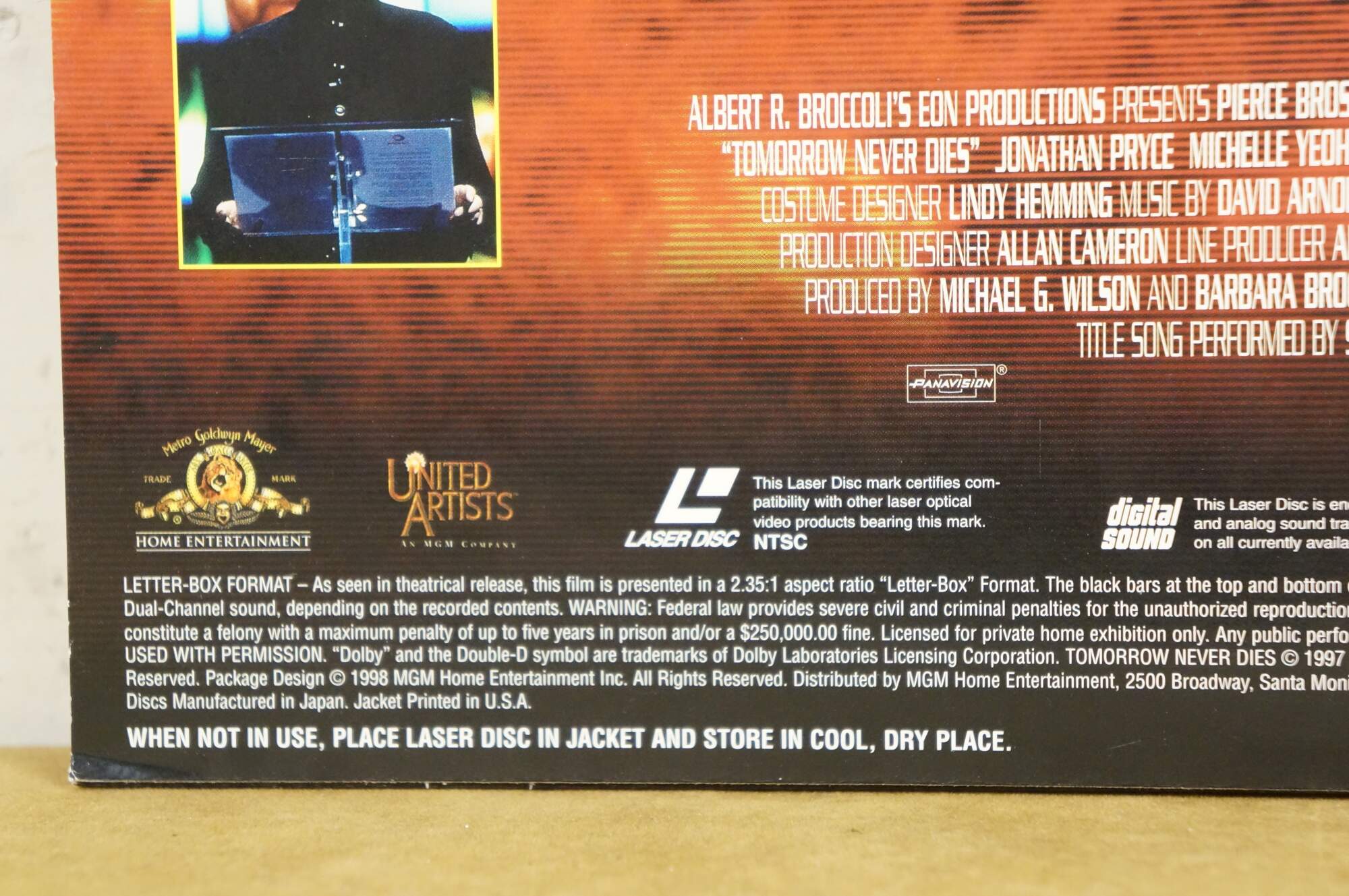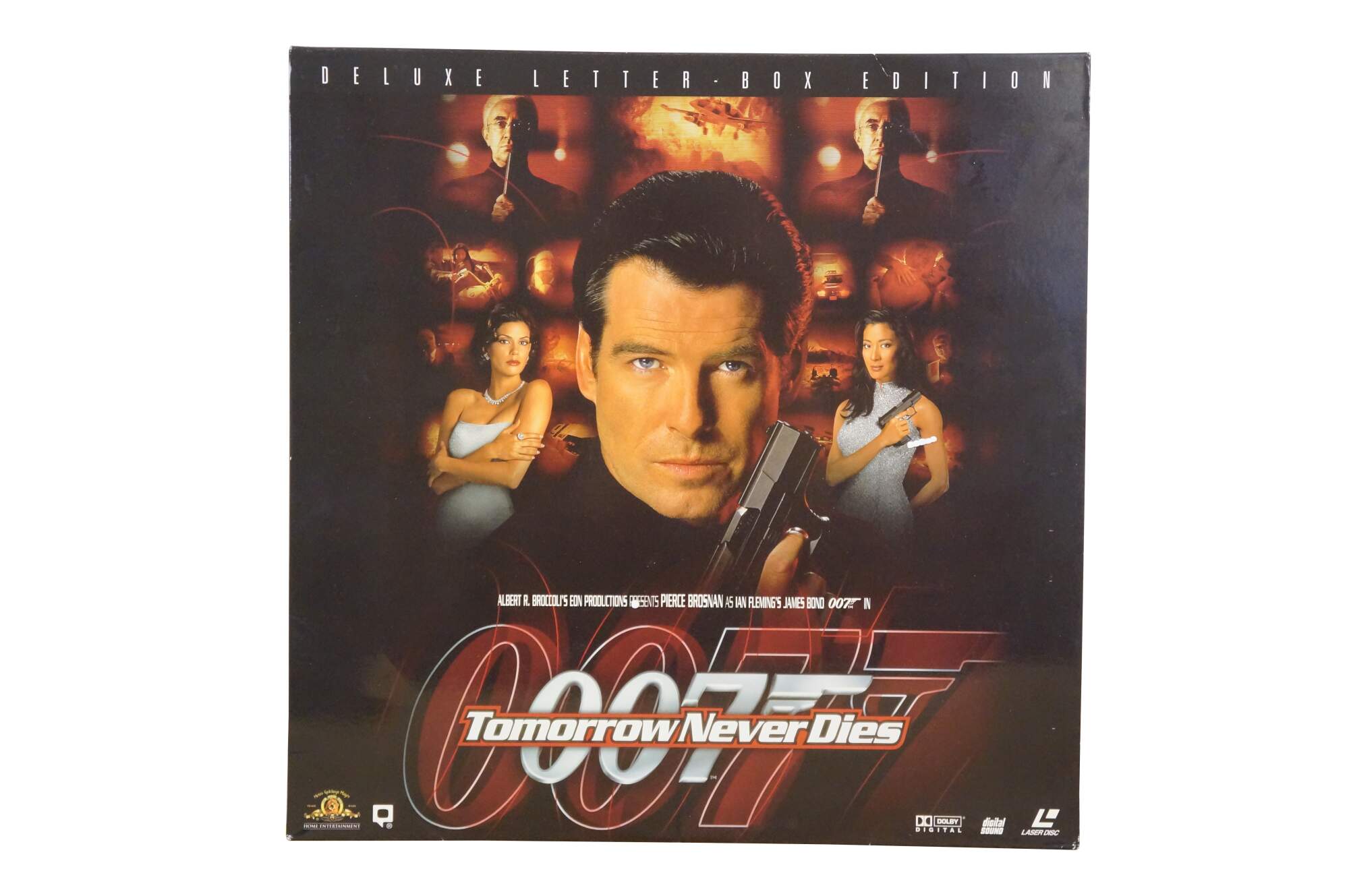 Vintage 1997 Deluxe Letterbox Edition LaserDisc for the James Bond 007 film Tomorrow Never Dies, starring Pierce Brosnan. MGM.