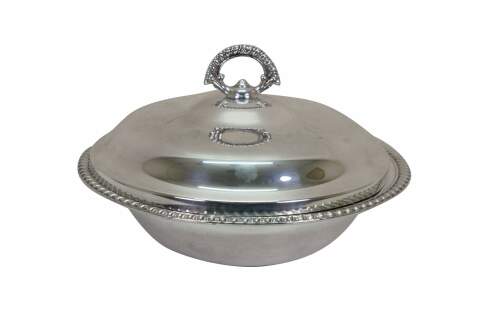 Vintage WM Rogers Silverplate Lidded Casserole Serving Banquet Dish w Pyrex 11"