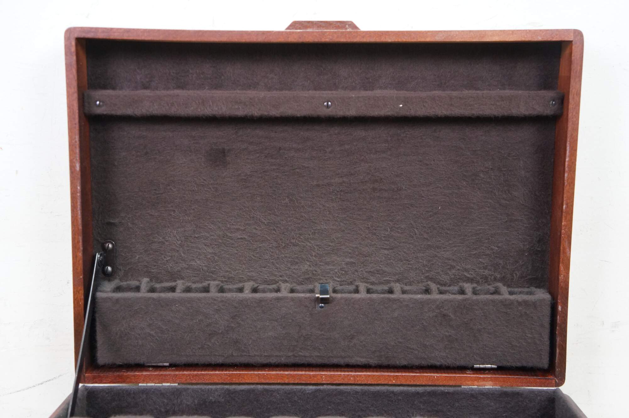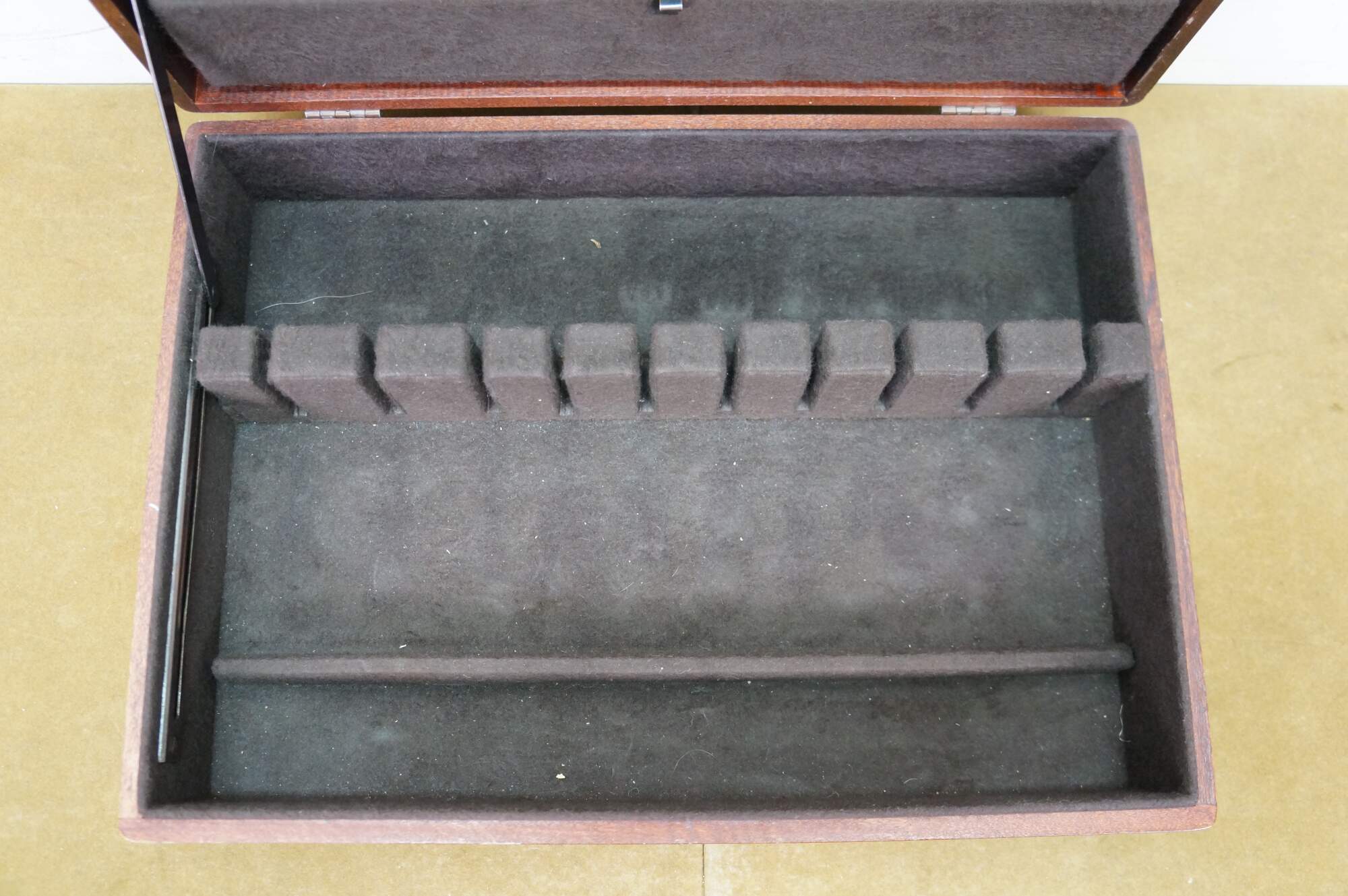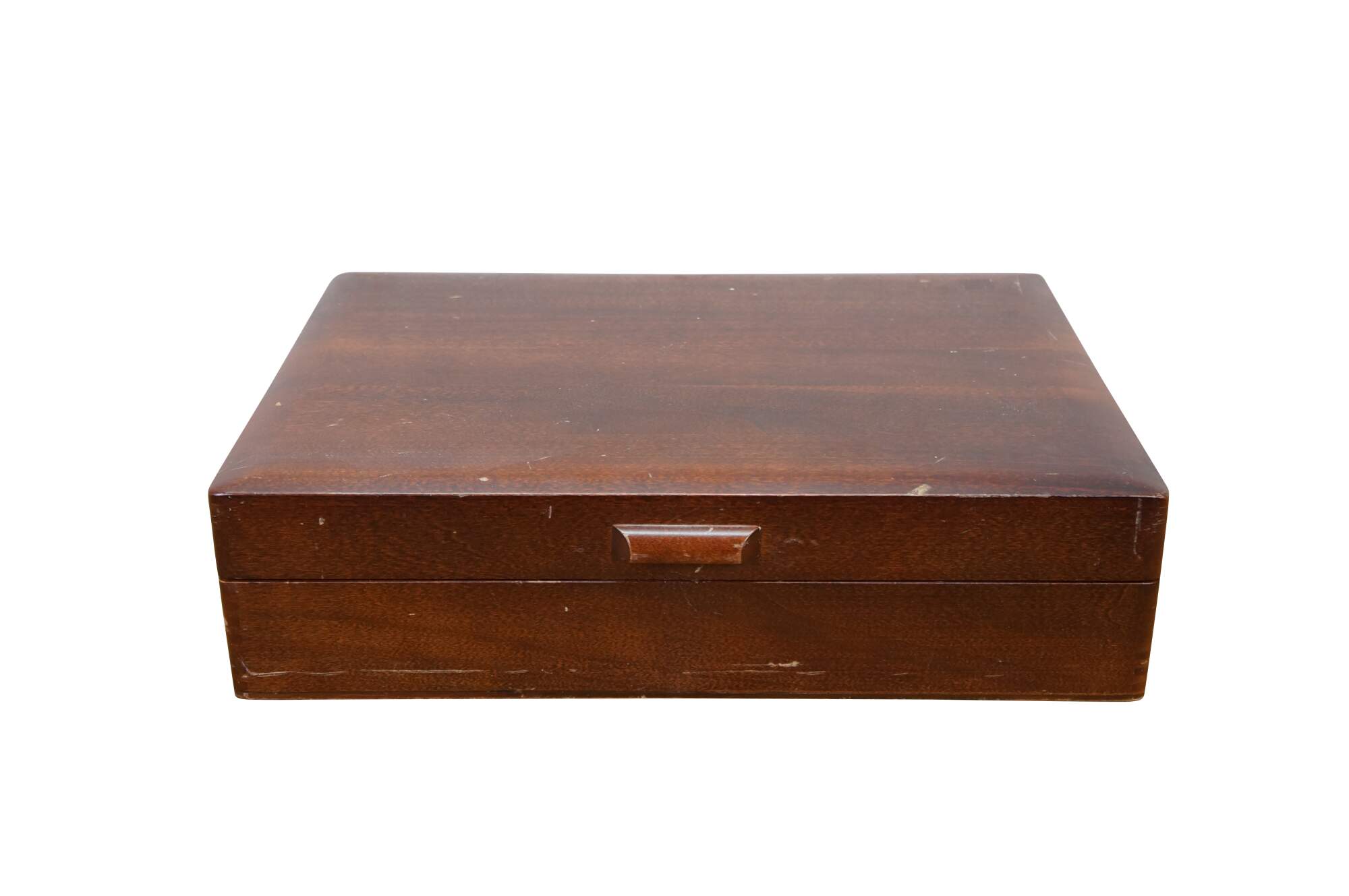 Vintage mahogany felt lined silverware flatware chest / box featuring dovetailed corners, a drop front knife compartment, and ten storage slots.